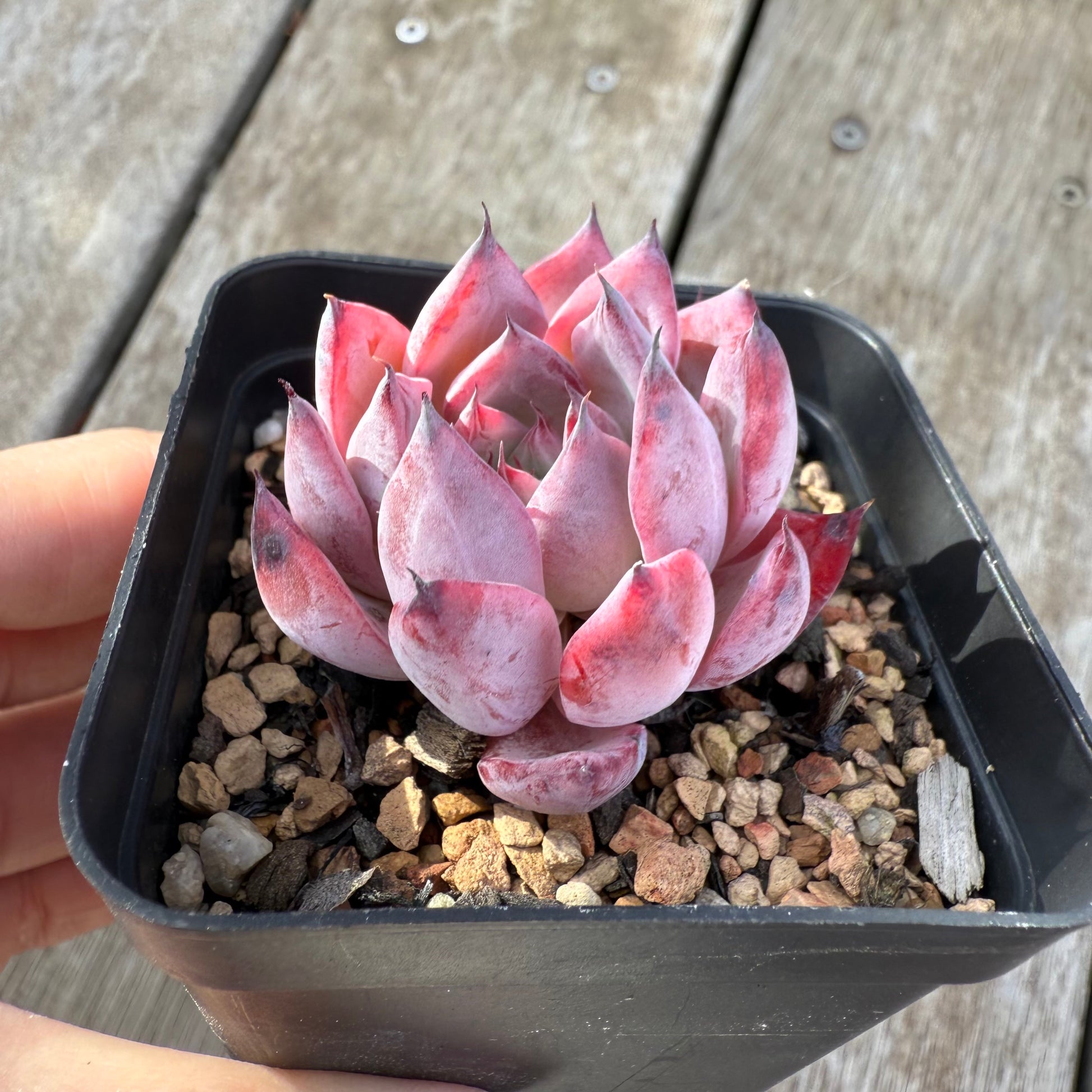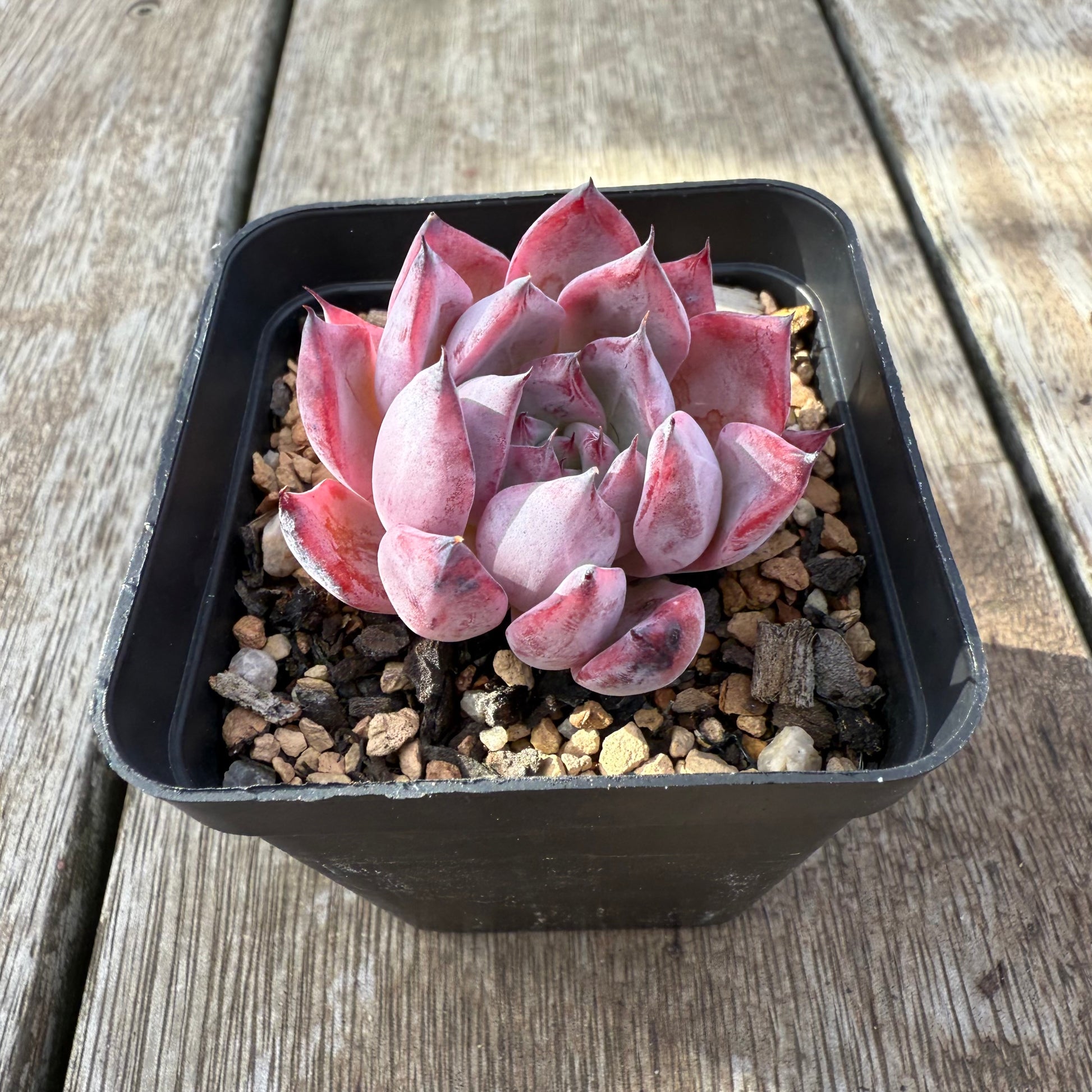 Echeveria Black Swan is a korean hybrid. It forms a dark margin and stress to dark red when grown hard. Prefers full sun.