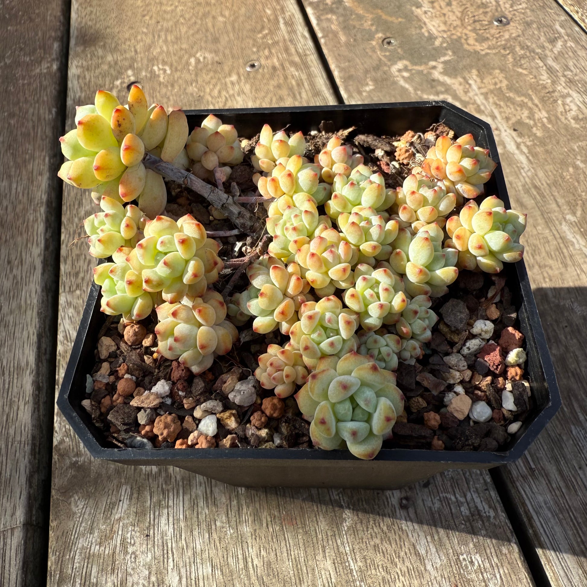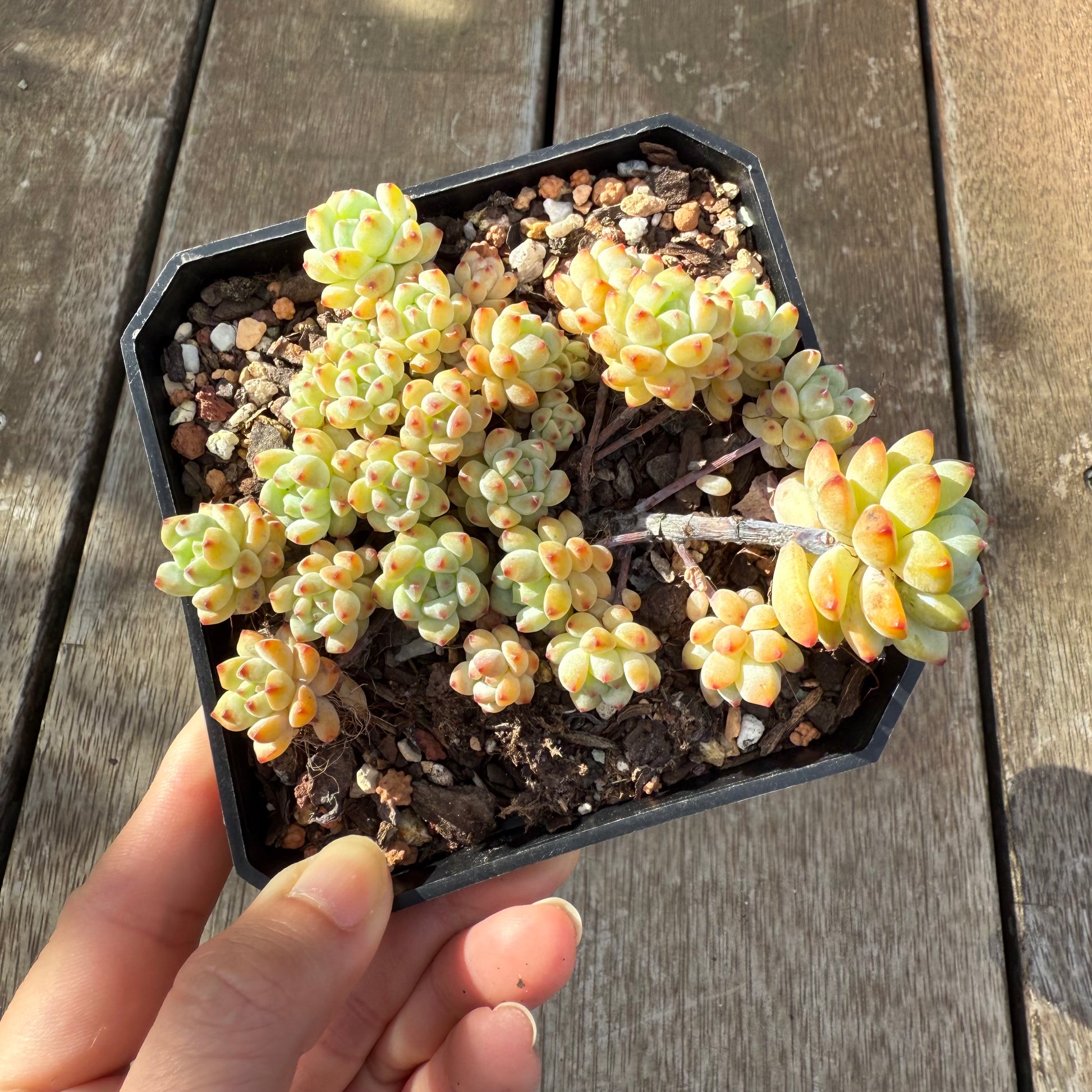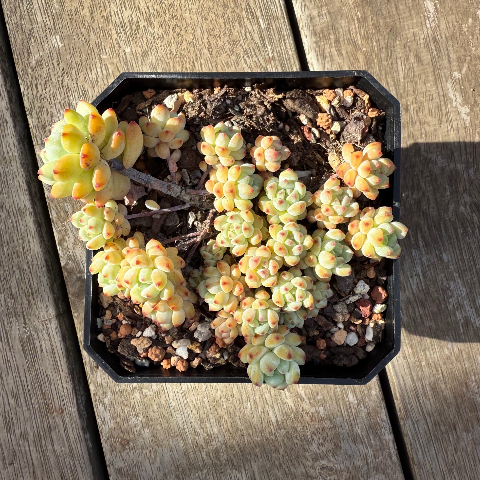 Also known as 'Caramel Elf'. Dainty rosettes that stress to dark orange/caramel colour. It pups and forms a clump easily. Prefers full sun.