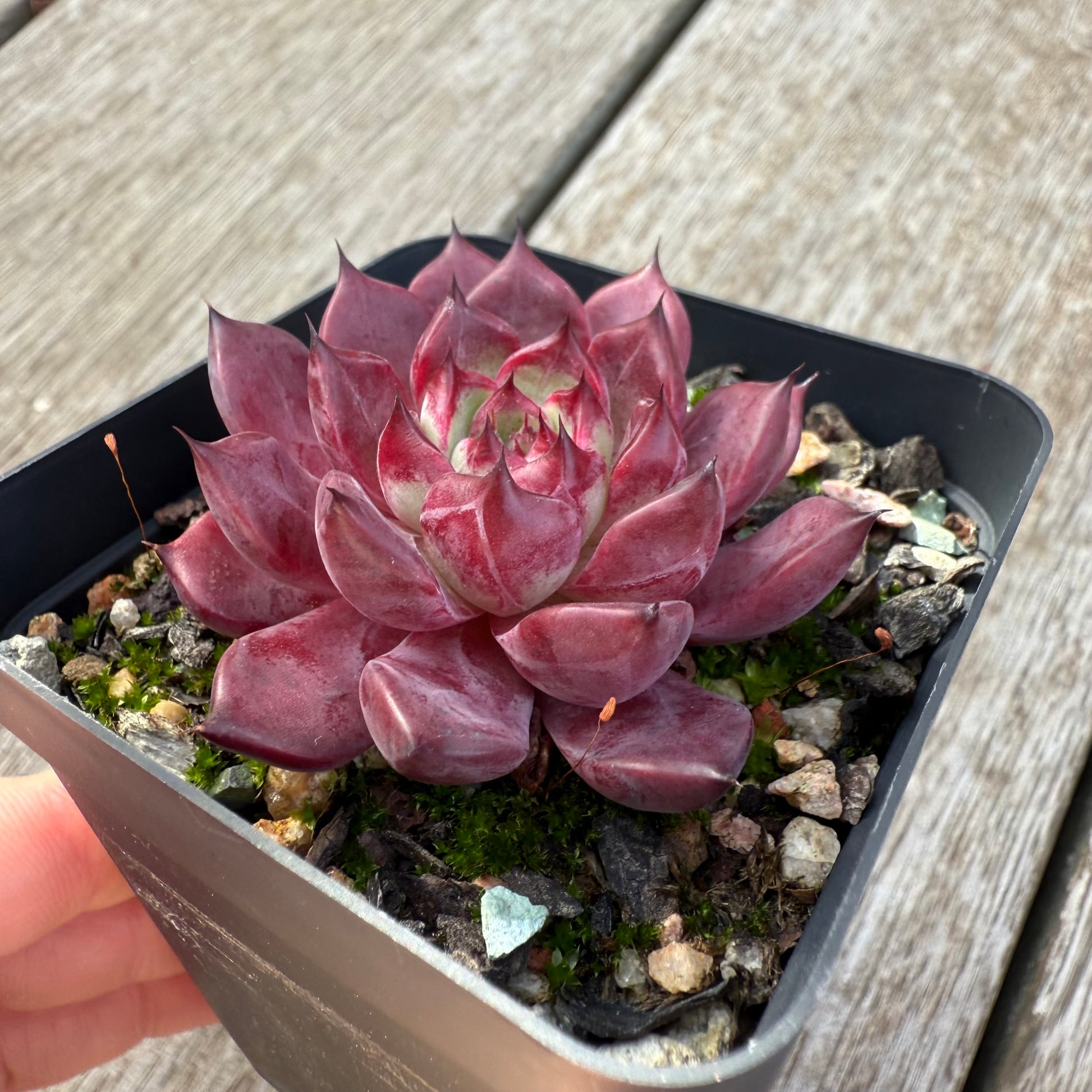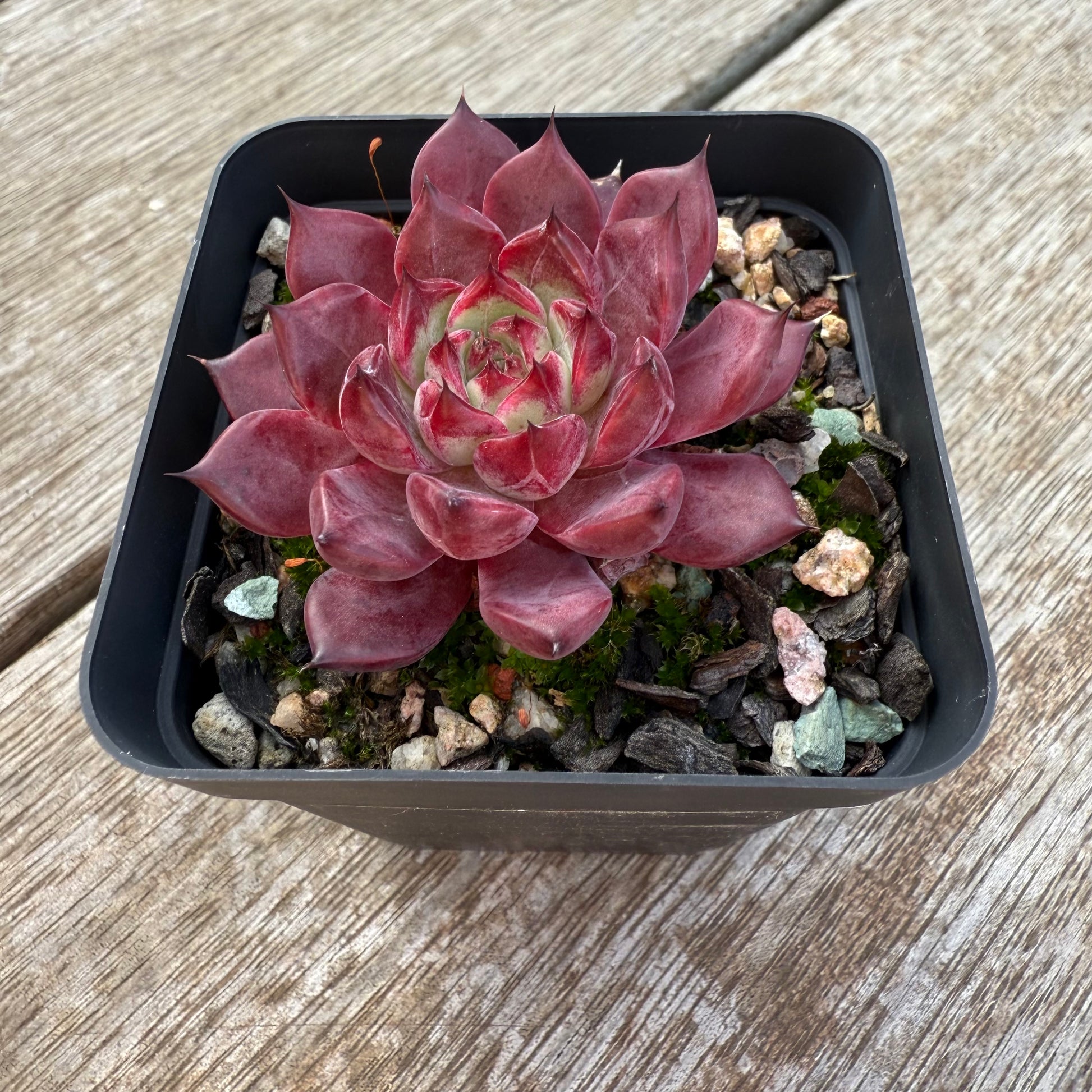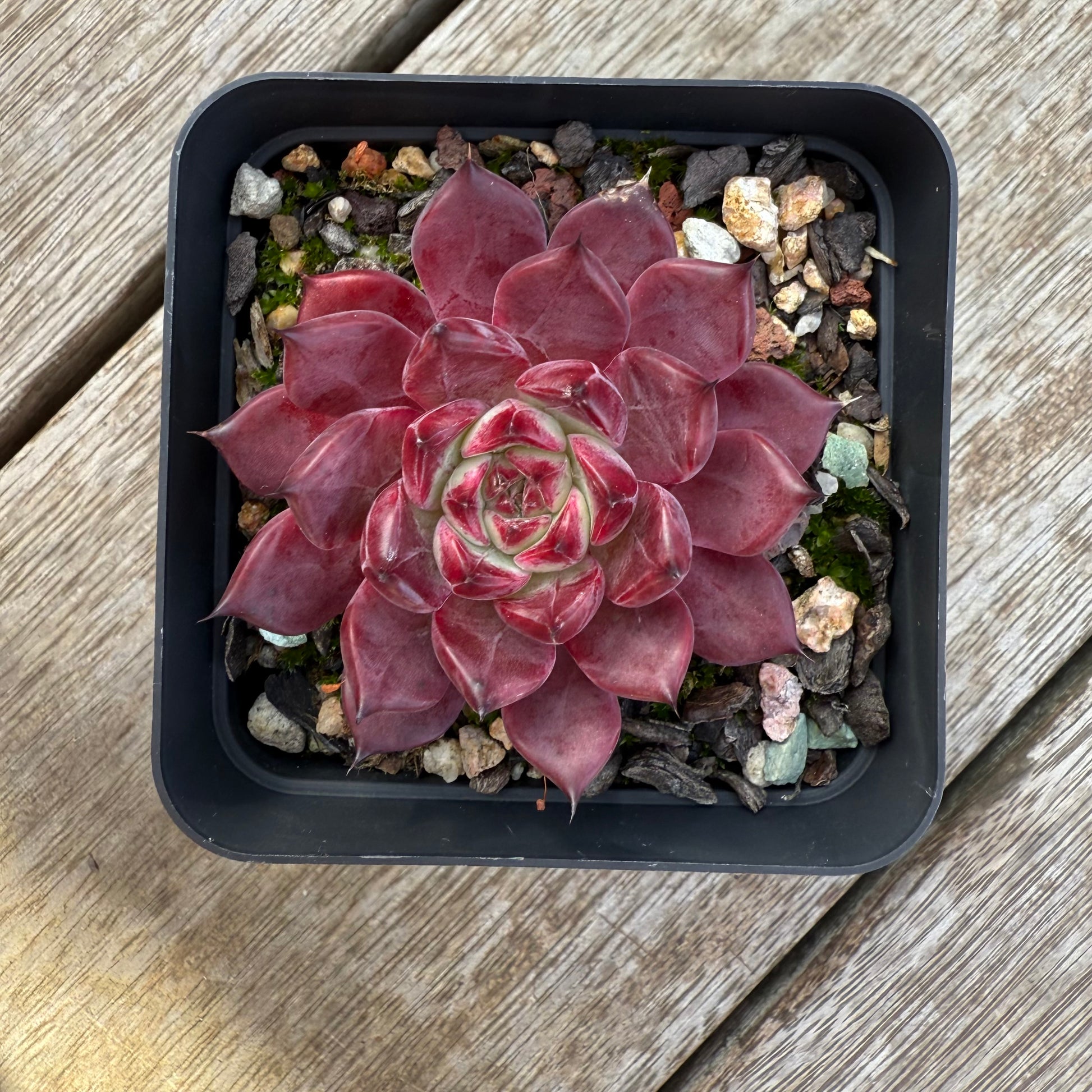 Echeveria Queen Margot is red through all seasons, with its tips stress to a darker colour. Prefers full sun.