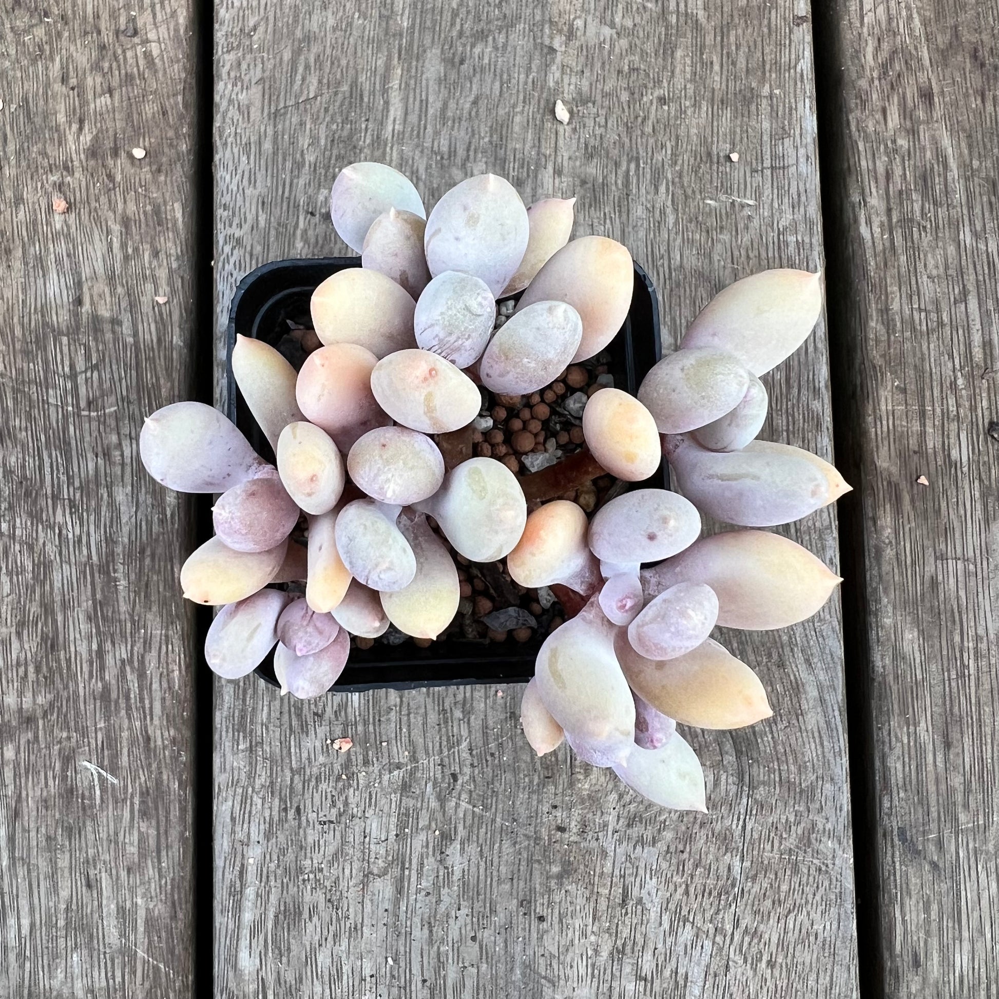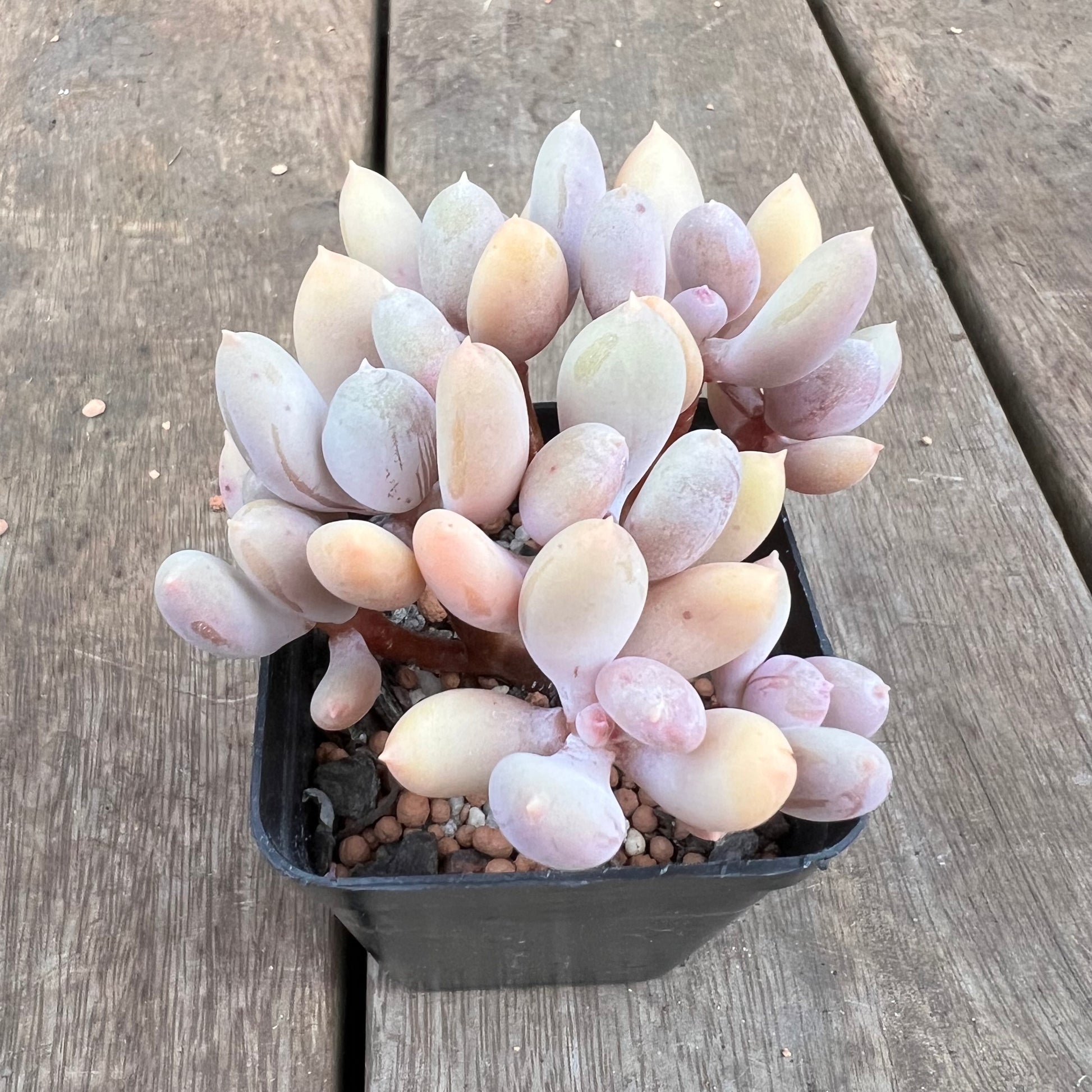 This is also called Pachyphytum Nipple, as it has a pink tip. Prefers full sun.