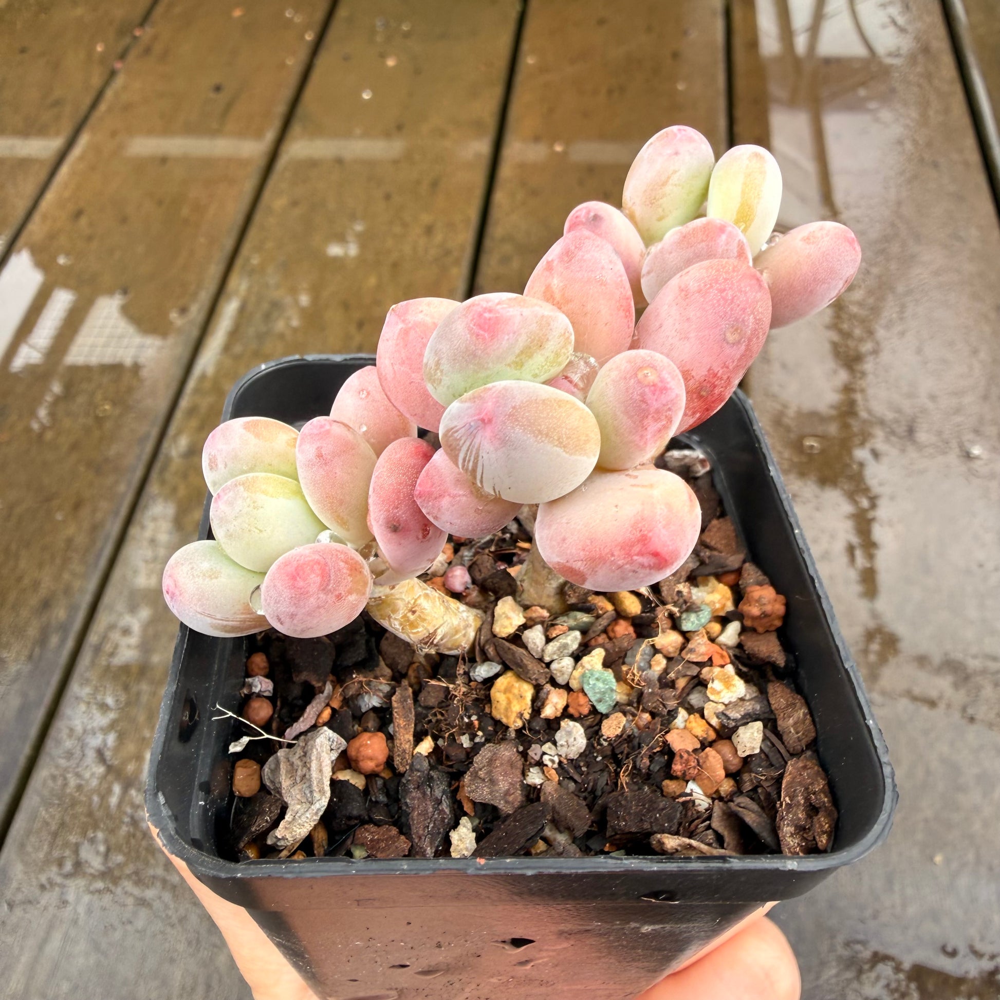 Pachyphytum Garciae has pink tips, stress to orange. Prefers full sun.