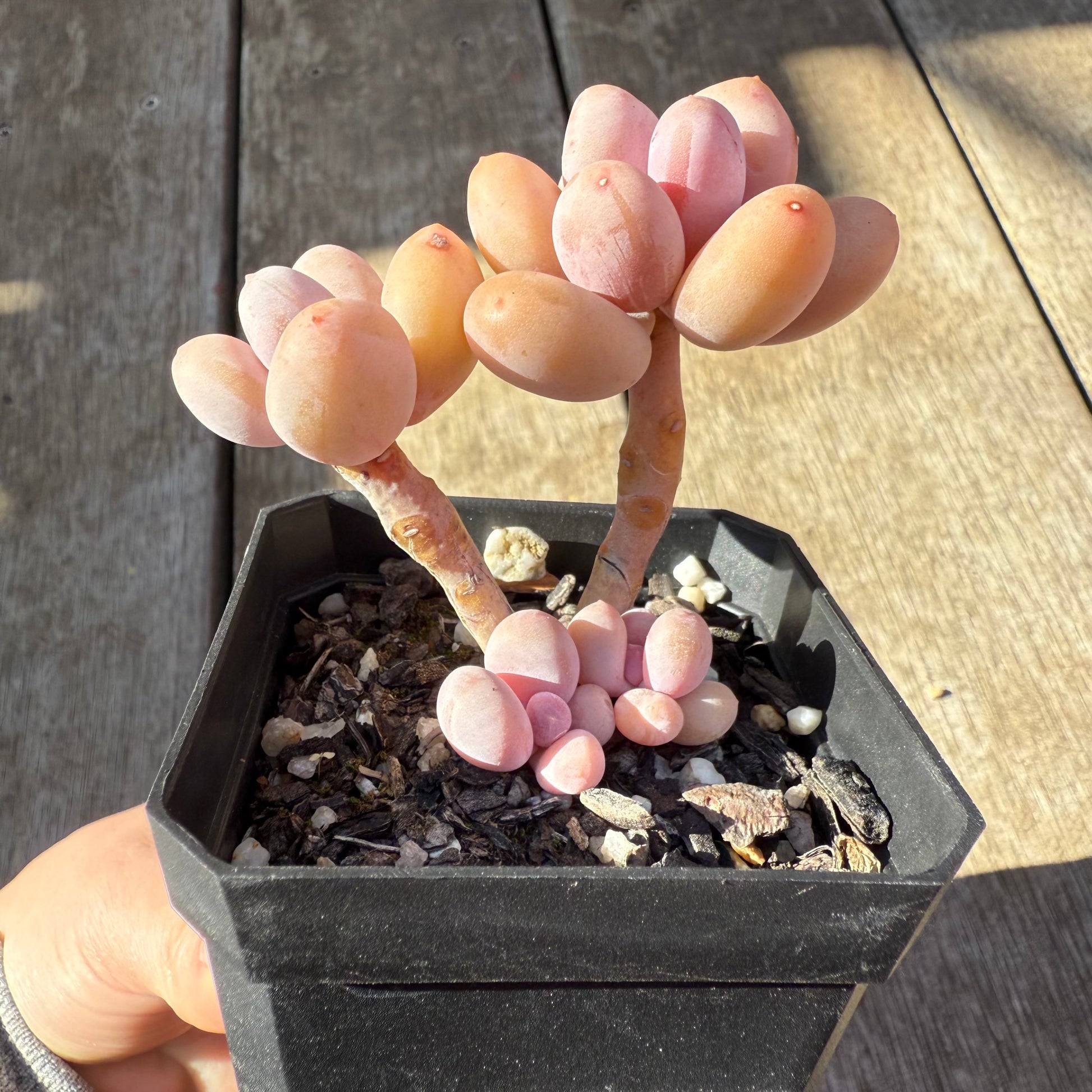 Pachyphytum orange Snowball is an extraordinary hybrid of Graptopetalum Amethystinum (lavender pebbles). Very popular just like their parents. Prefers full/part sun.
