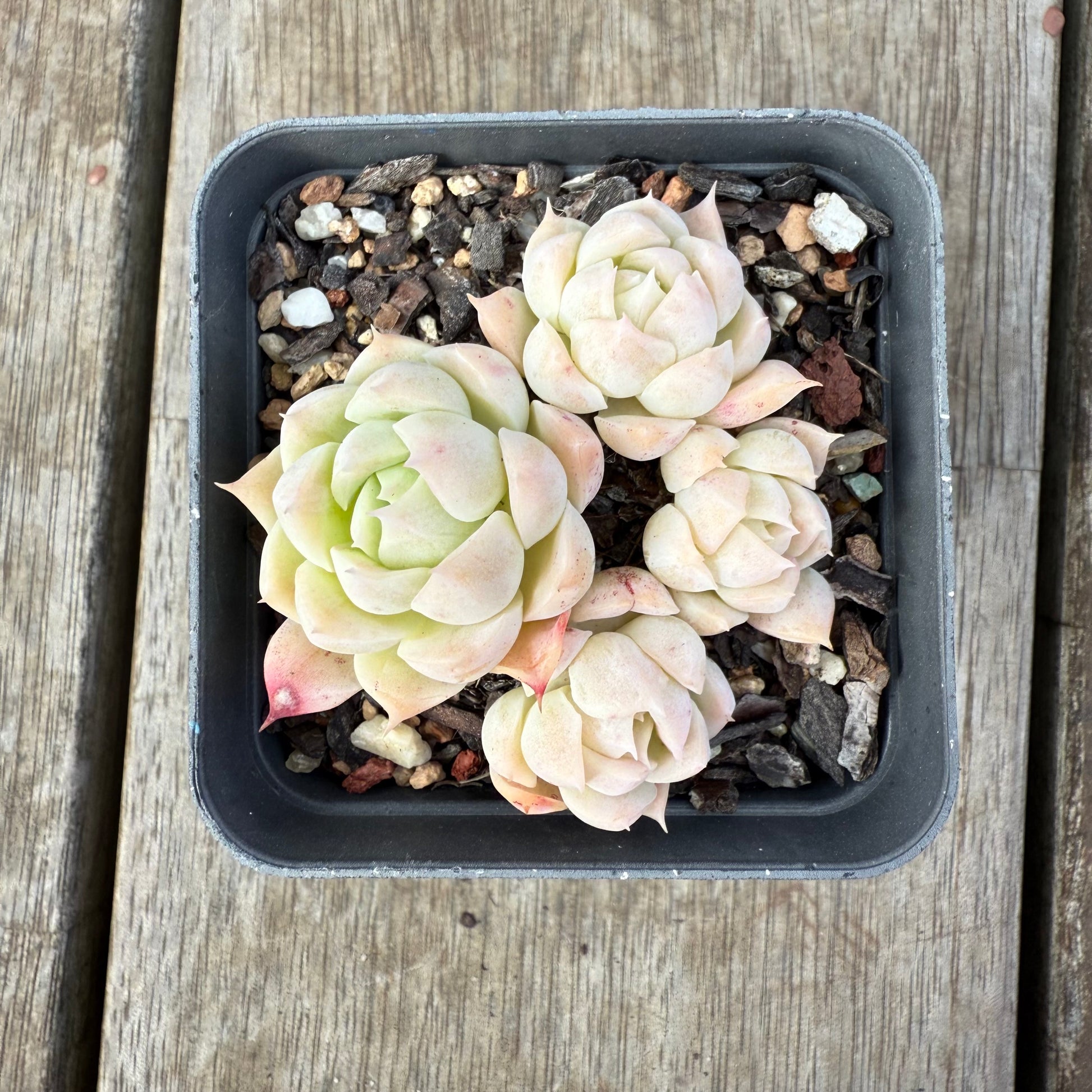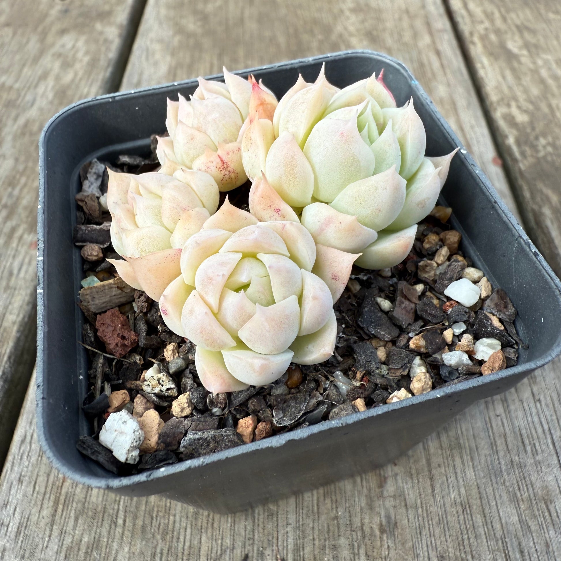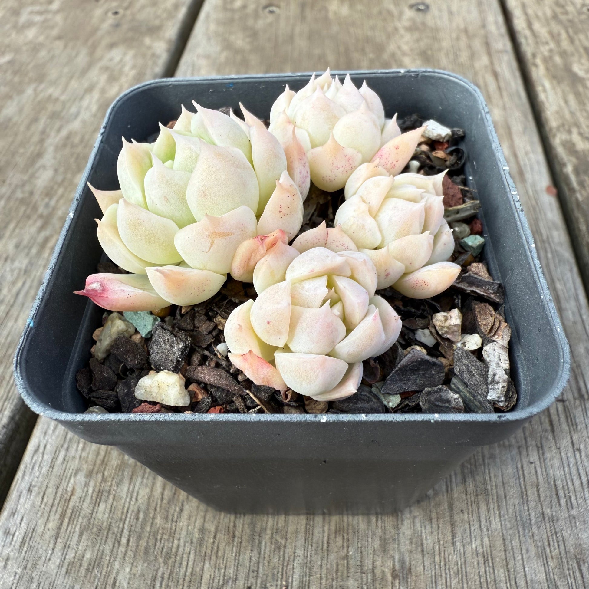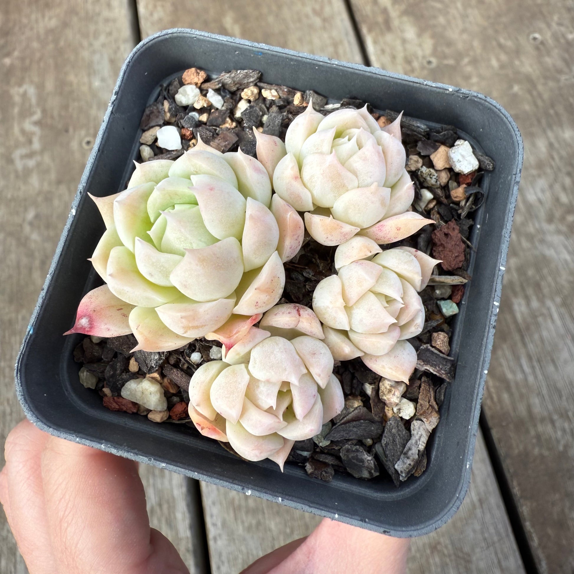A popular korean hybrid that will stress to translucent white with a blush of pink. Prefers full/part sun.