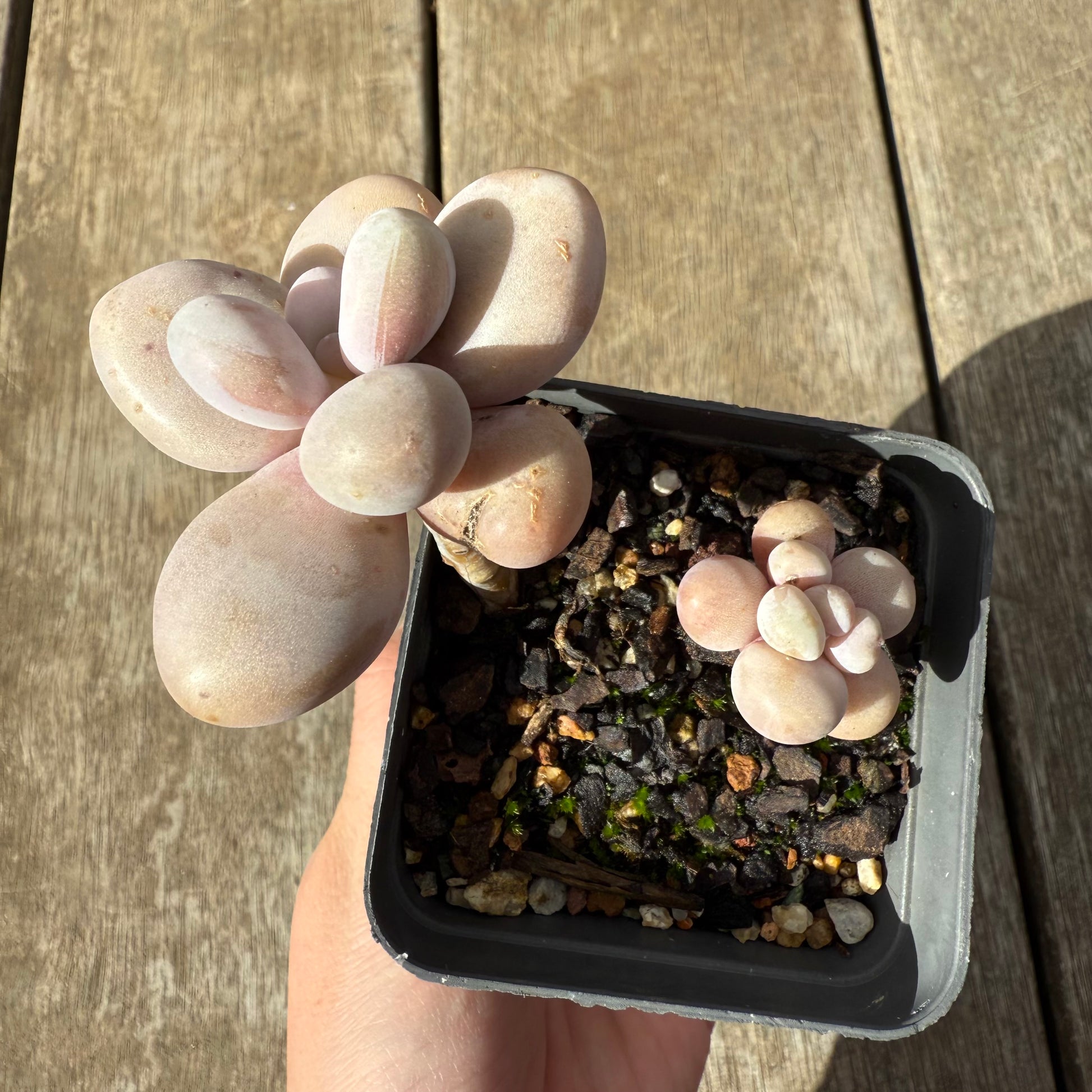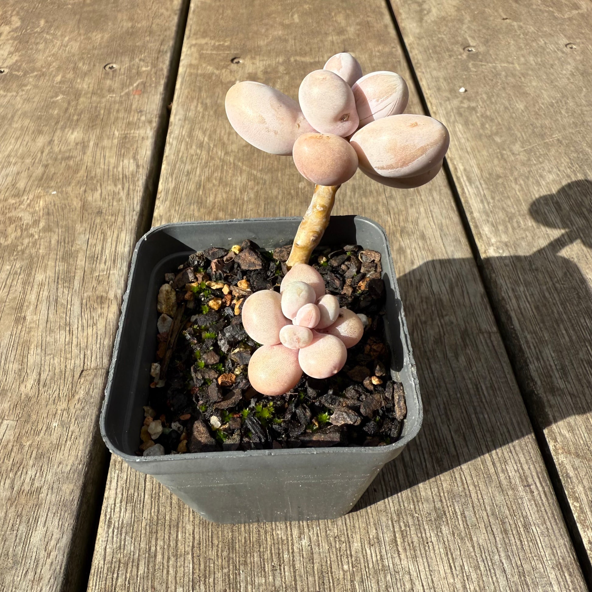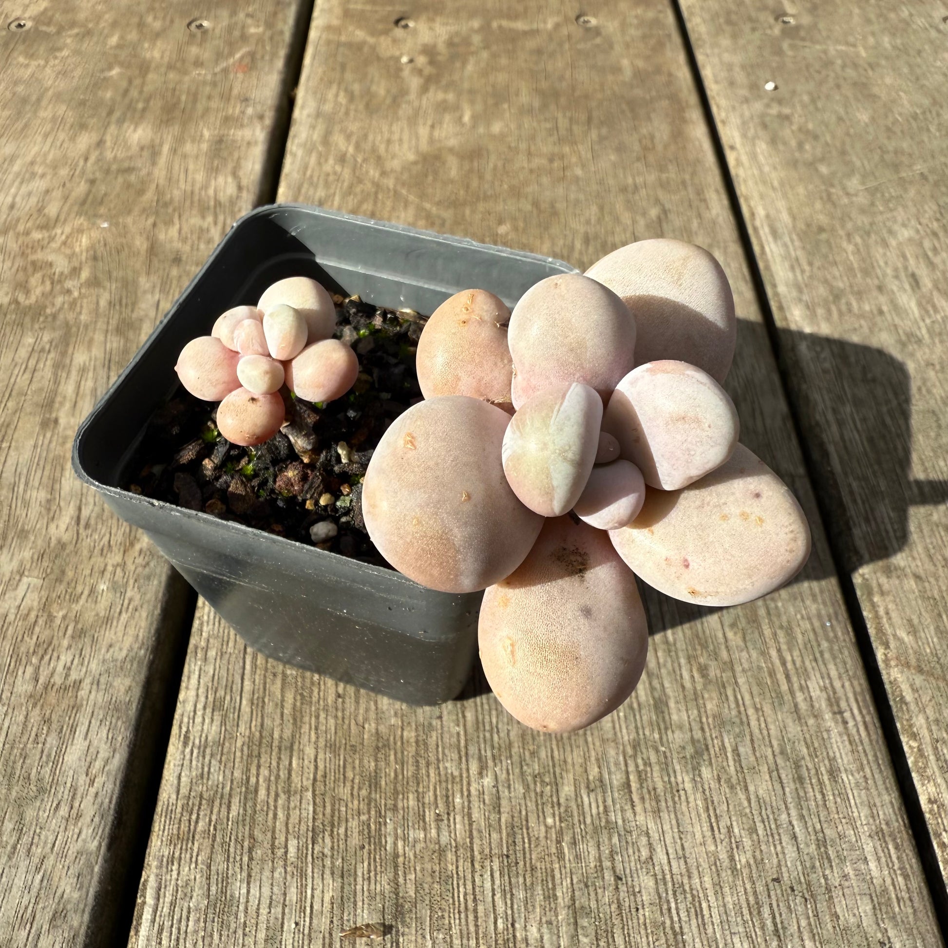 One of the most popular succulent over the past years. It has chubby purple/pink leaves, stress to a brighter pink/orange tone. Prefers full sun.