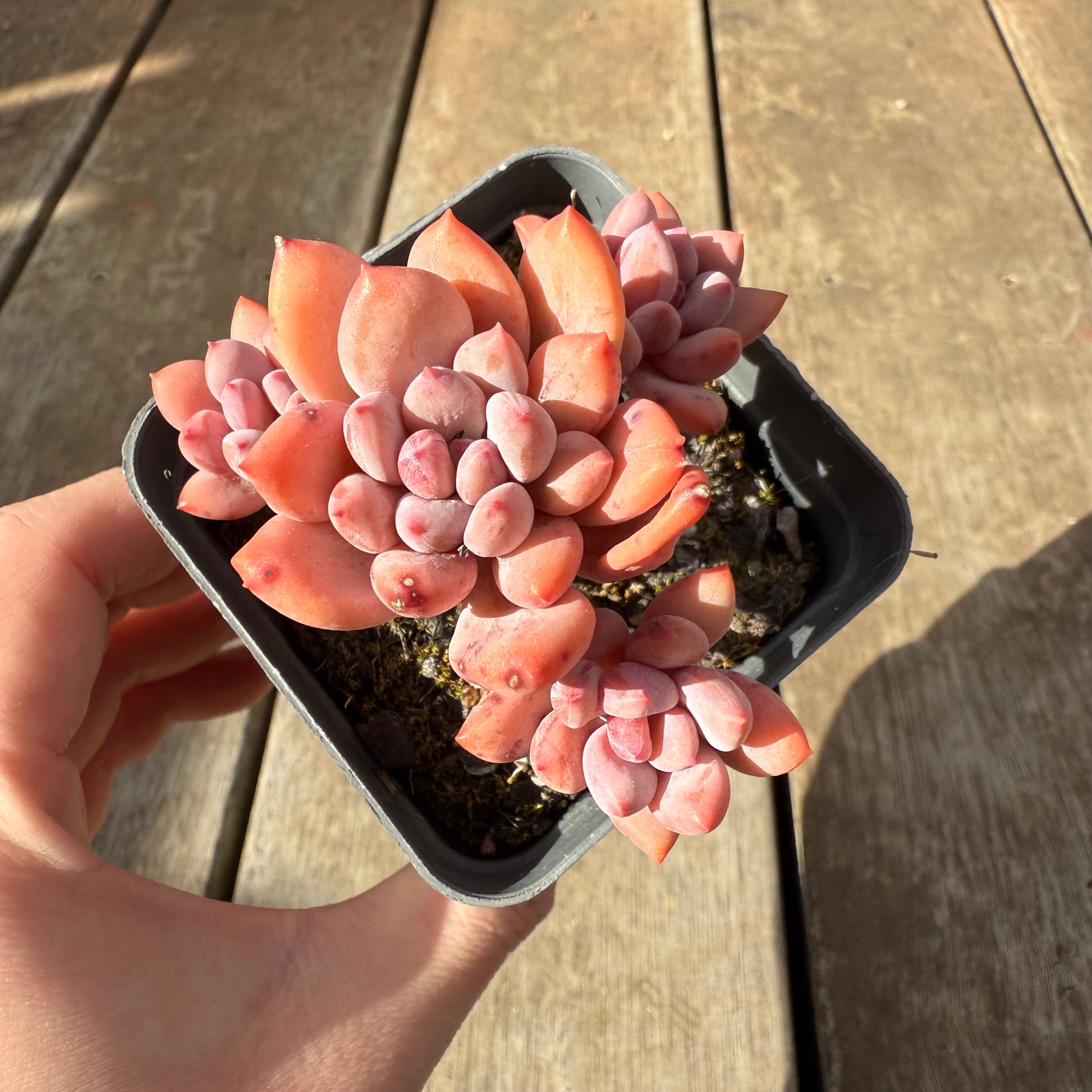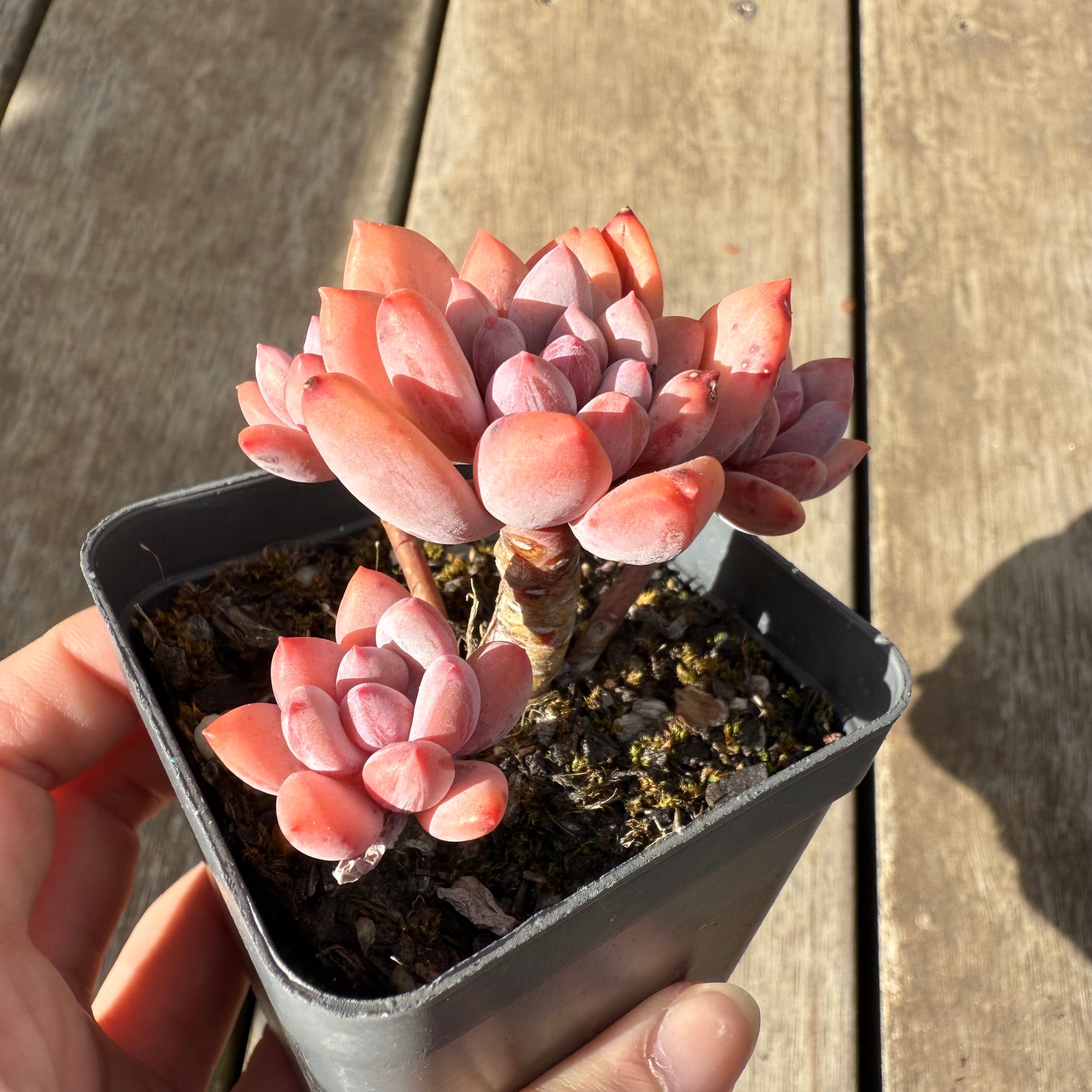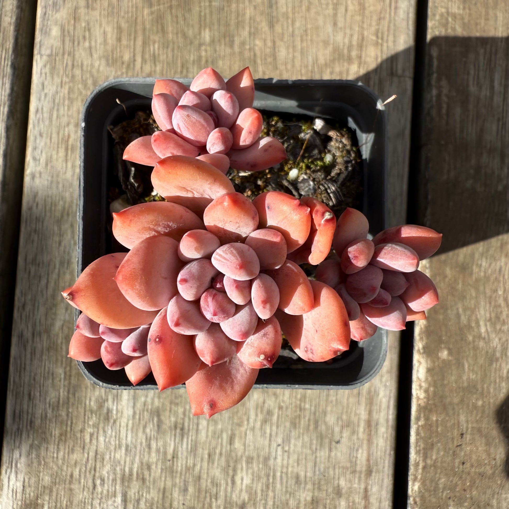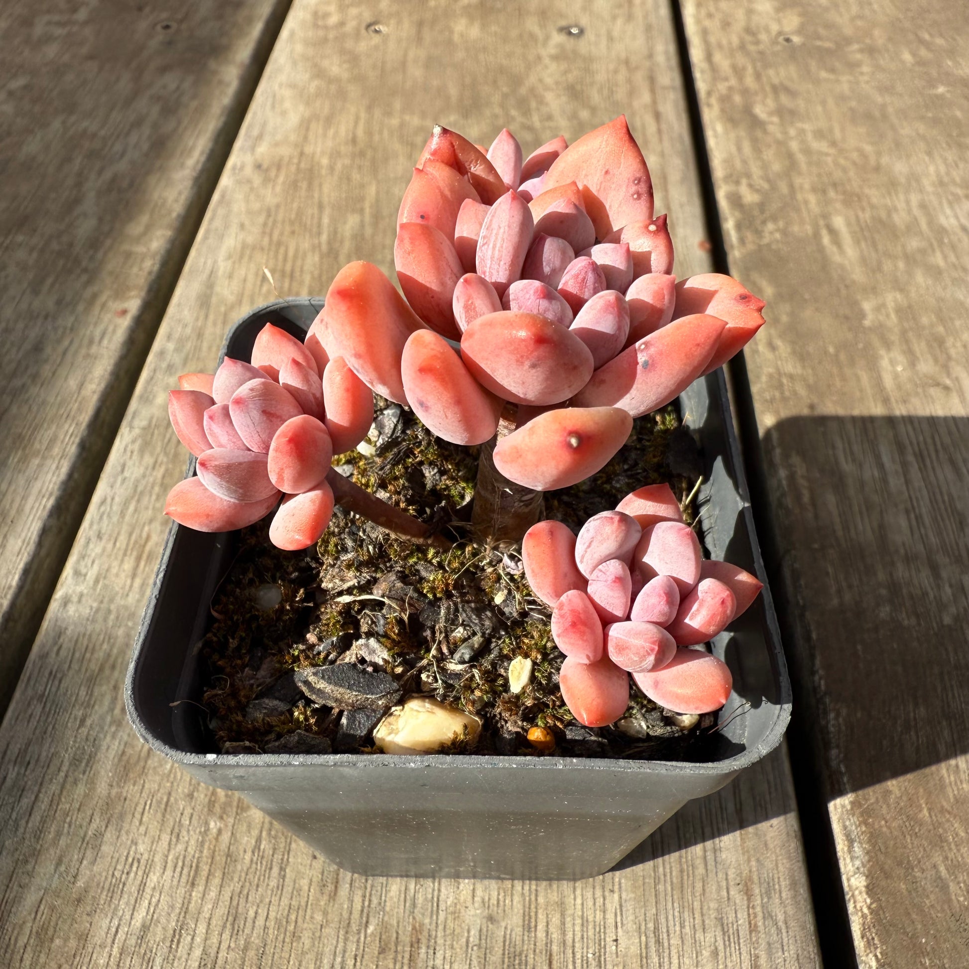 Pachyveria Virgo has pointed blue leaves with red tips when stressed. Prefers full sun.