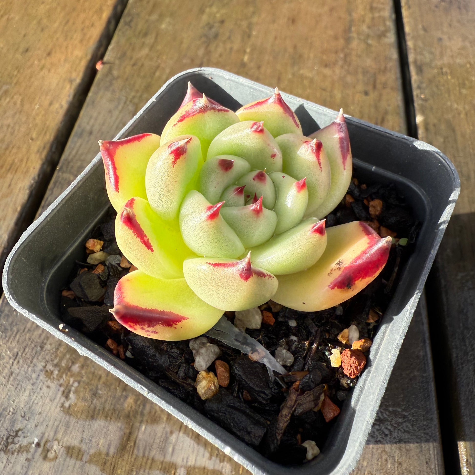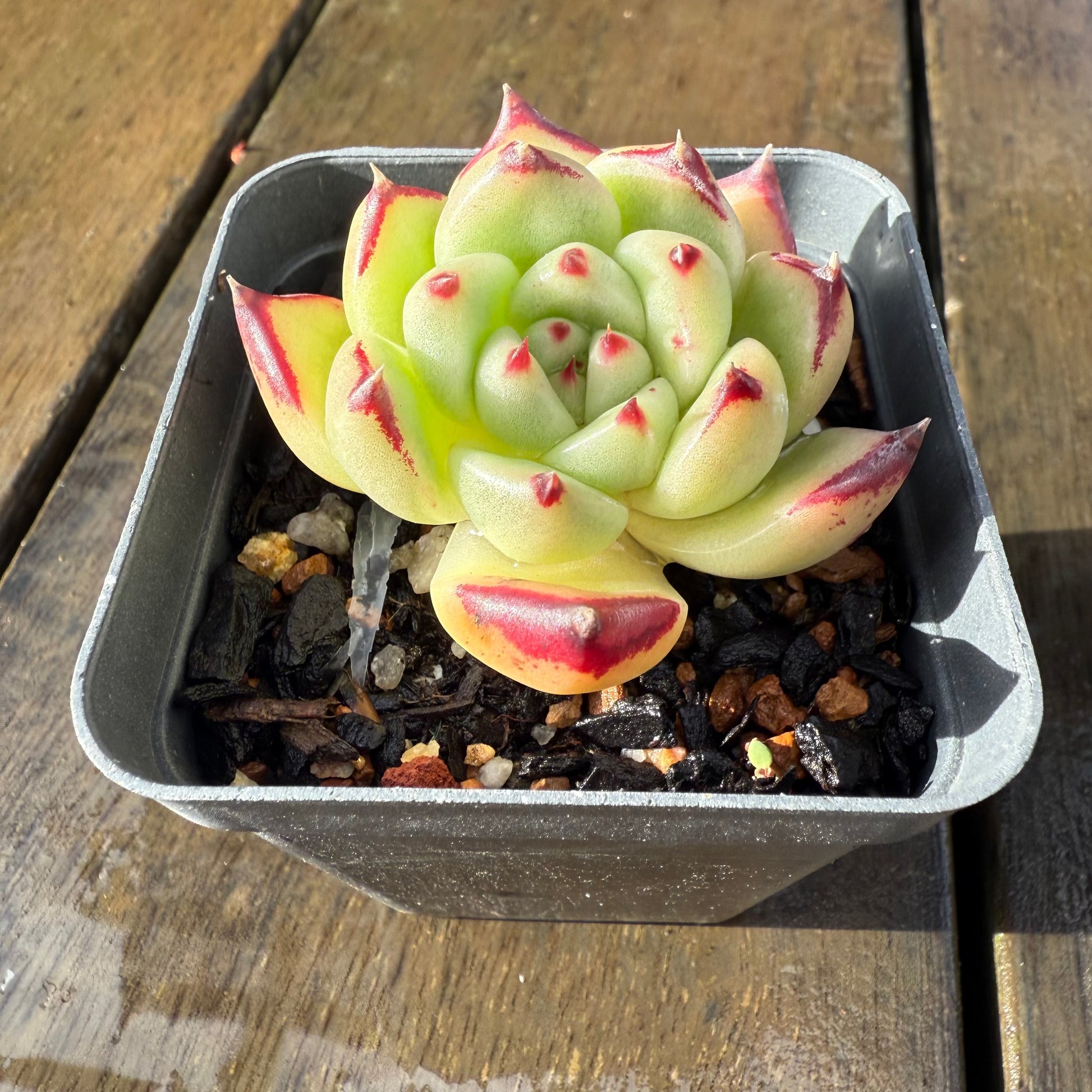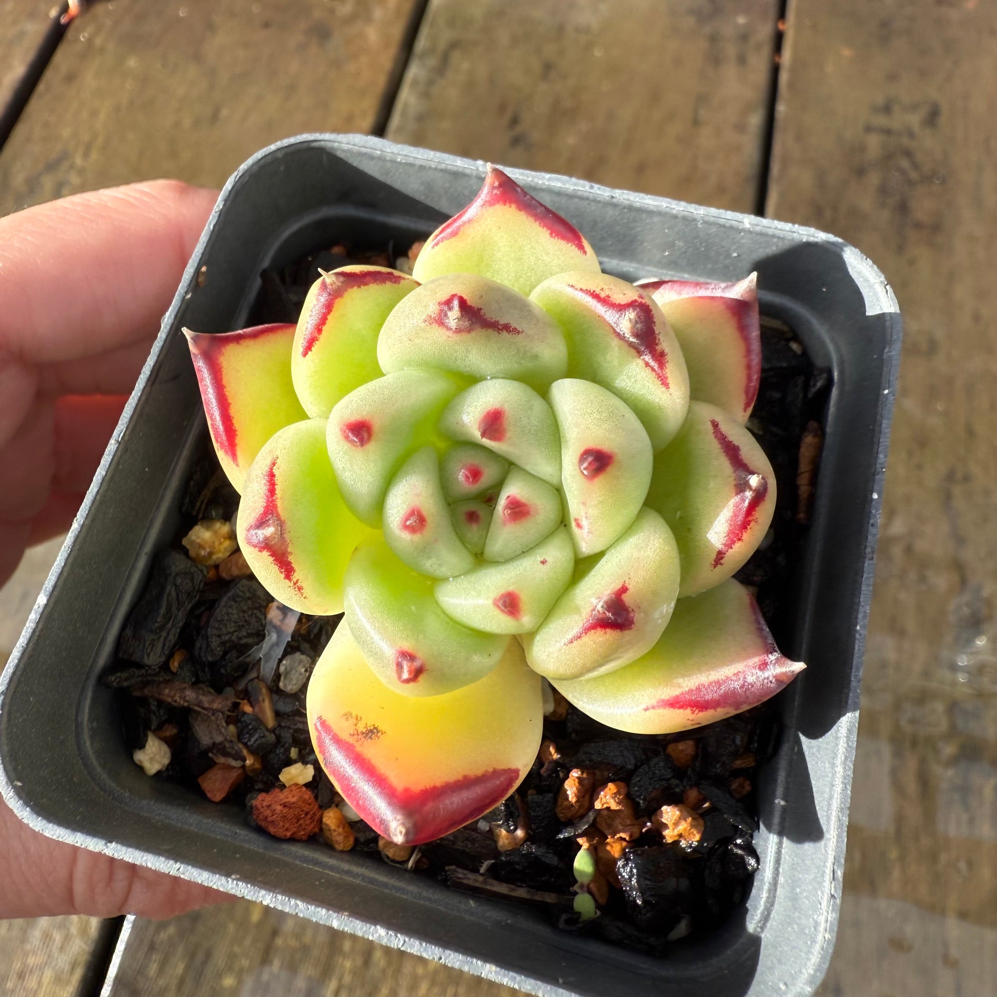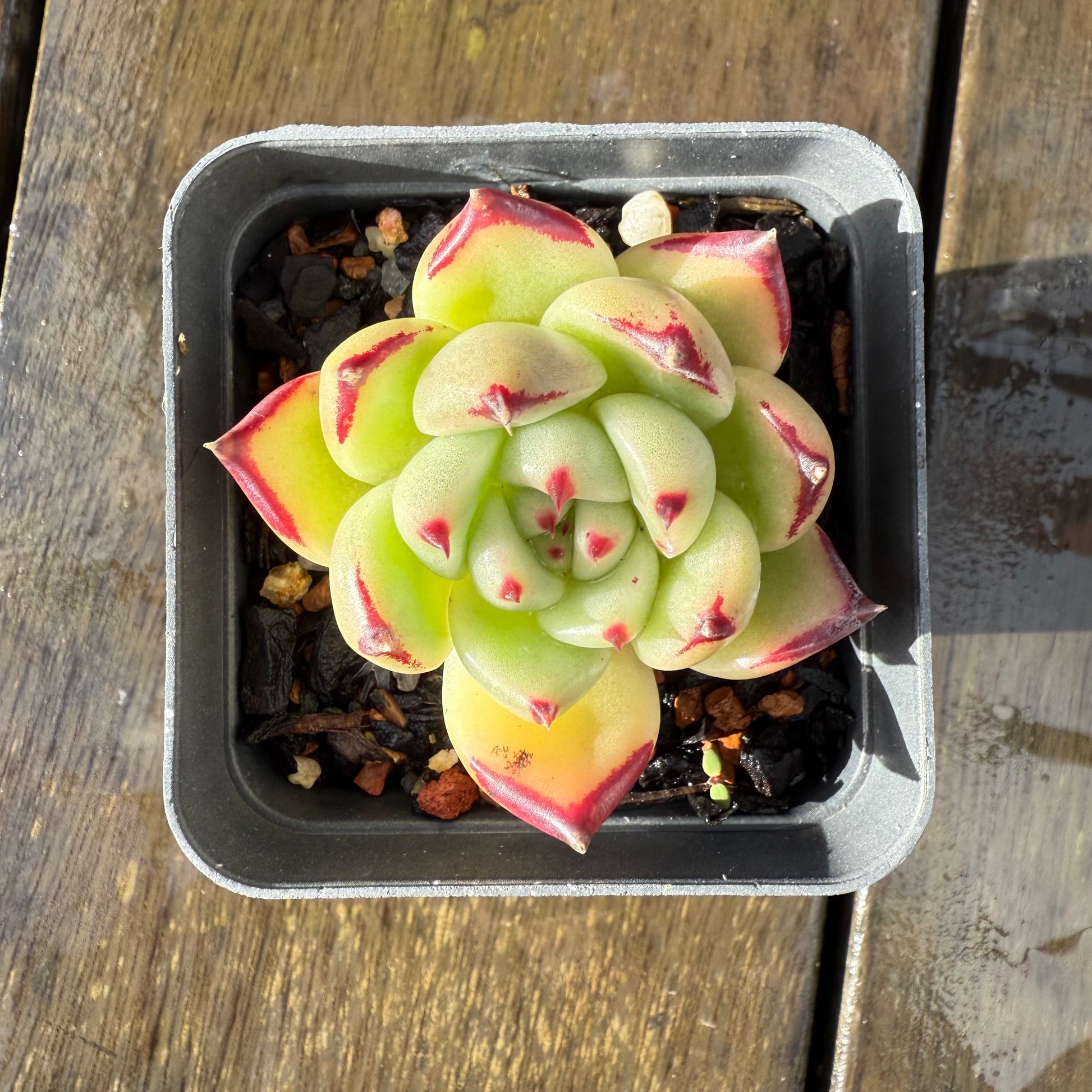 This variety of Ebony has chubby leaves that are relatively wide and short. Has dark edges and tips. Prefer full sun.