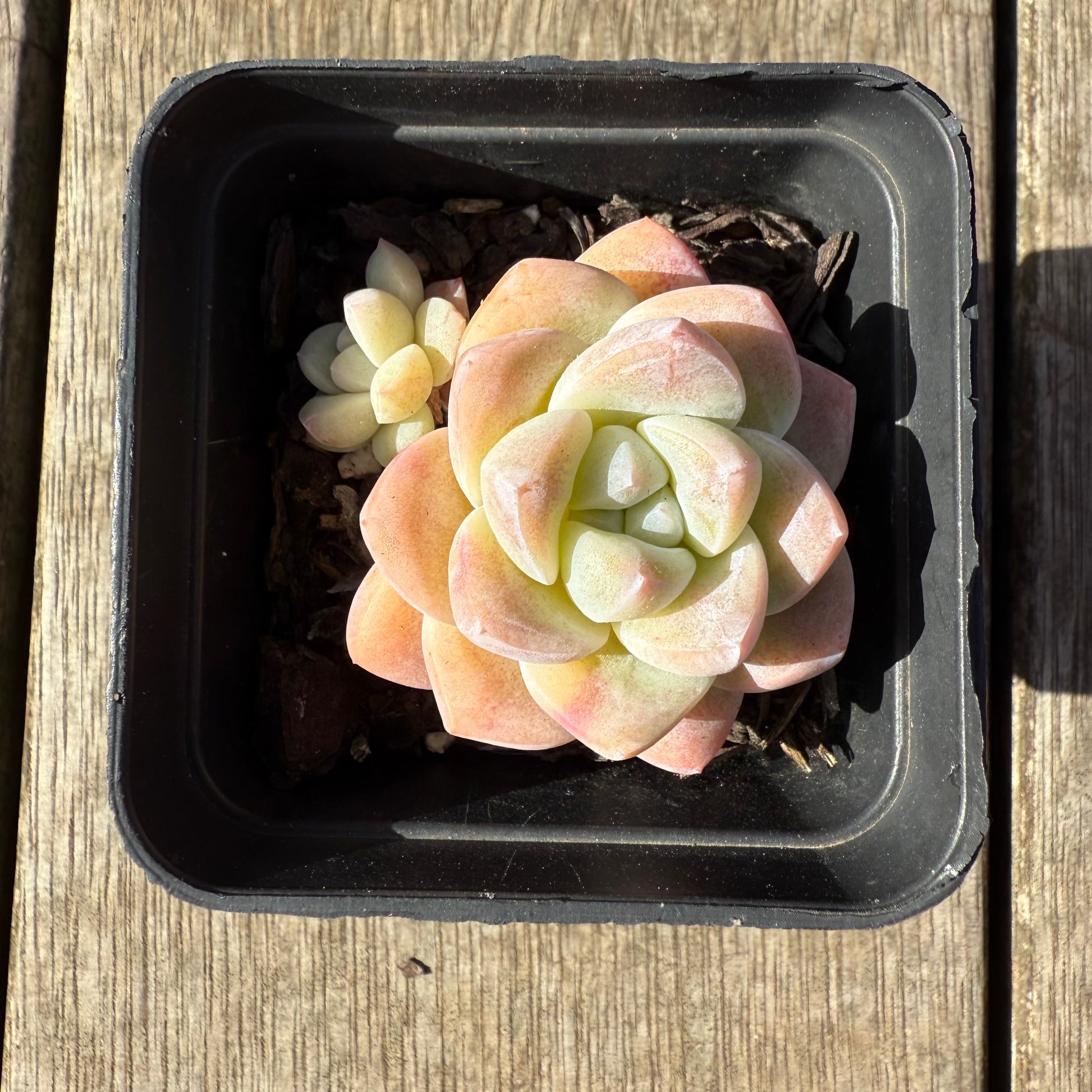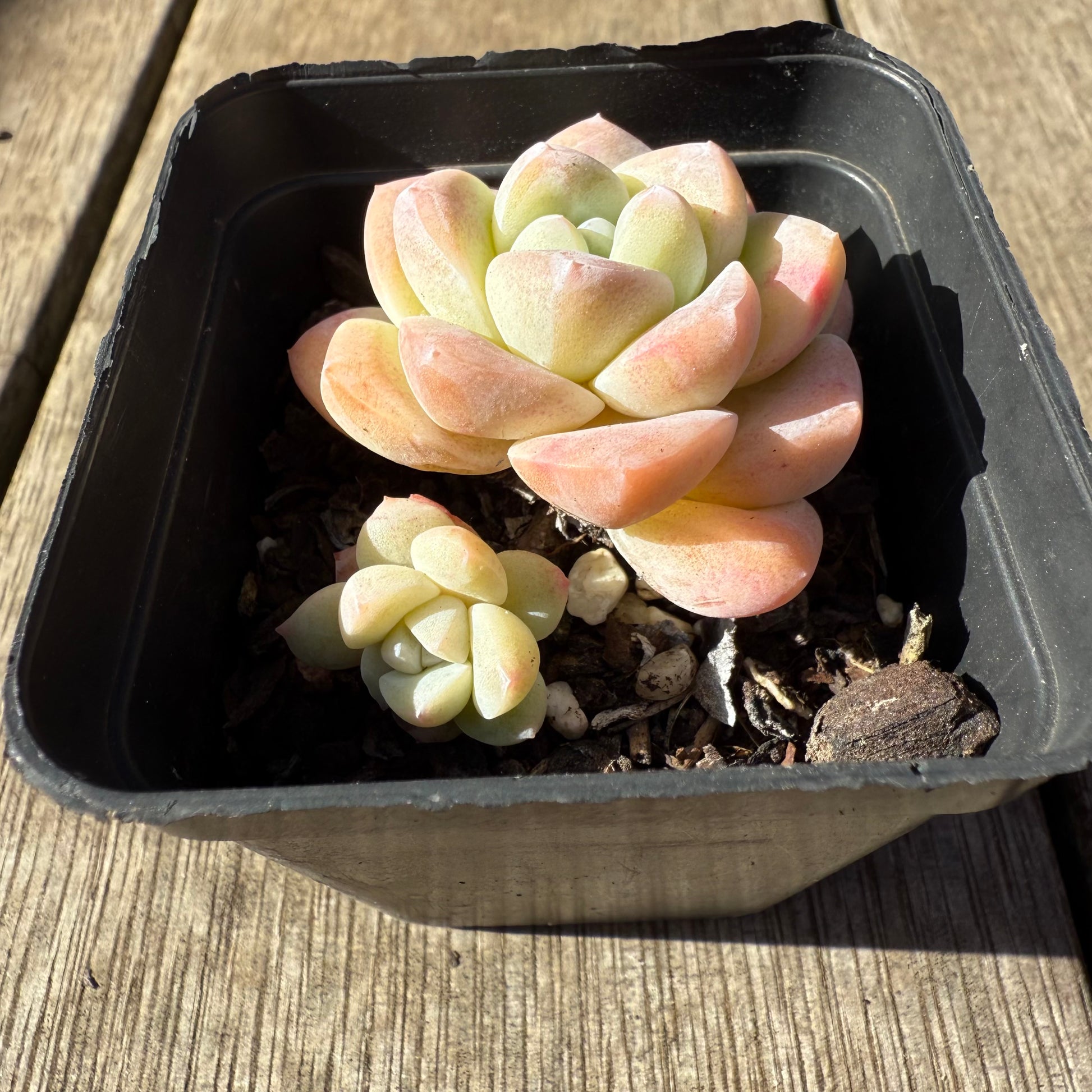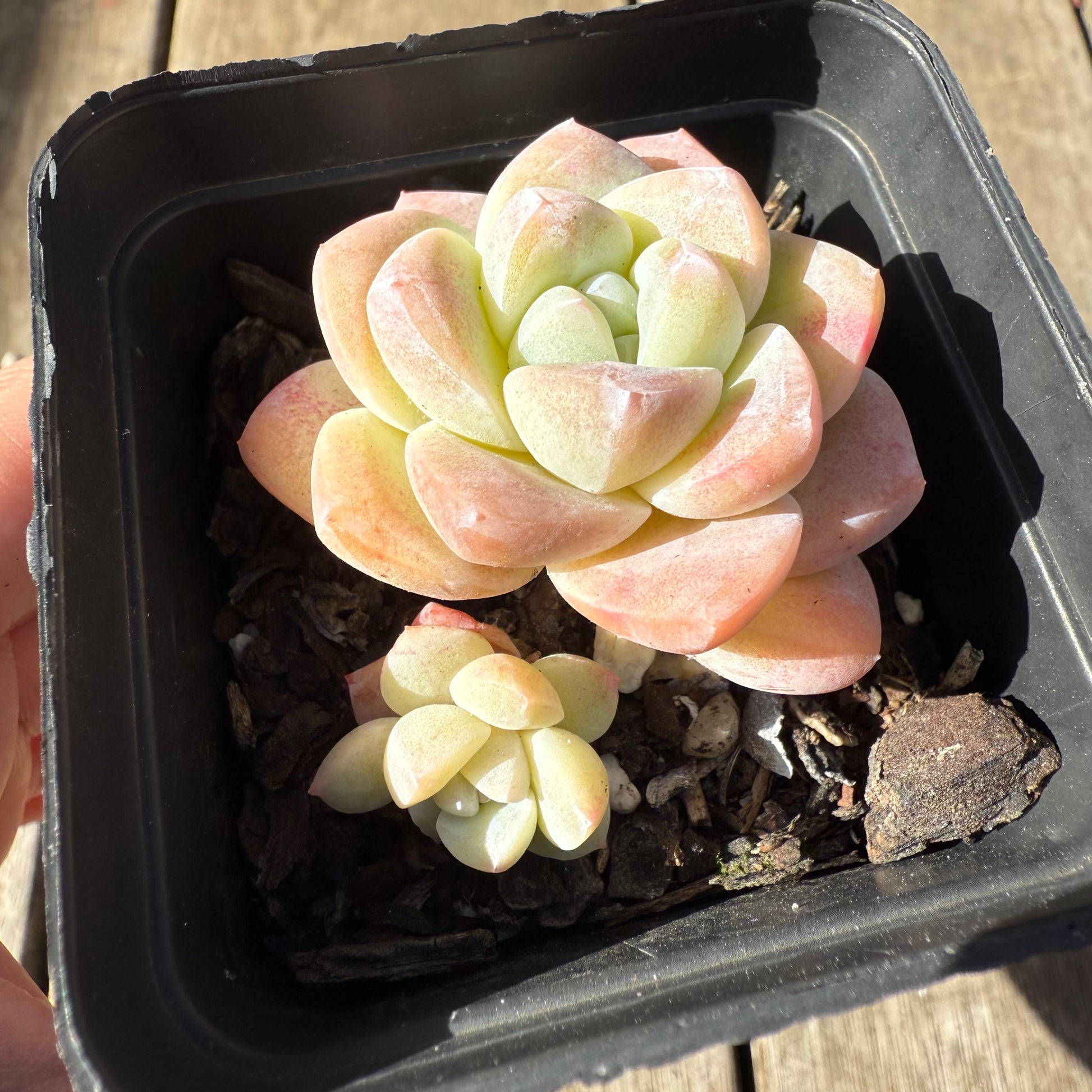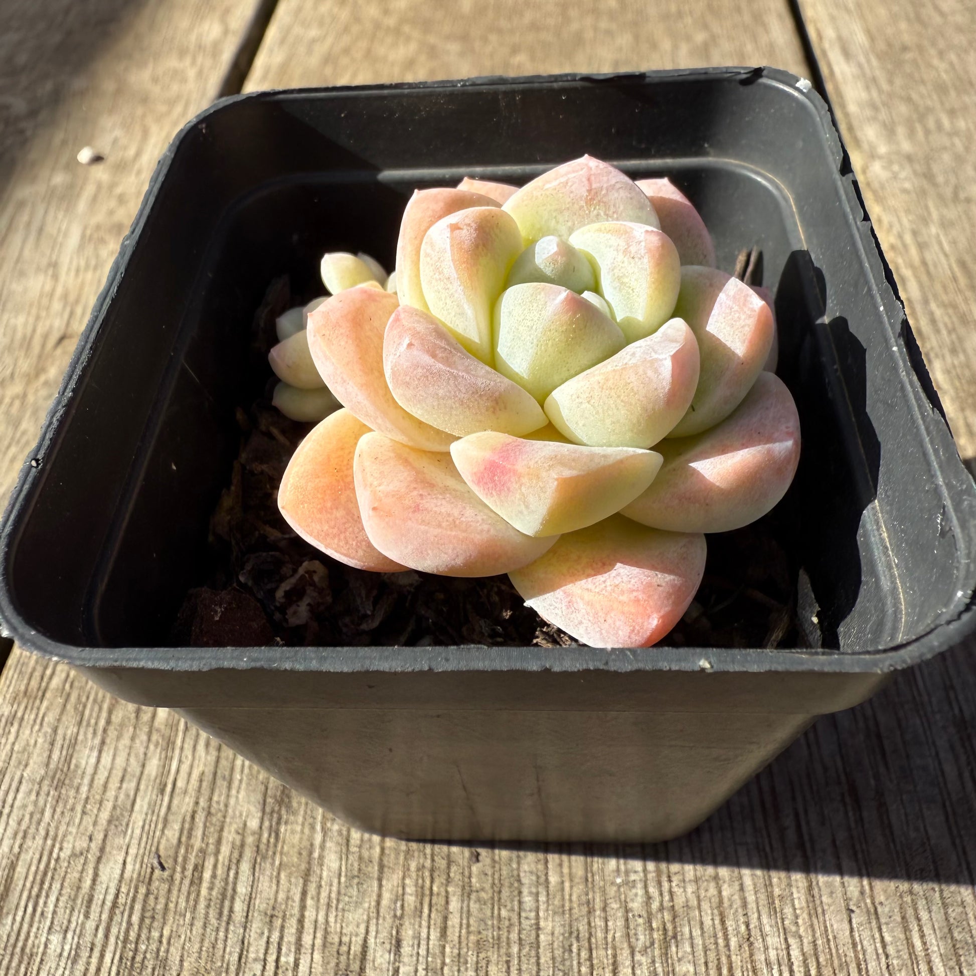 A delicate chubby succulent that forms beautiful white markings on its leaves when grown well. When stressed it will turn semi-translucent yellow/pink. Always water from bottom to avoid water sitting between its leaves. Prefer full/partial sun.