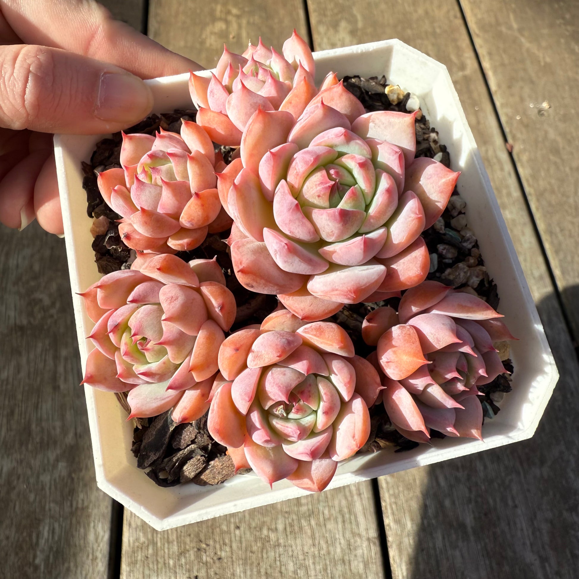 Echeveria 'Tippy' is a classic collector's favourite. It has pale blue-green leaves and as its name suggests, it has pretty pink tips.