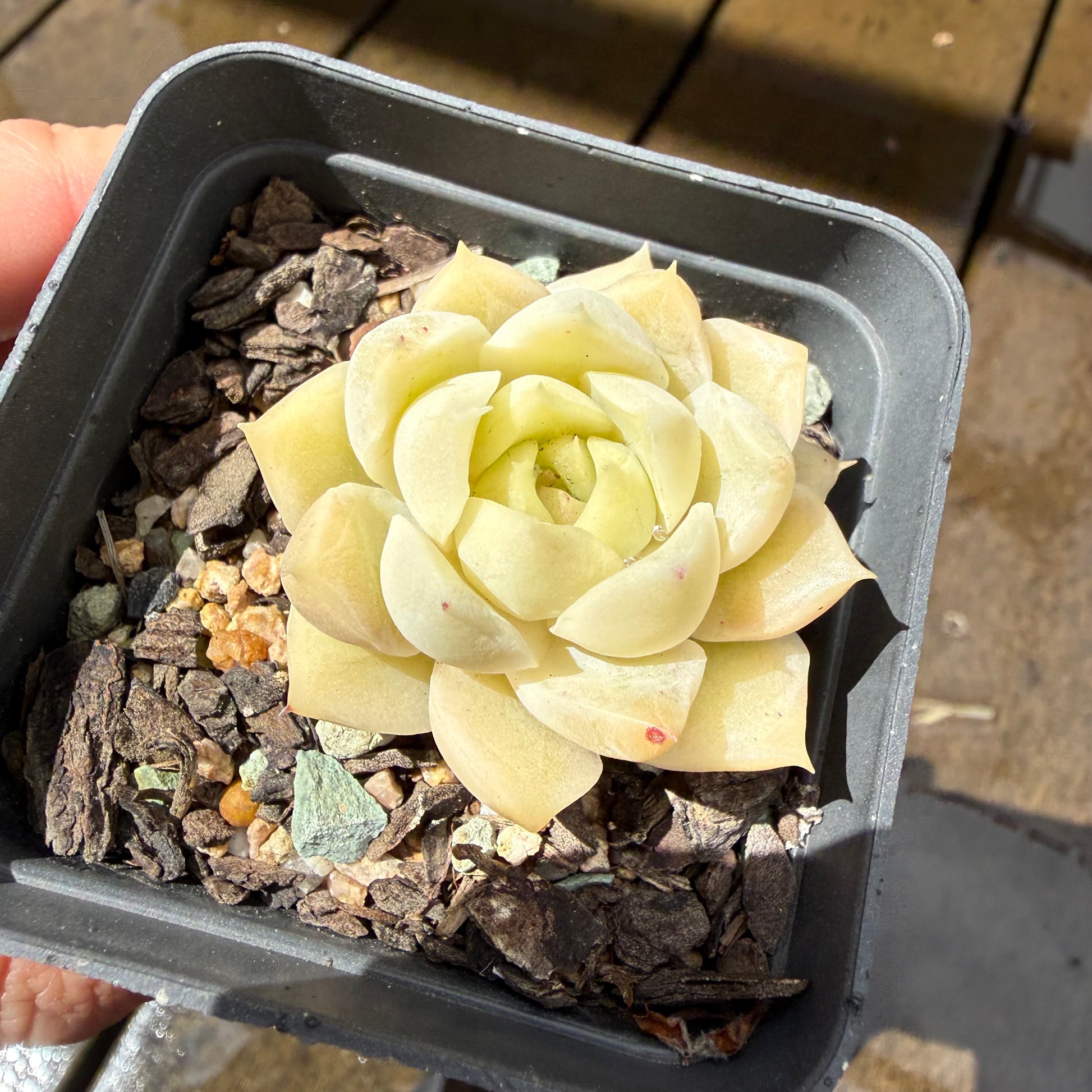 Echeveria Jade Kylin has translucent white leaves. Prefer full sun.
