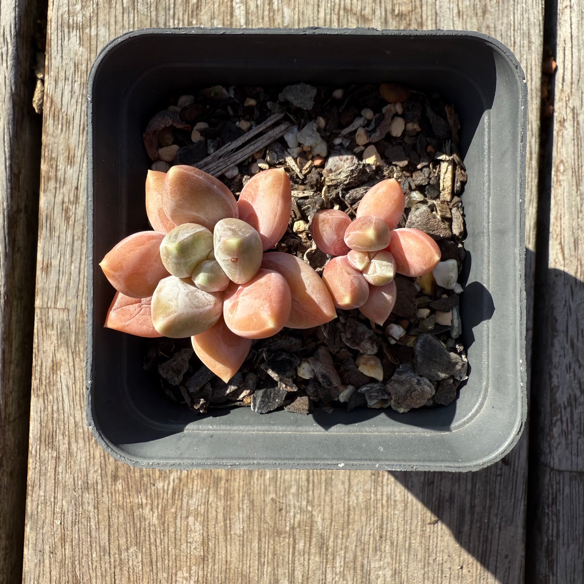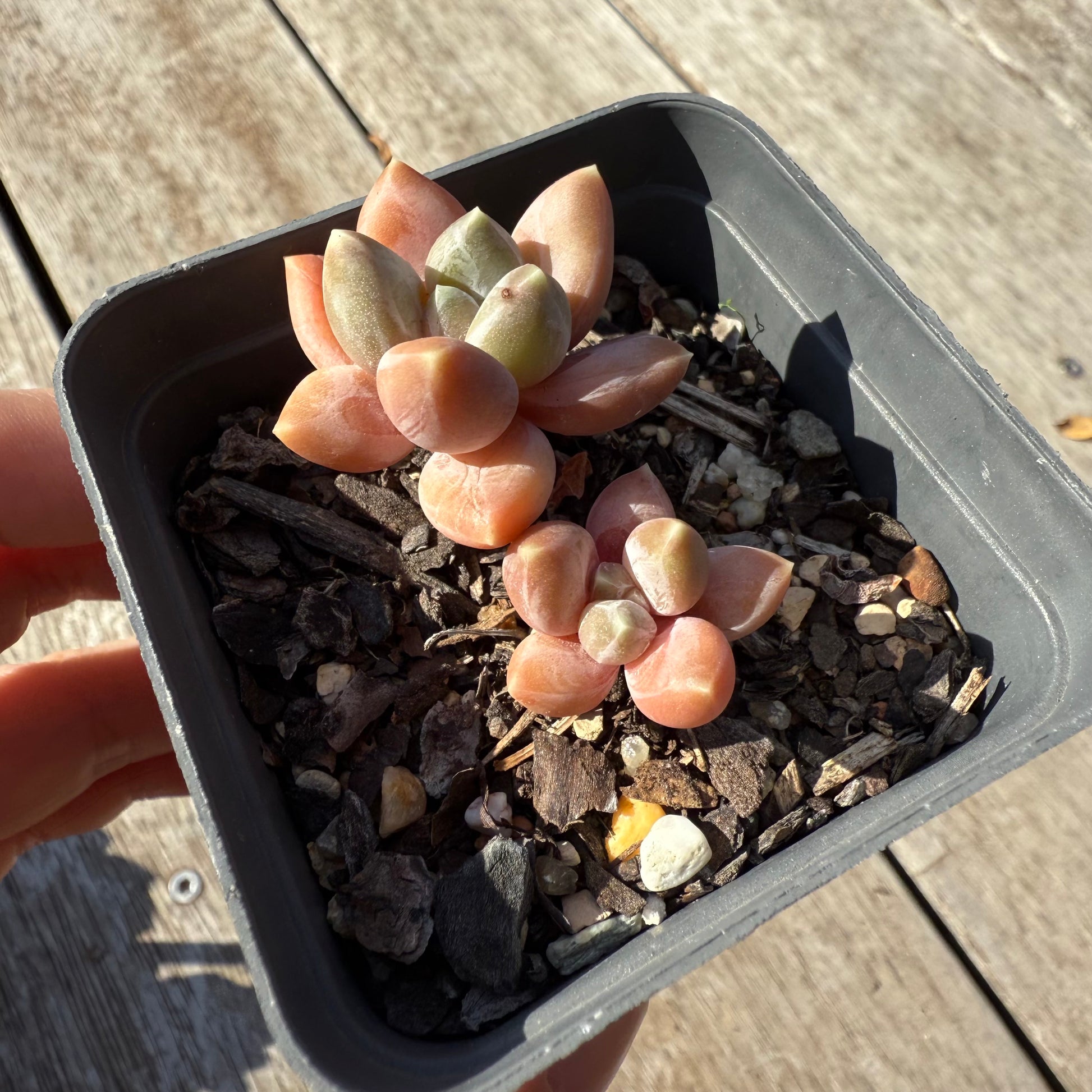 Pachyphytum Blue Finger has chubby angular leaves that stress to orange/purple. Prefers full/part sun.