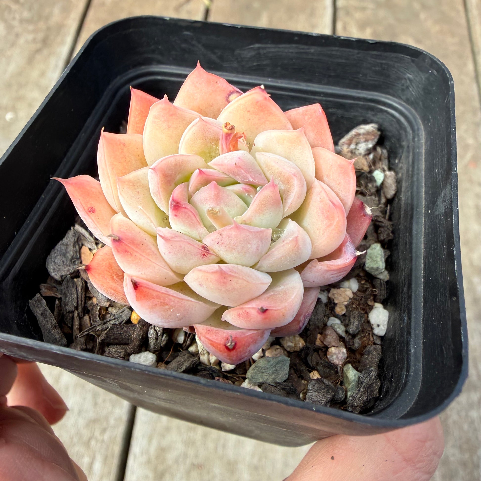 Echeveria Barbie Doll stress to hot barbie pink in cool weather. Prefers full/partial sun.