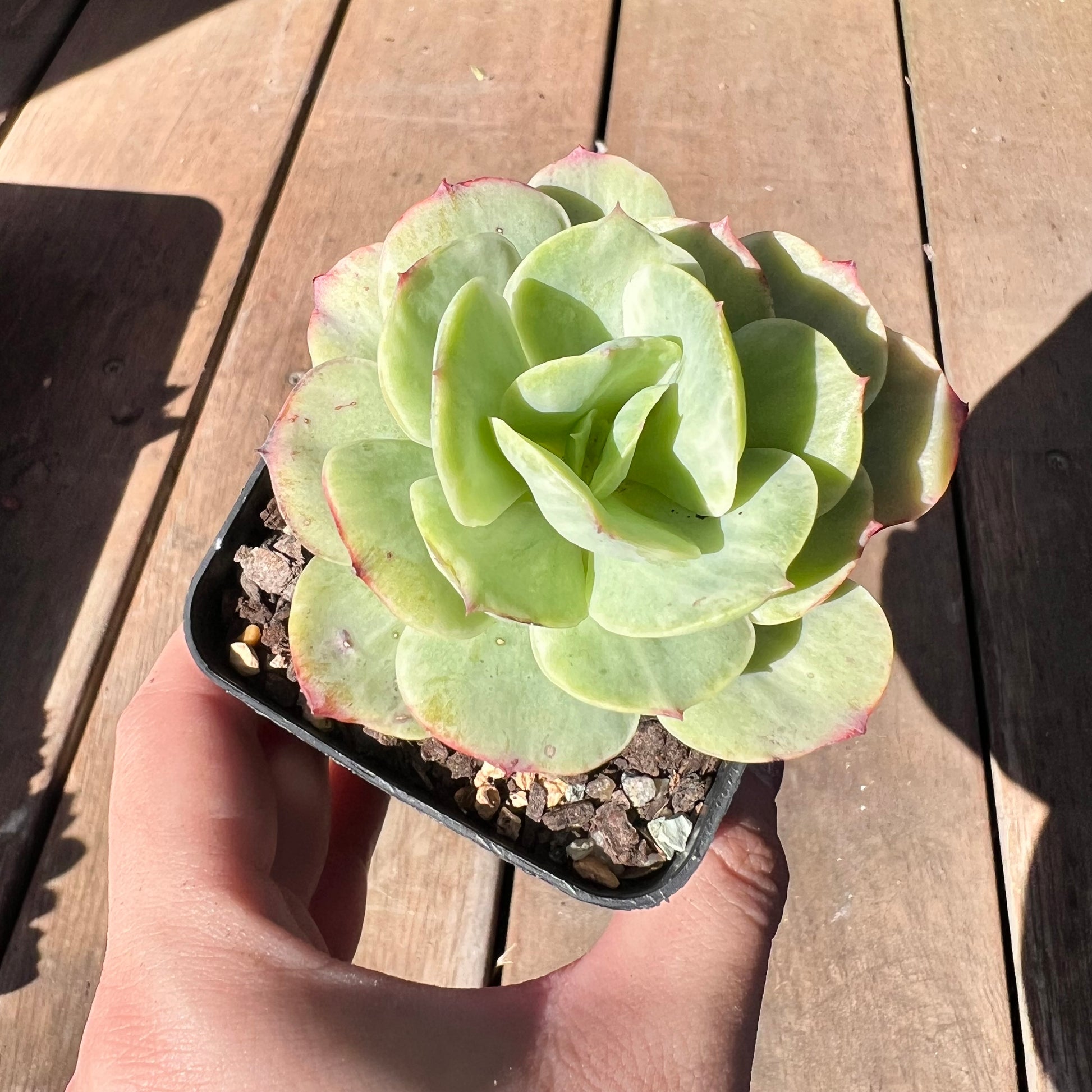 Echeveria Mocha Variegated has pale green leaves with beautiful white variegation strikes.