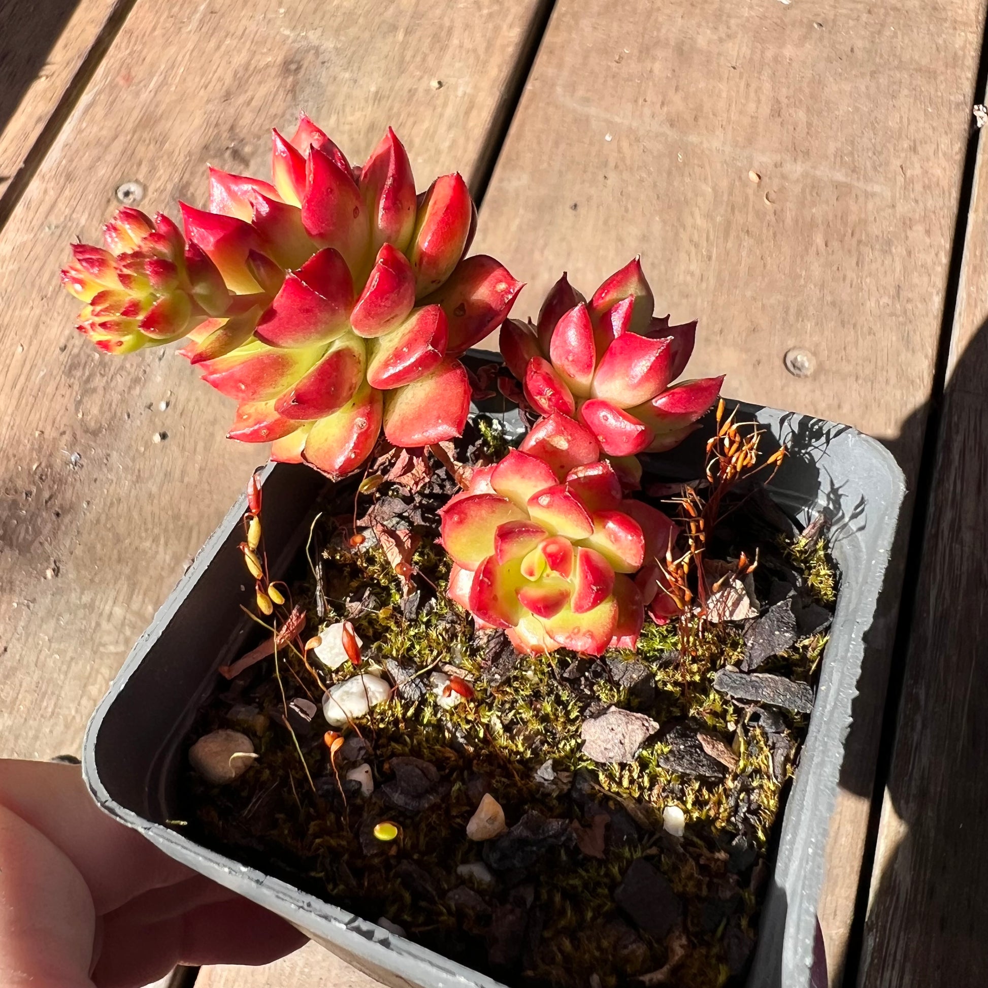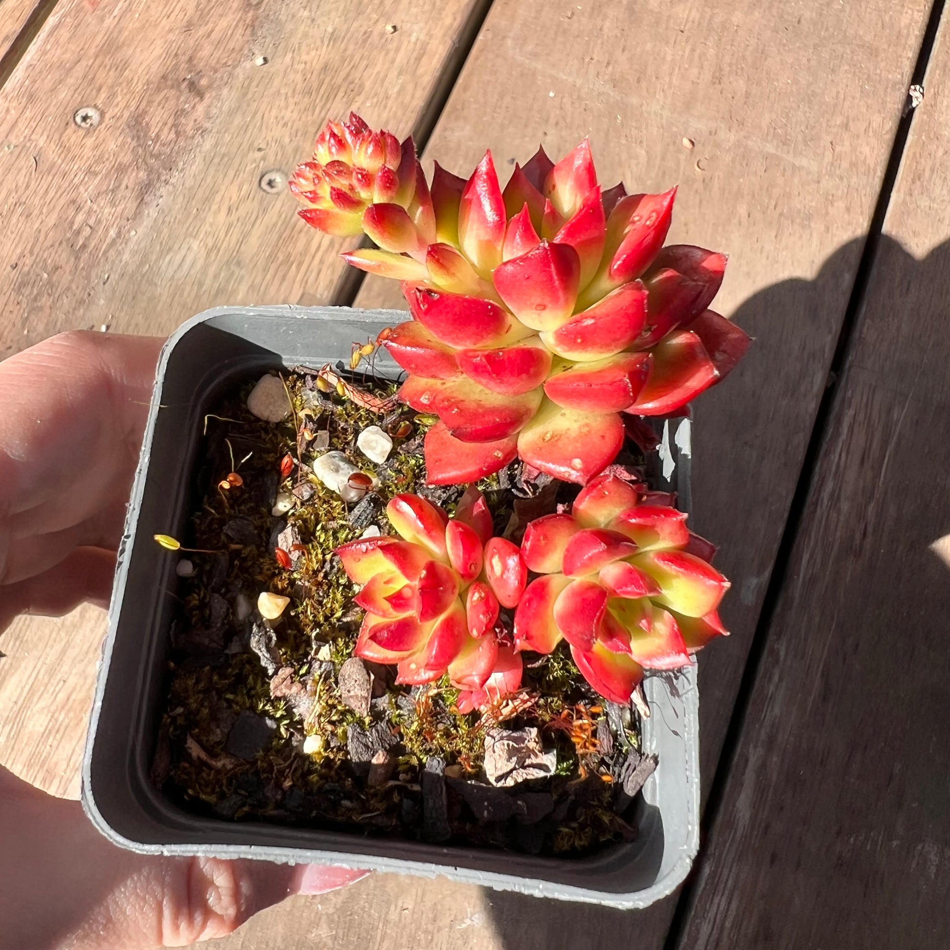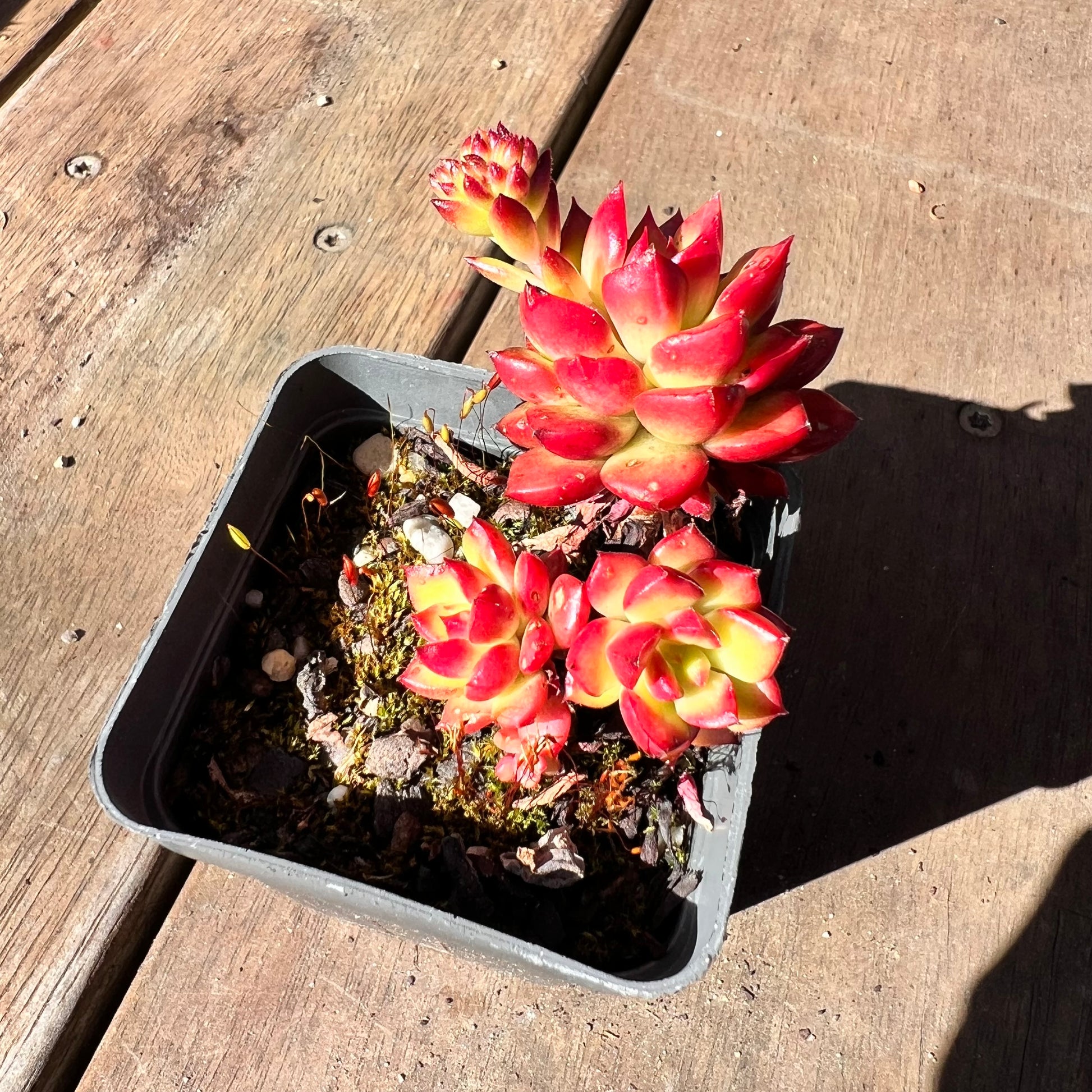 Sedeveria Letizia can become entirely flaming red when stressed. Prefers full sun.
