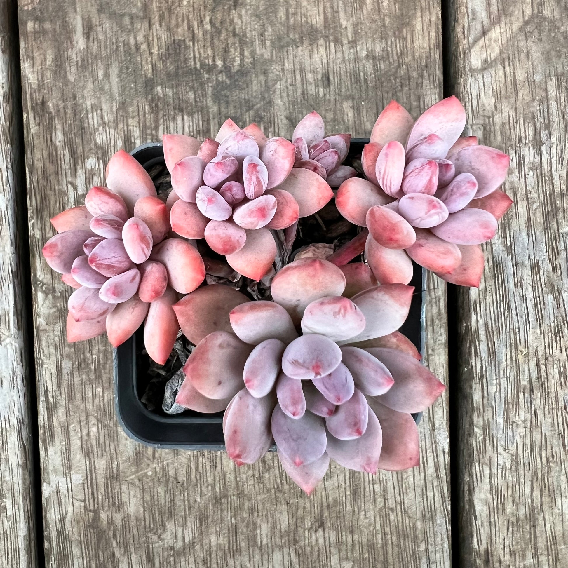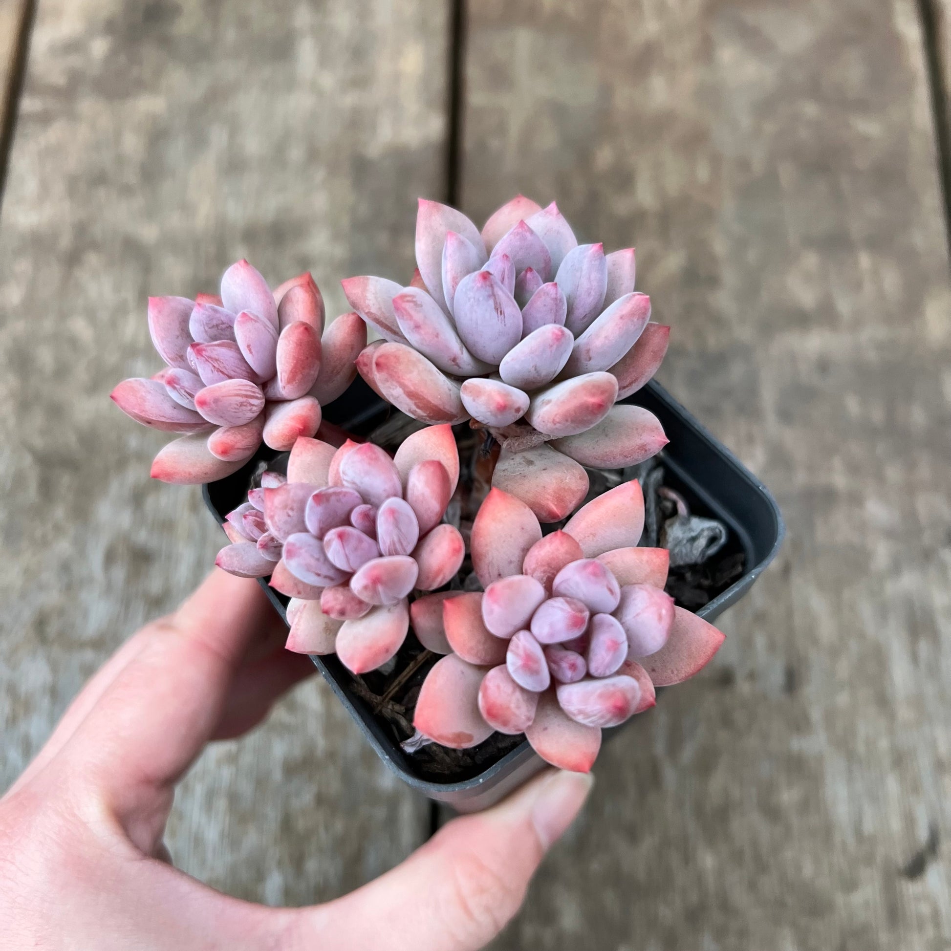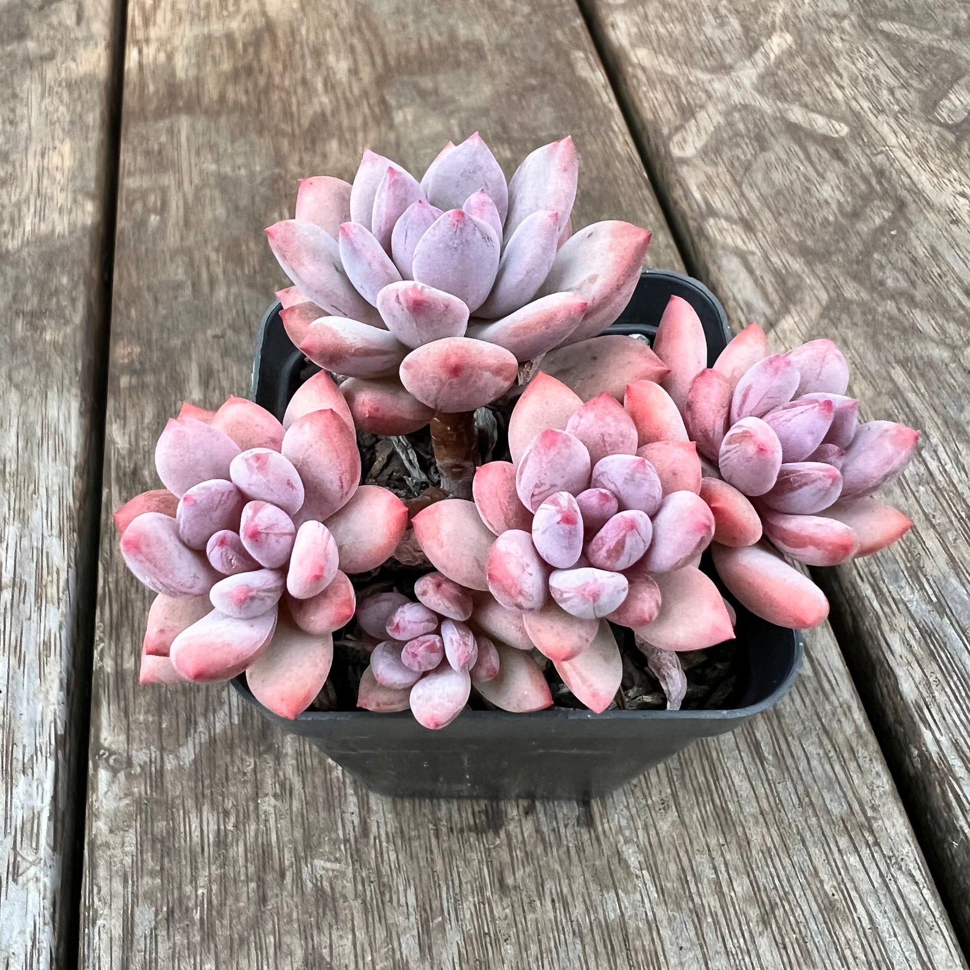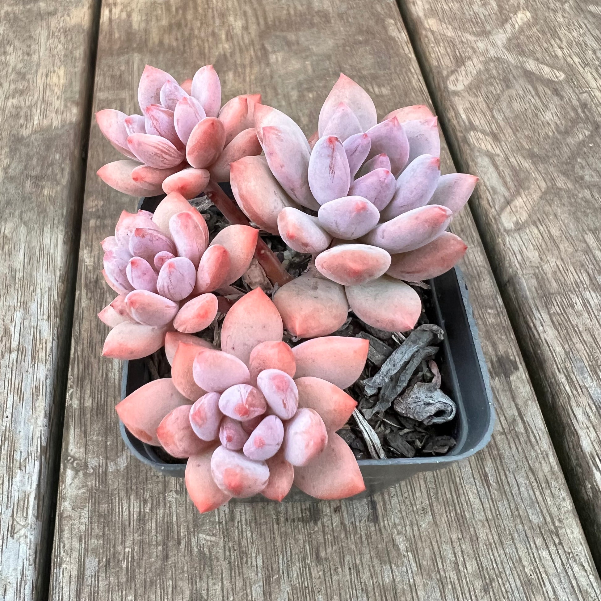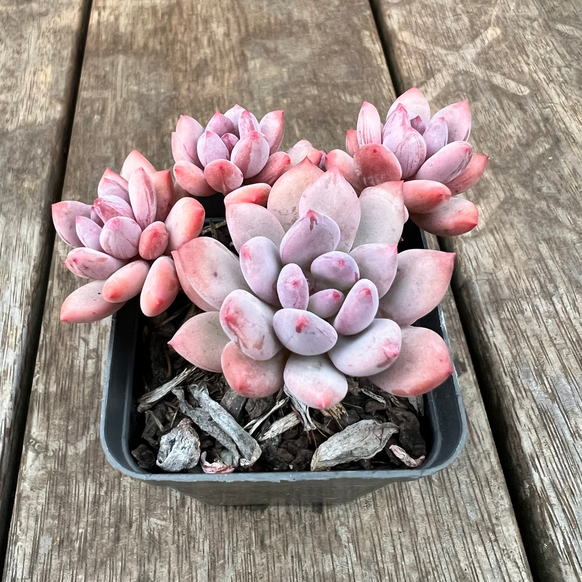 Pachyveria Virgo has pointed blue leaves with red tips when stressed. Prefers full sun.