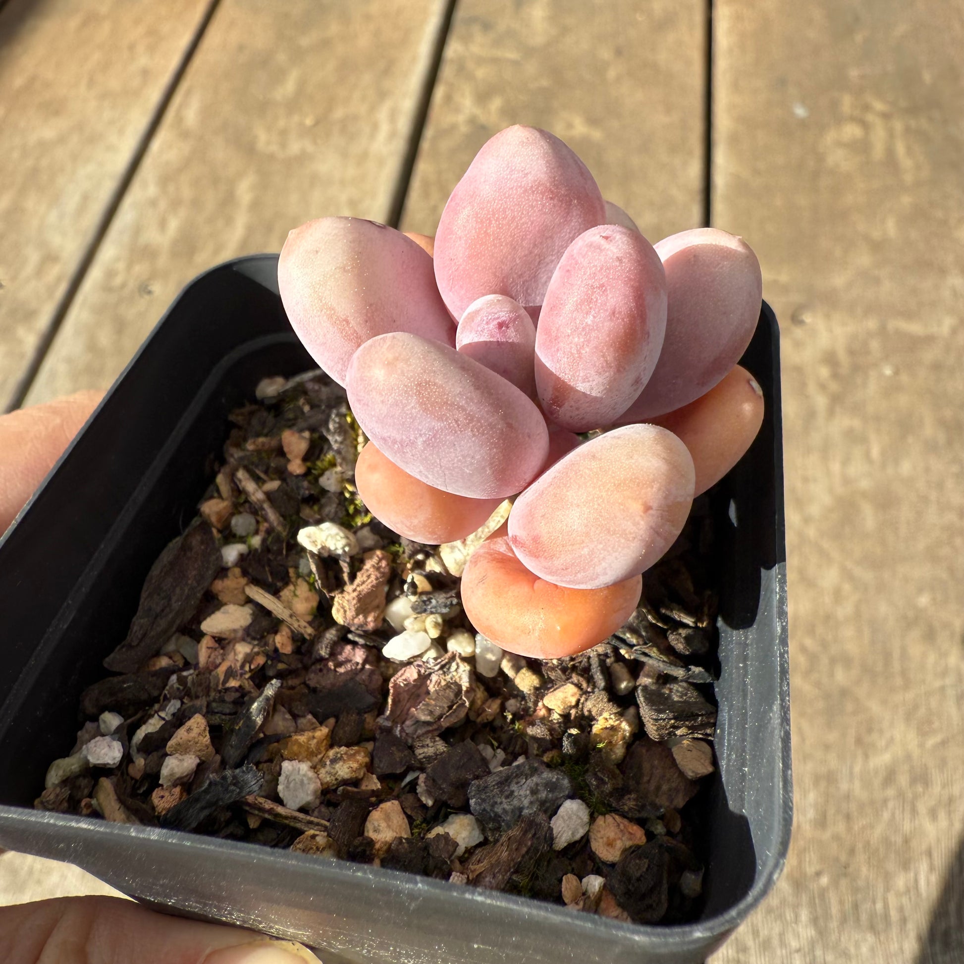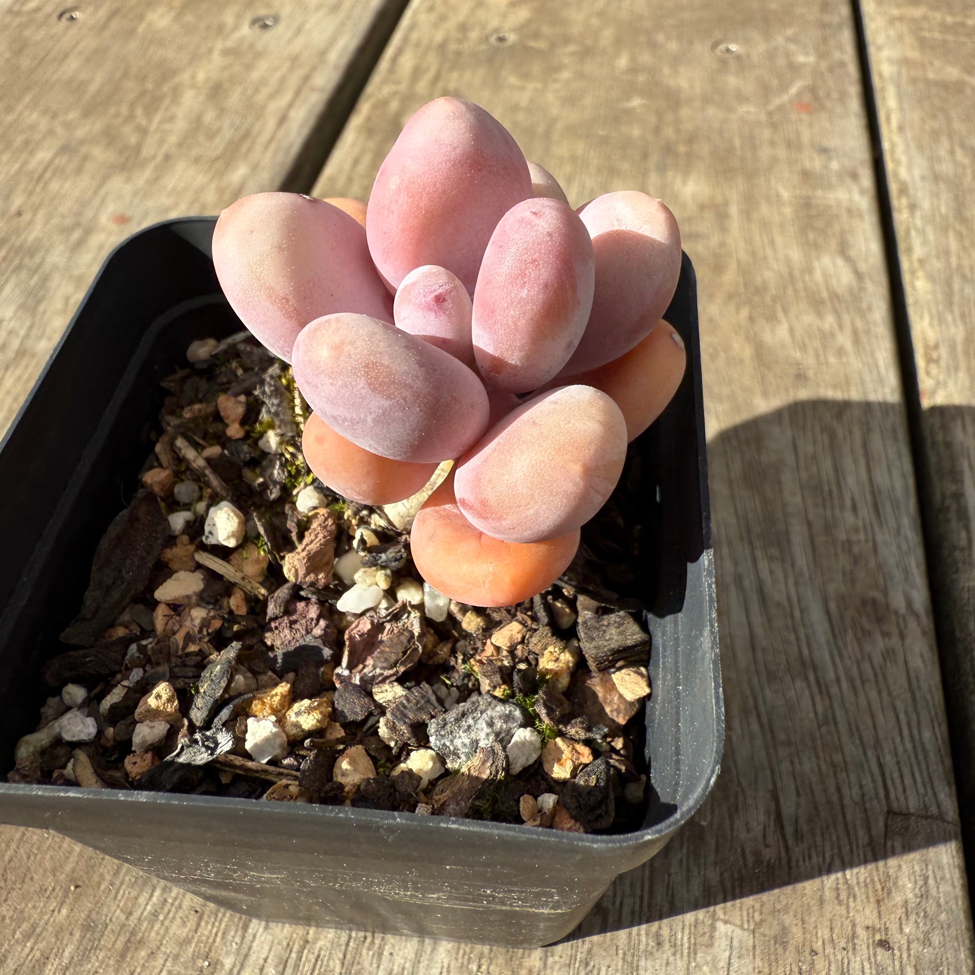 Pachyphytum orange Snowball is an extraordinary hybrid of Graptopetalum Amethystinum (lavender pebbles). Very popular just like their parents. Prefers full/part sun.