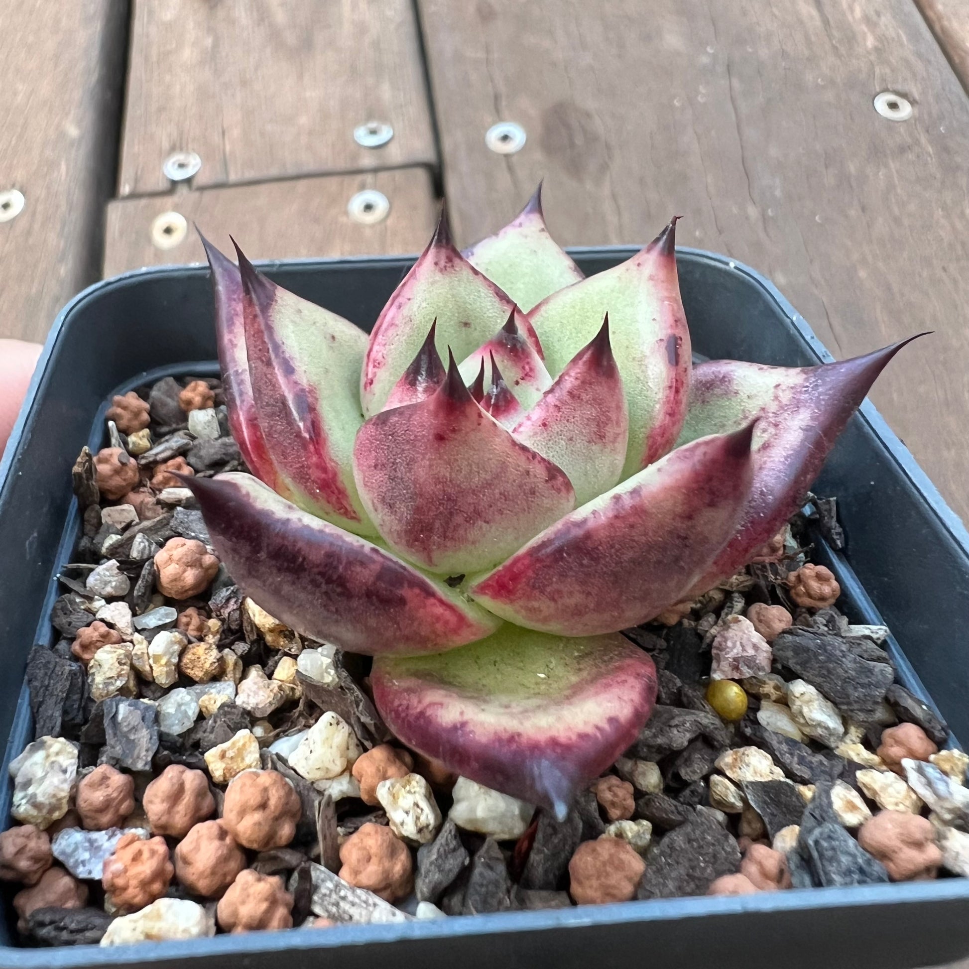 A chubby form of ebony. Possibly a hybrid of Romeo. Prefer full sun.