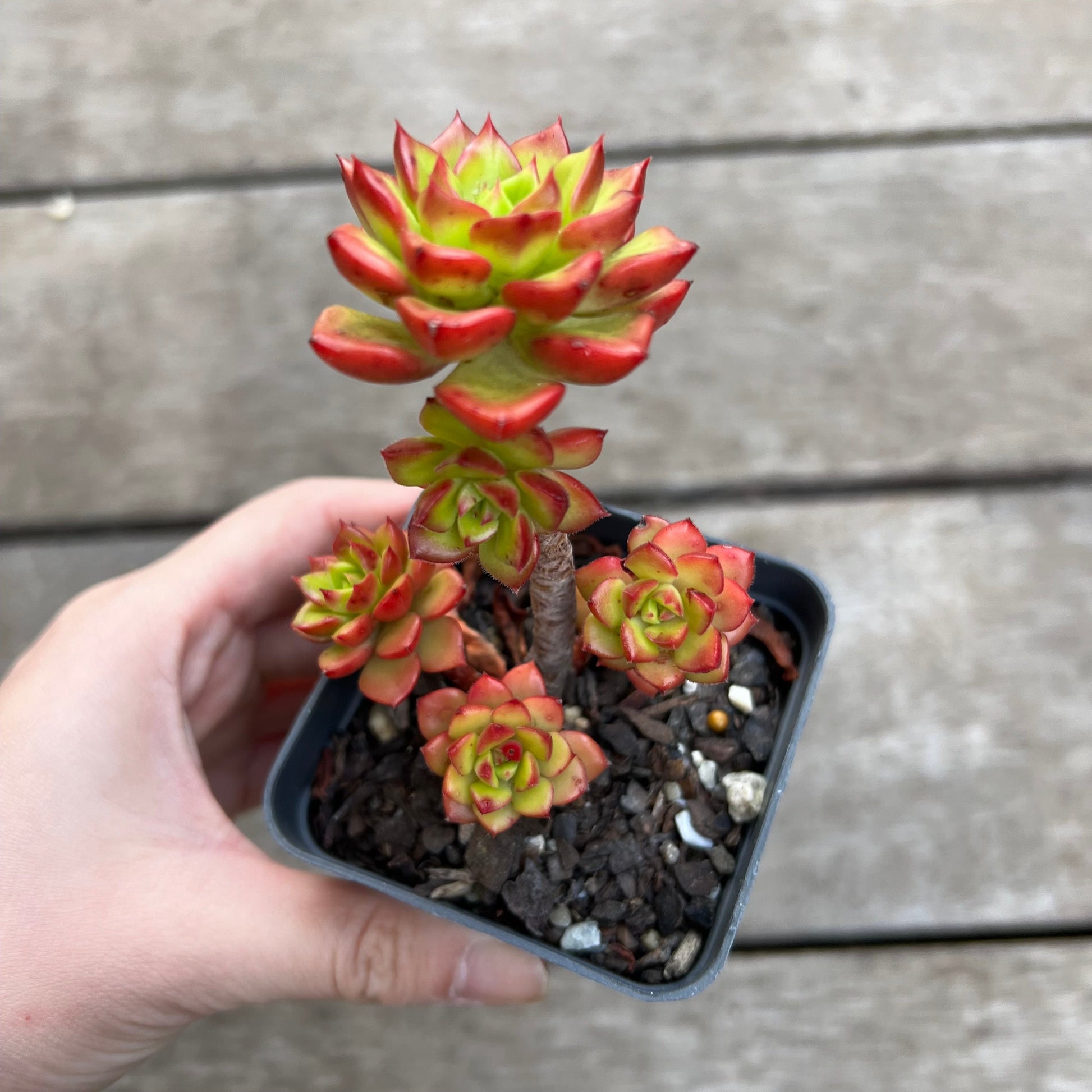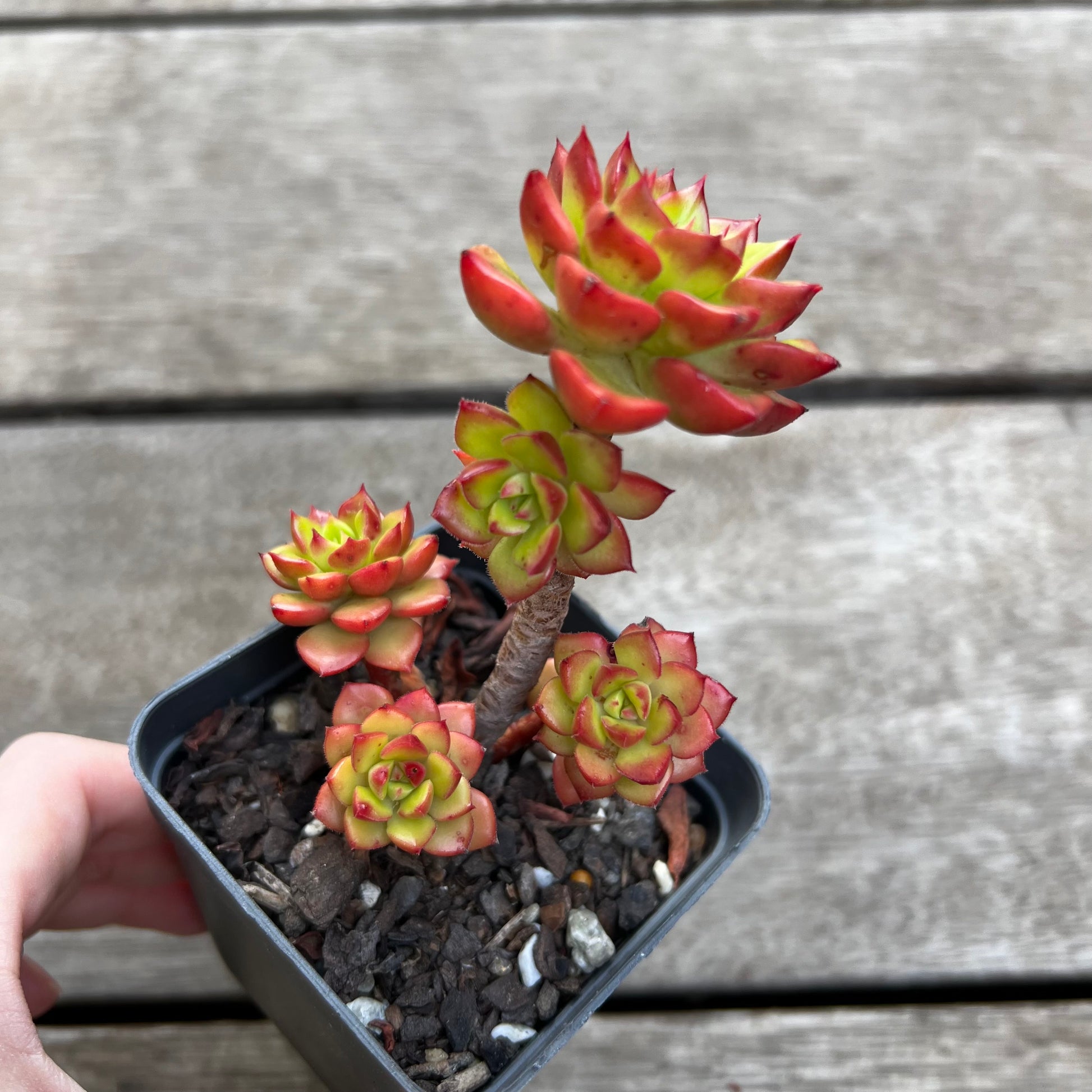 Sedeveria Letizia can become entirely flaming red when stressed. Prefers full sun.