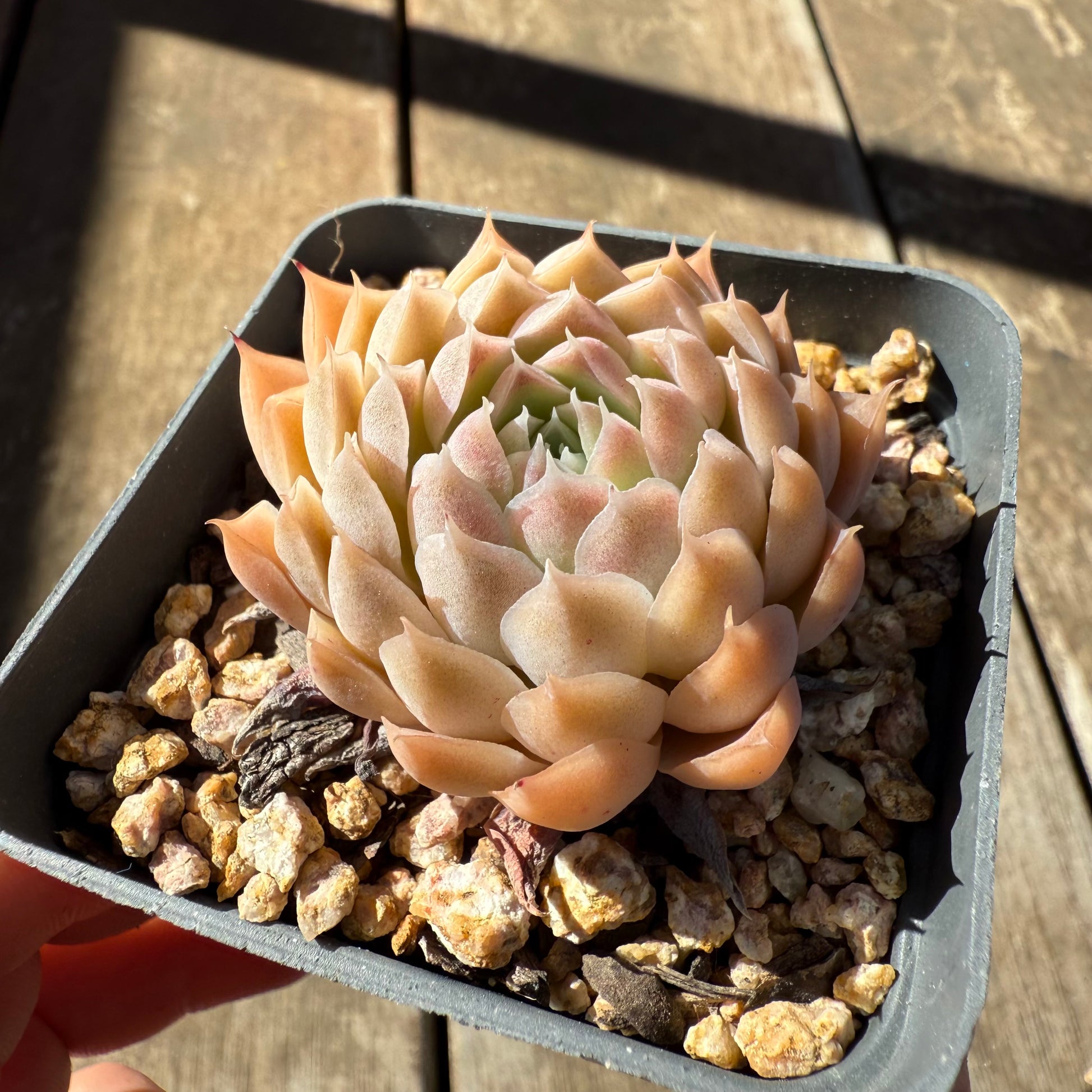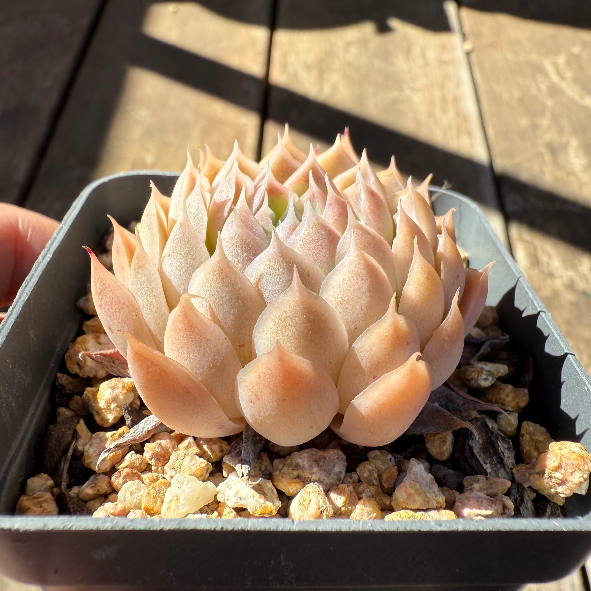 Echeveria 'Ferris Wheel' is one of our new hybrid. Stress to orange. Prefers full sun.