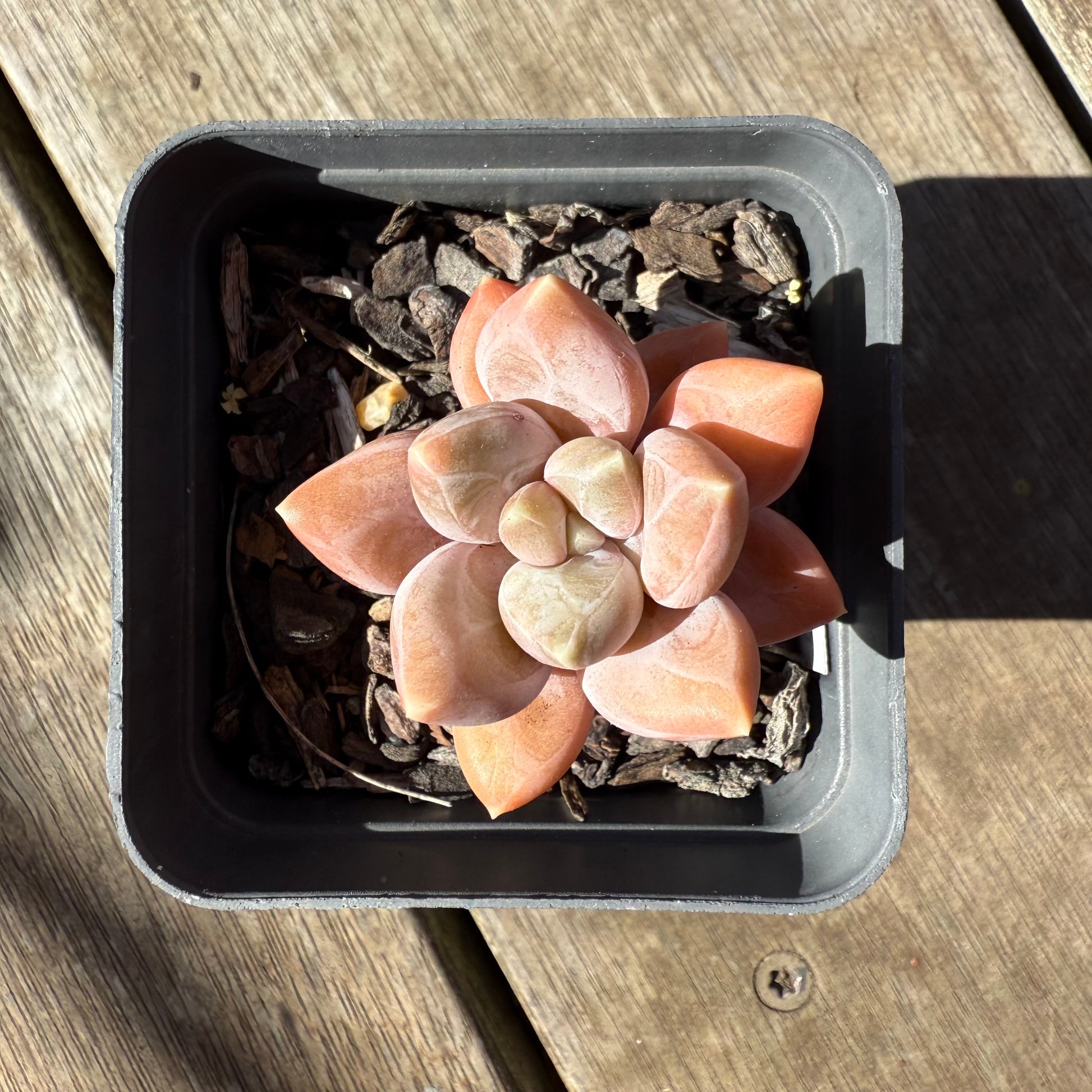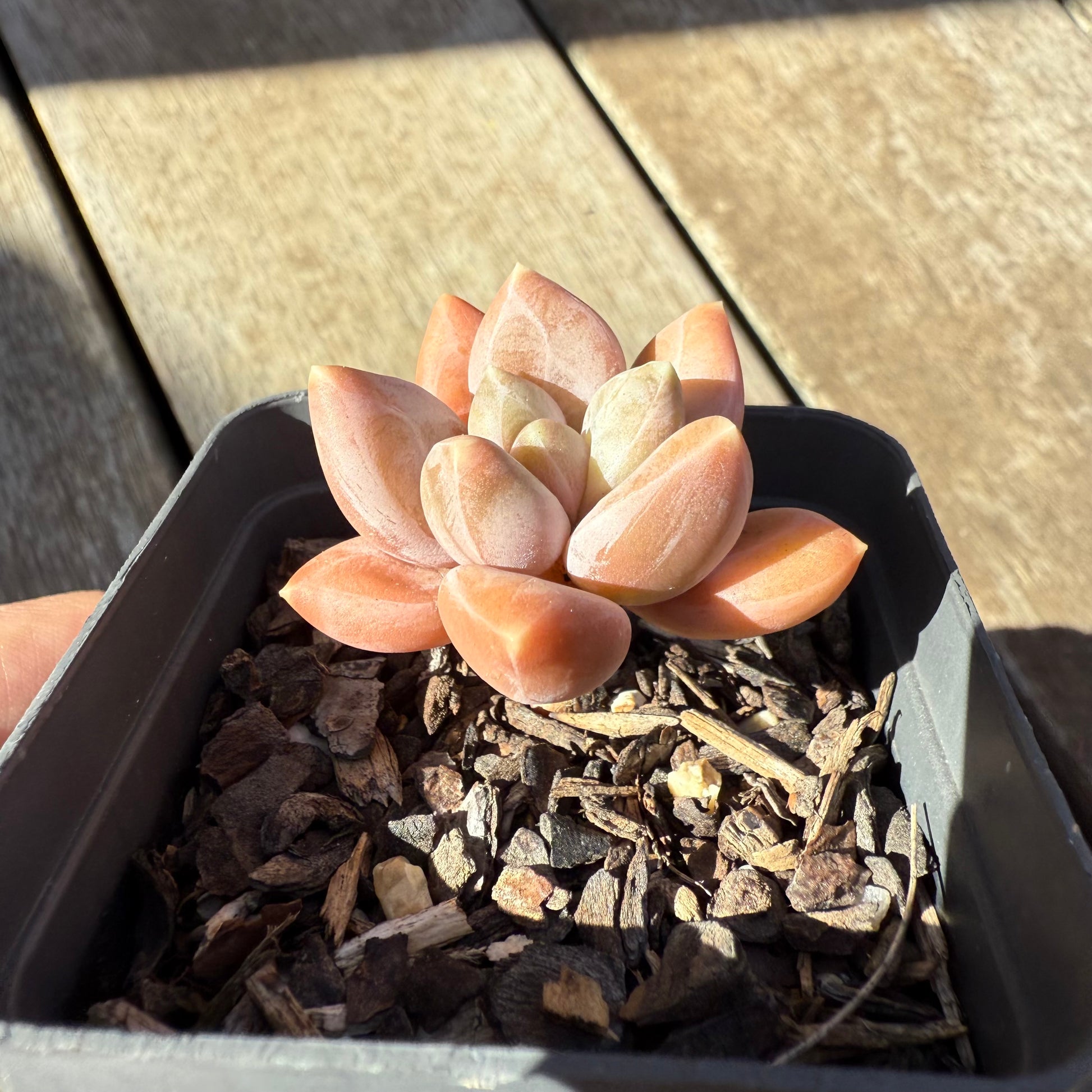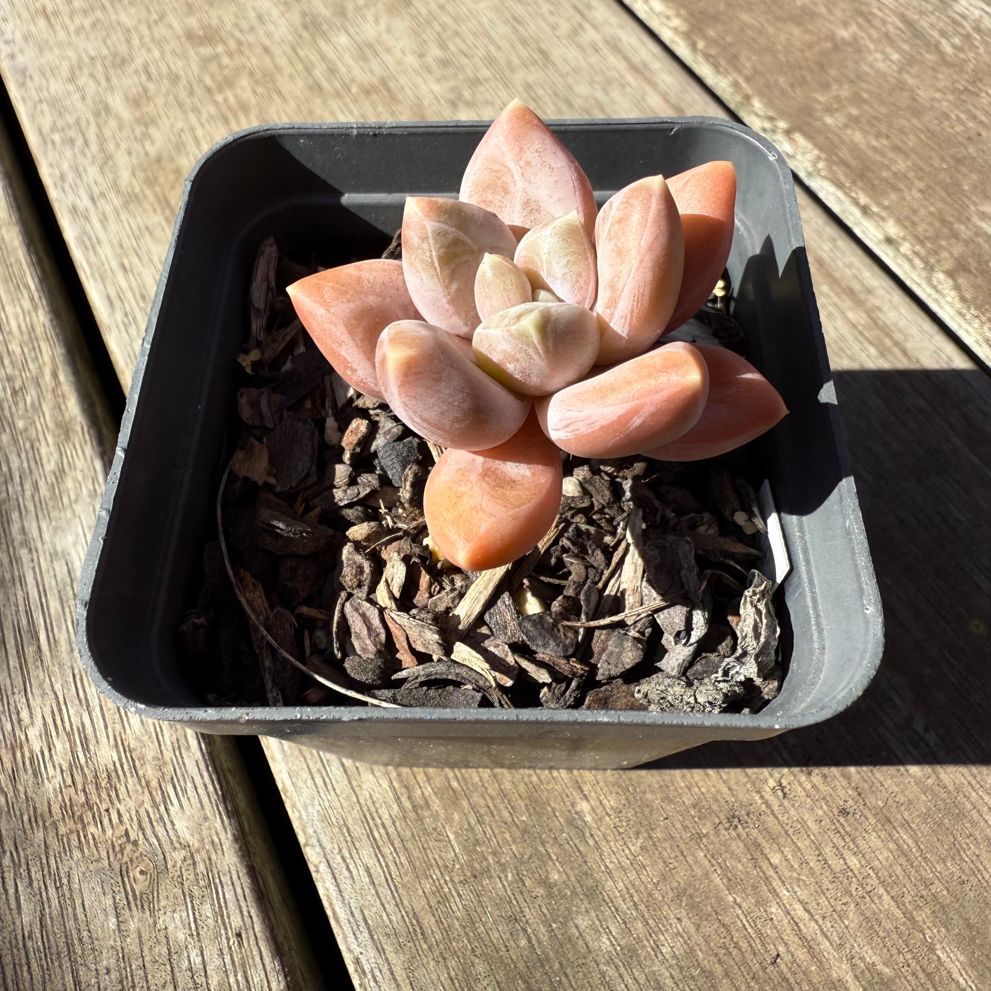 Pachyphytum Blue Finger has chubby angular leaves that stress to orange/purple. Prefers full/part sun.