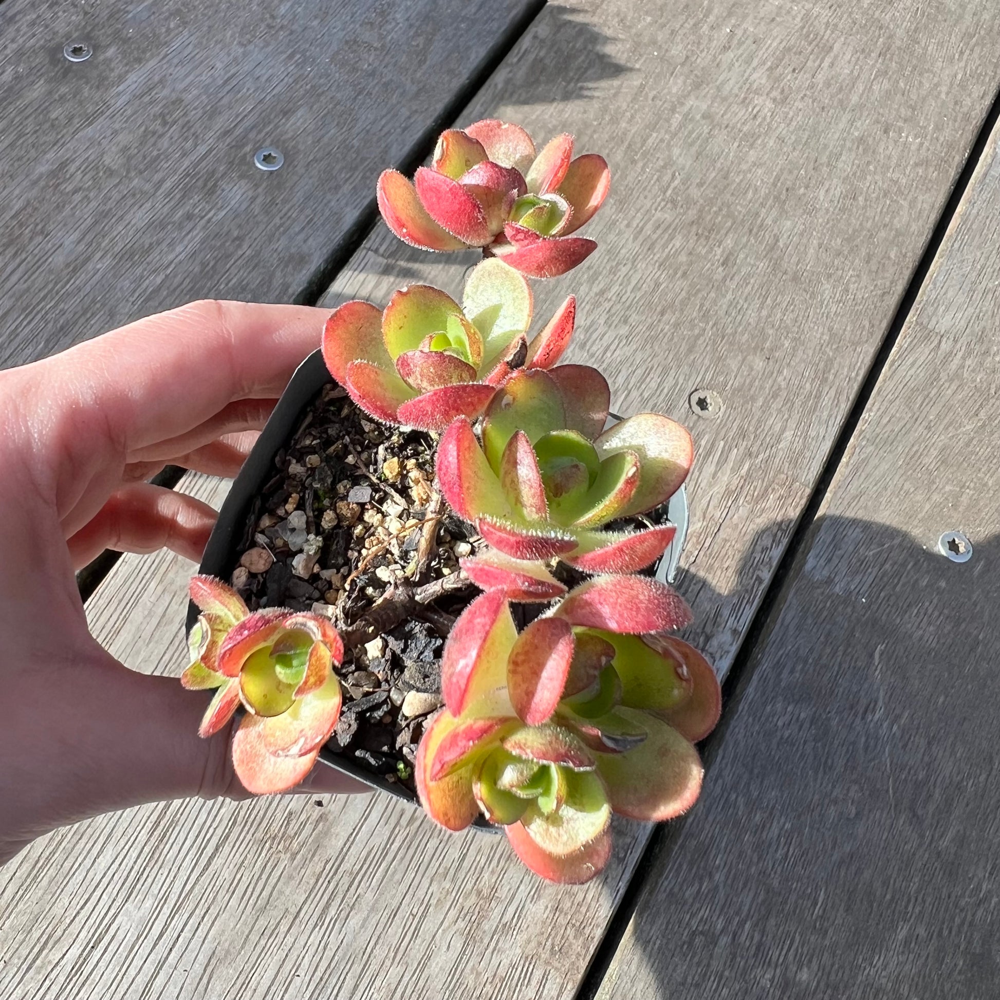 A unique Aeonium variety. Its back will stress to red. Prefers full sun.