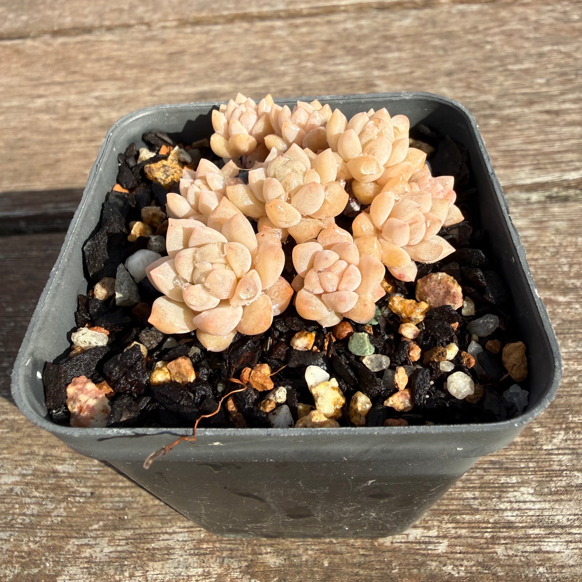 Echeveria Prolifica has dainty rosettes and offsets easily. Stress to pink. Prefers full sun.