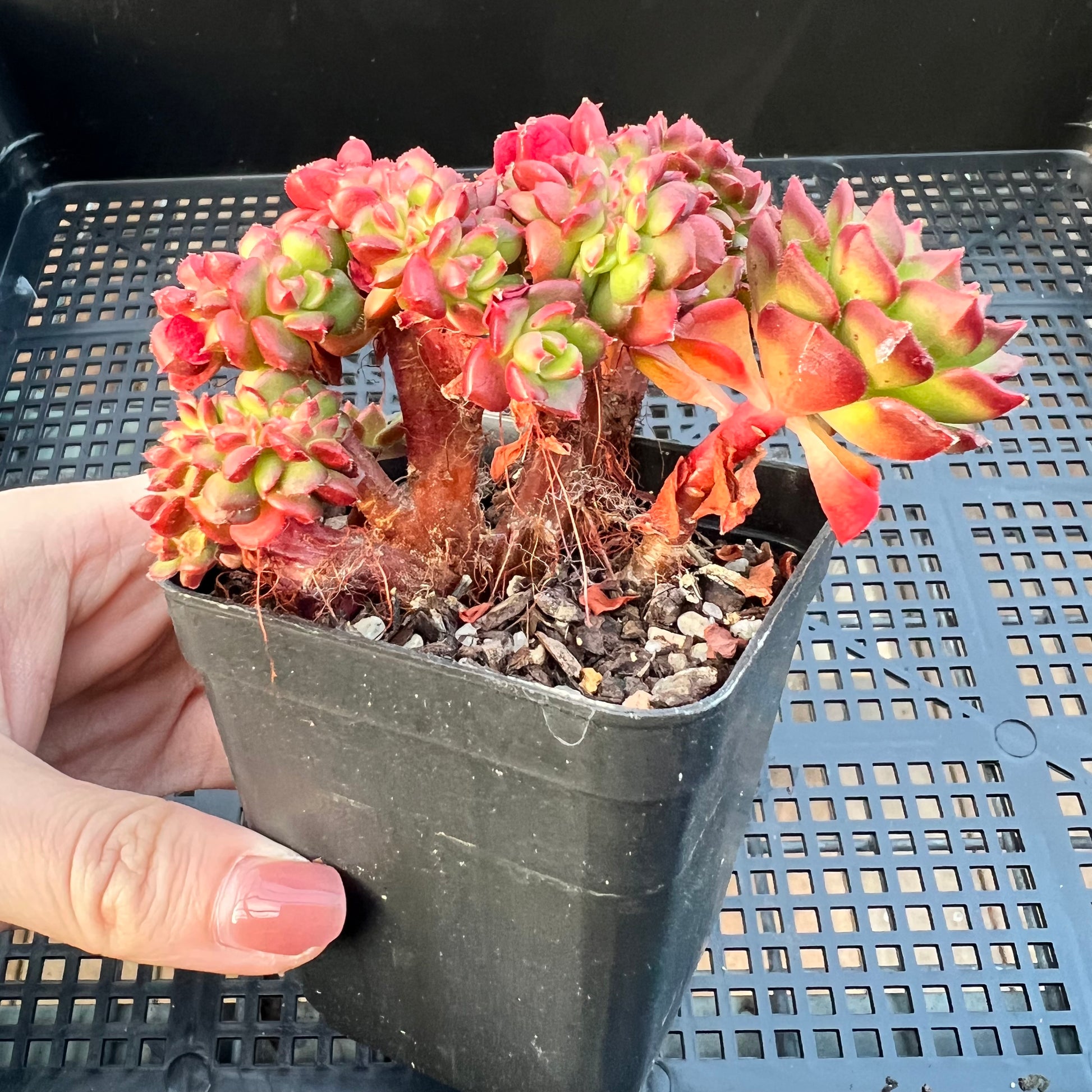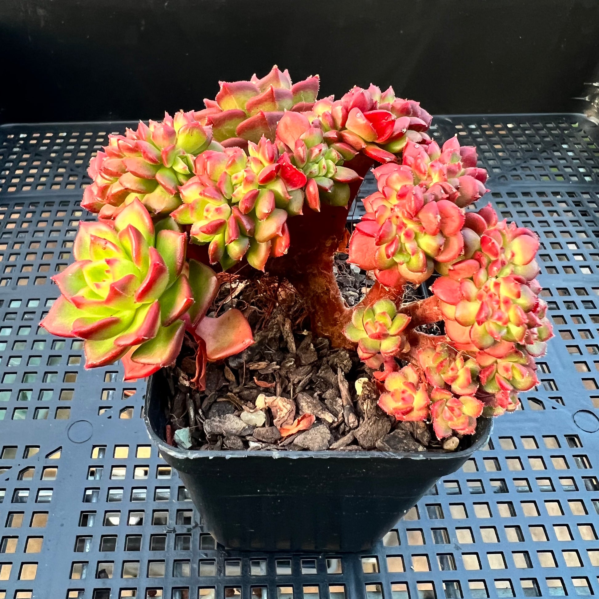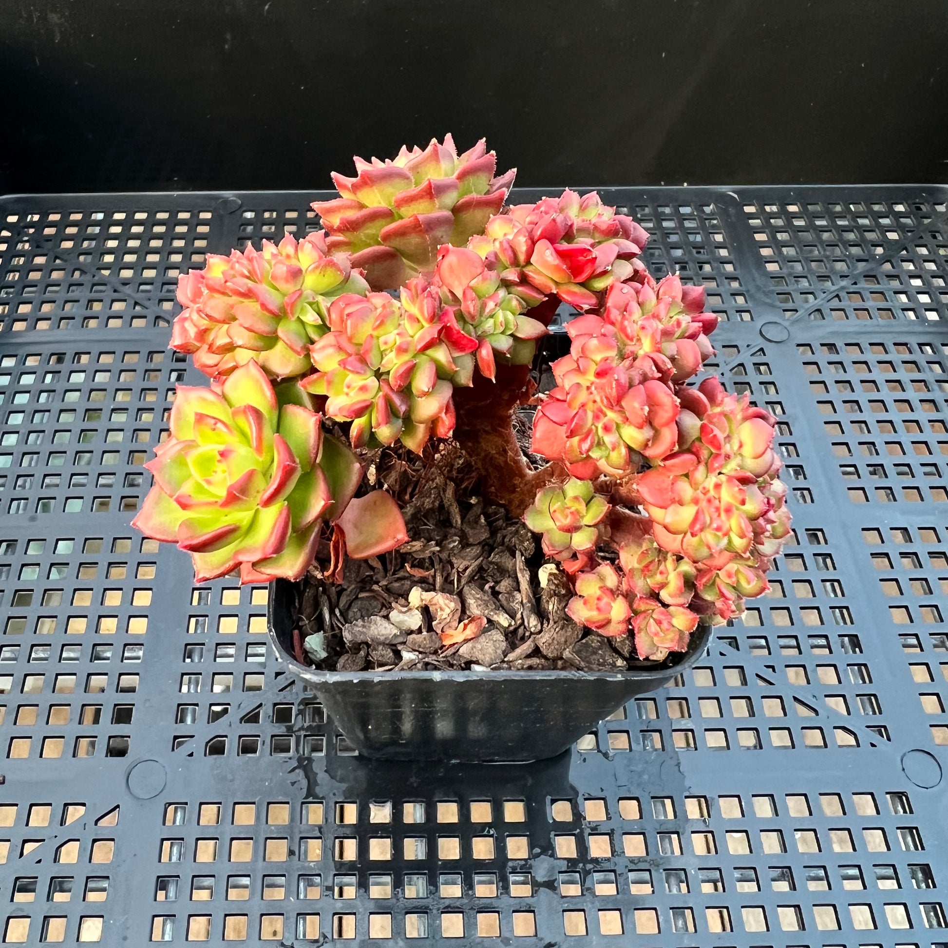 This is a cresta form of Sedeveria Letizia. It can become entirely flaming red when stressed. Prefers full sun.
