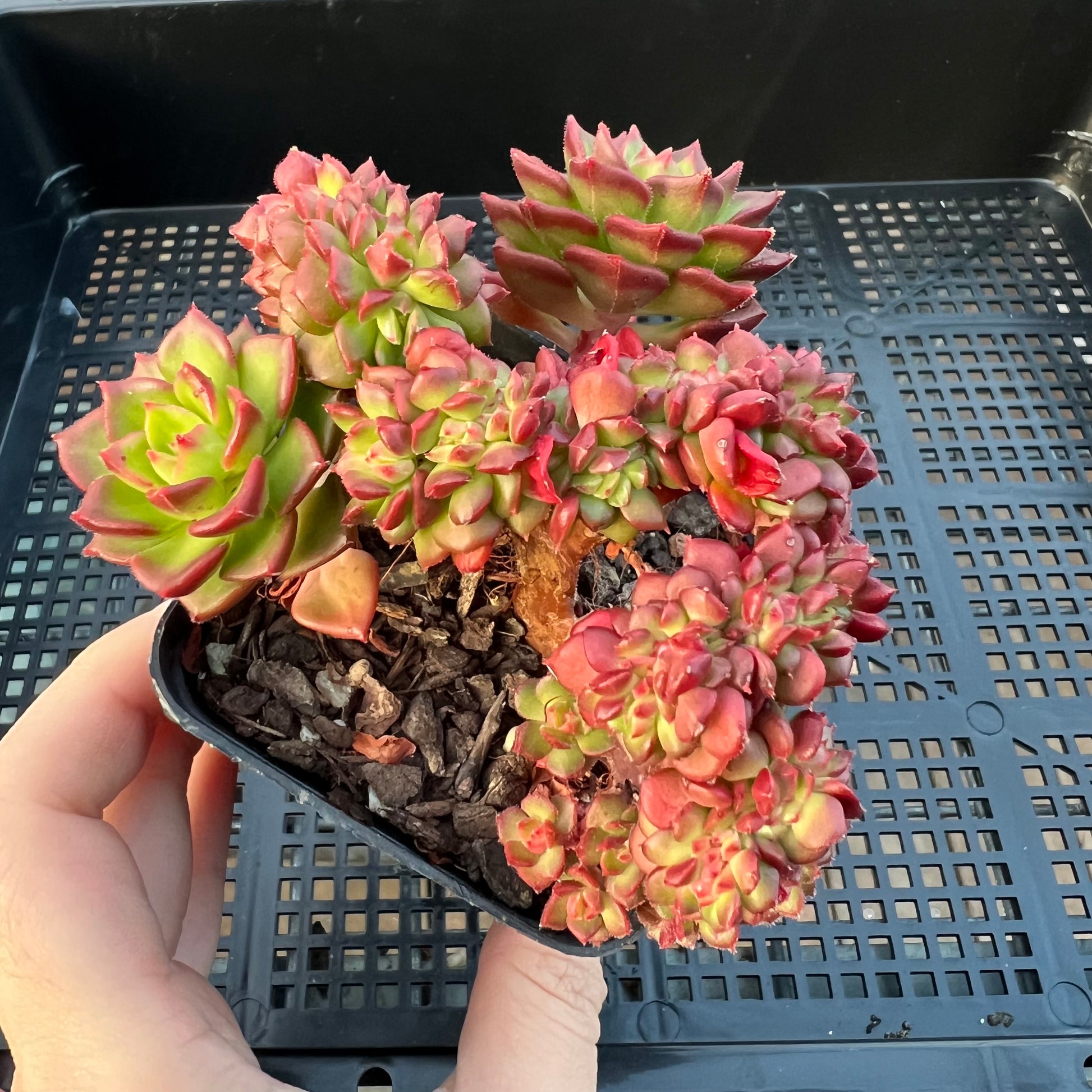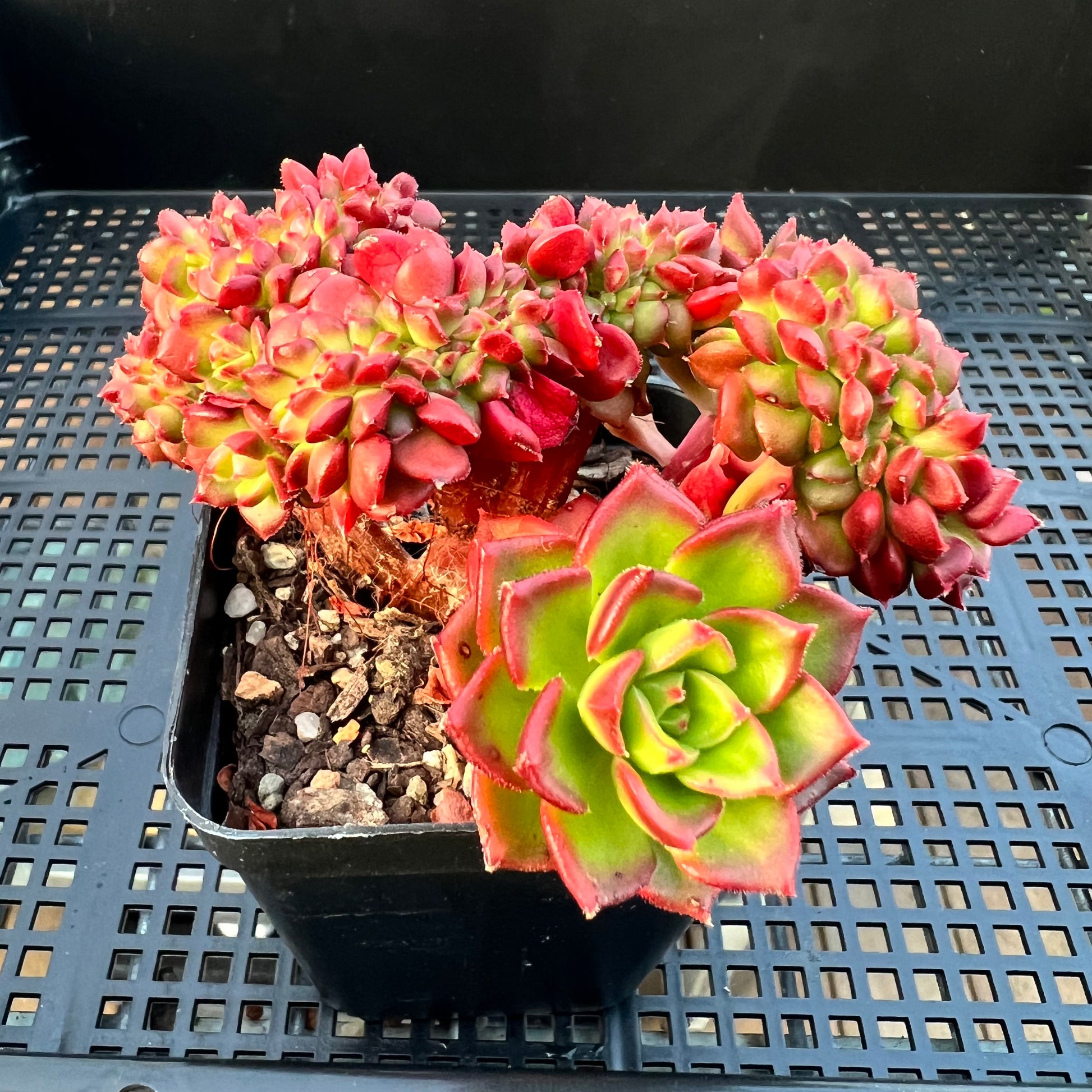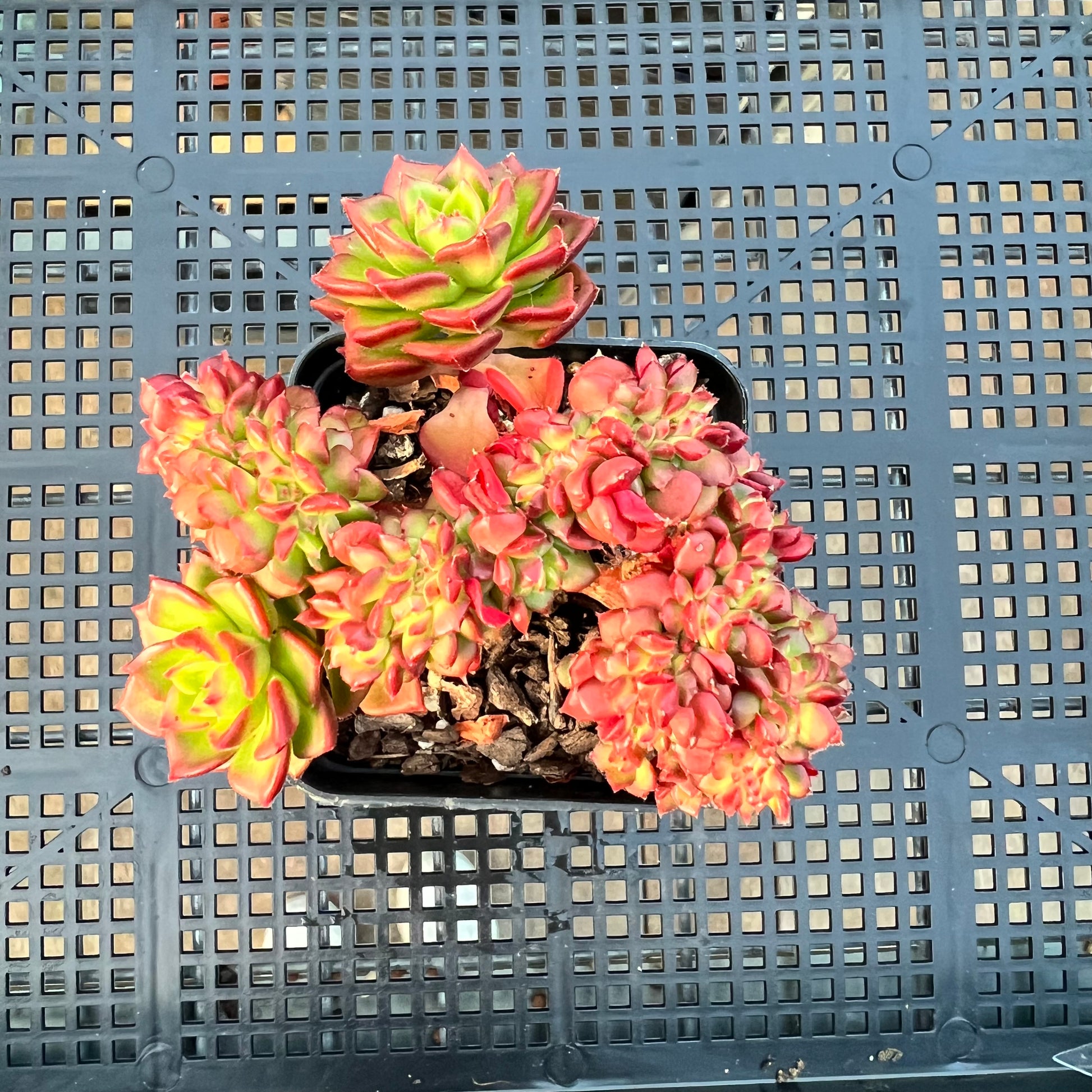 This is a cresta form of Sedeveria Letizia. It can become entirely flaming red when stressed. Prefers full sun.