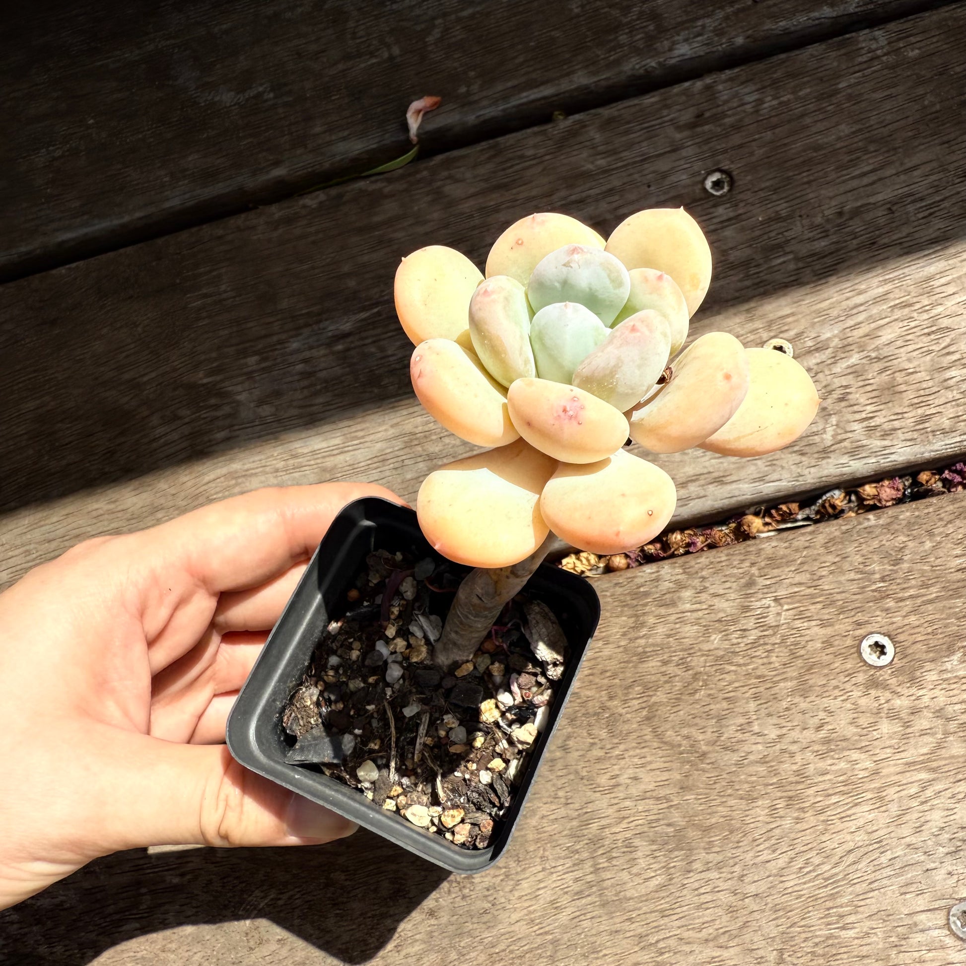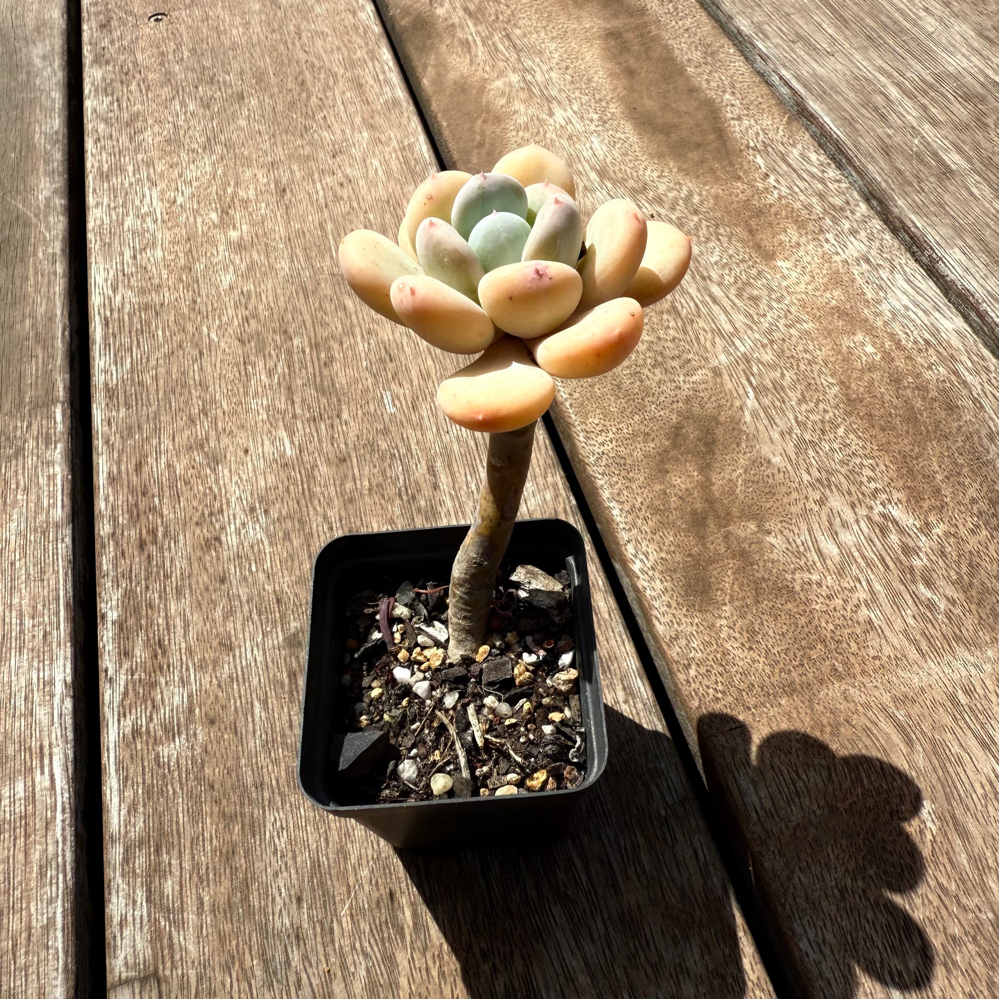 Pachyphytum Oviferum can become very rounded and chubby when grown hard. The trick is to space out water intervals and grow in full sun.