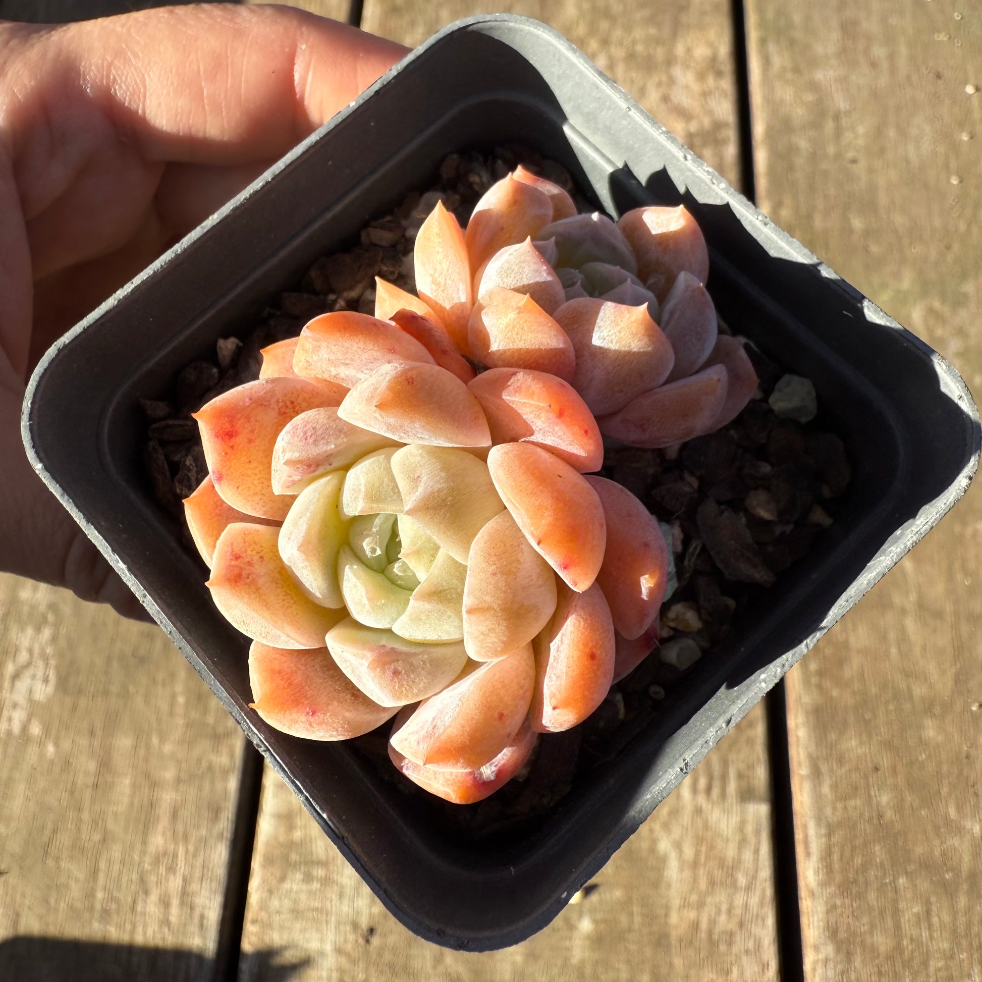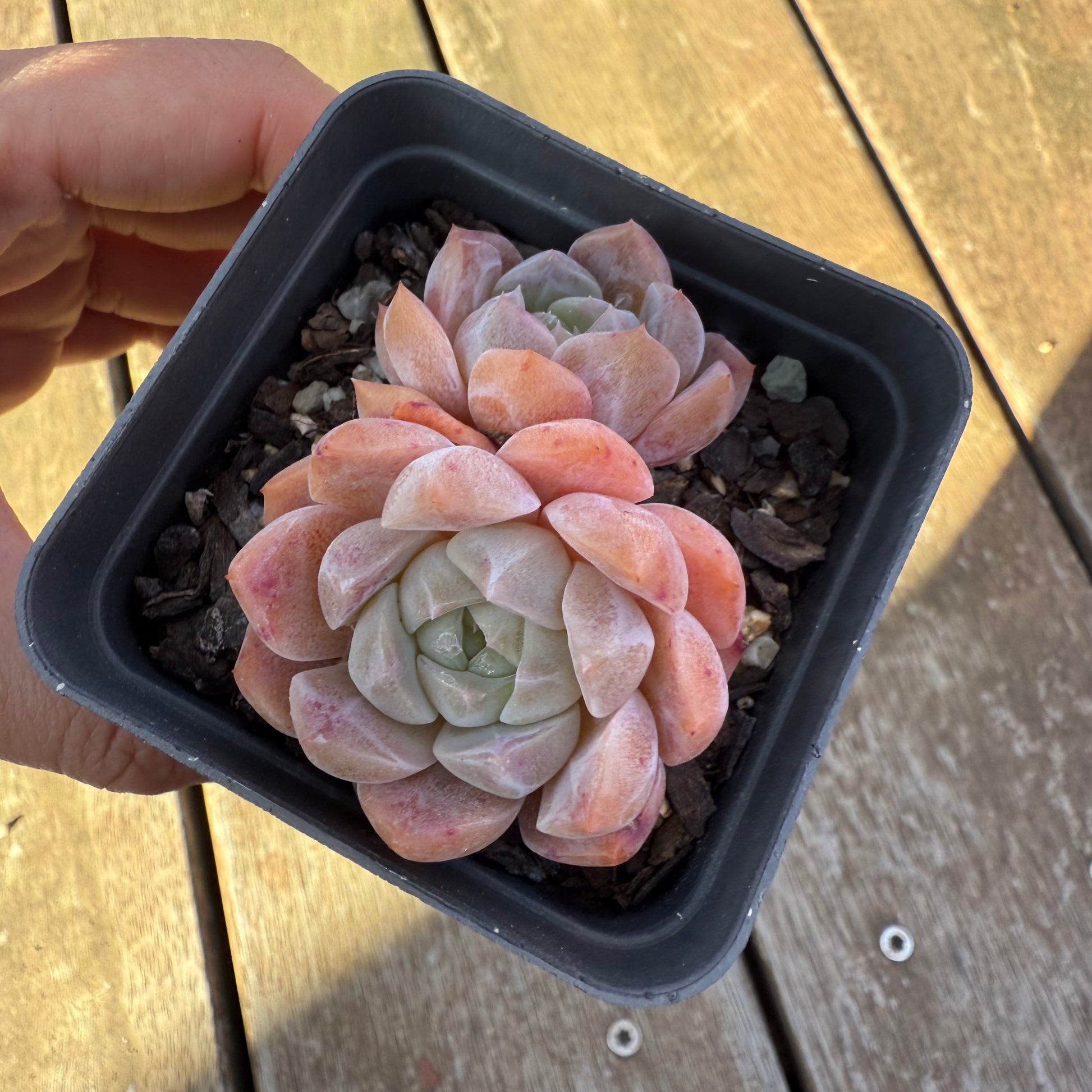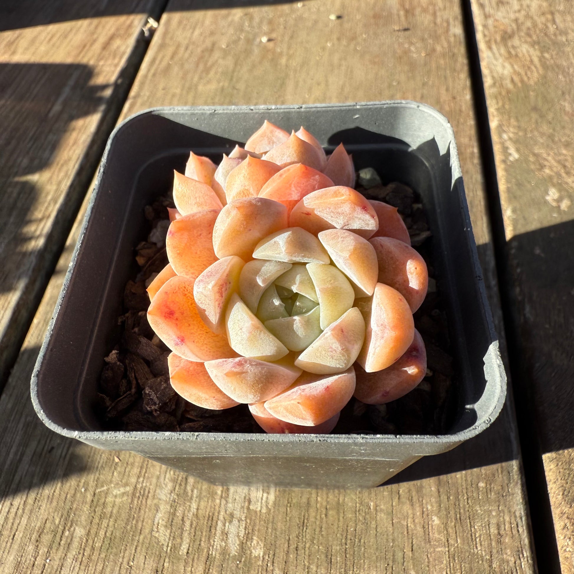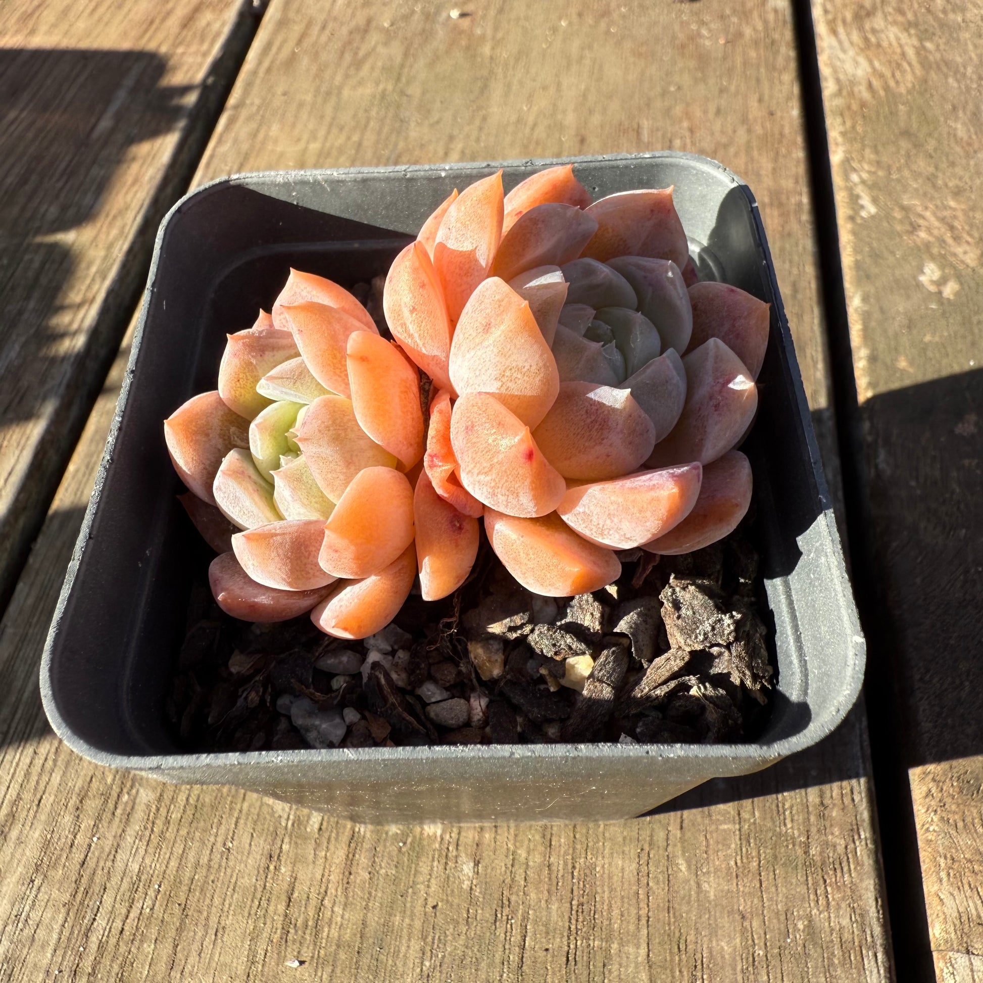 Echeveria is a new hybrid of Echeveria Monroe, its stress to orange and forms diamond-like markings. Prefers full sun.