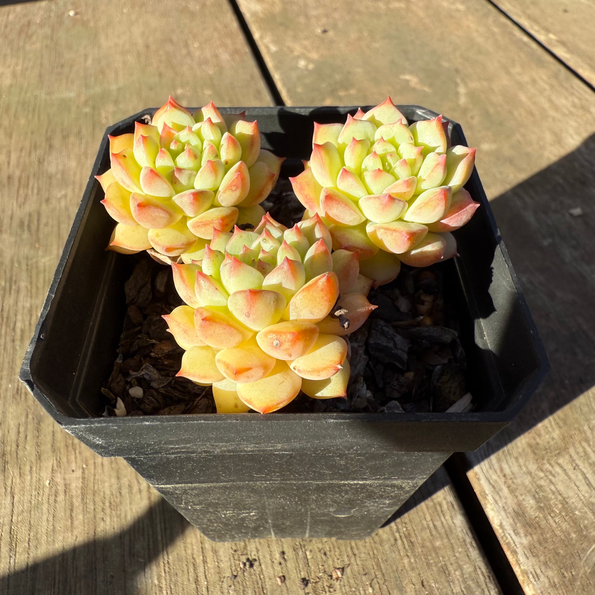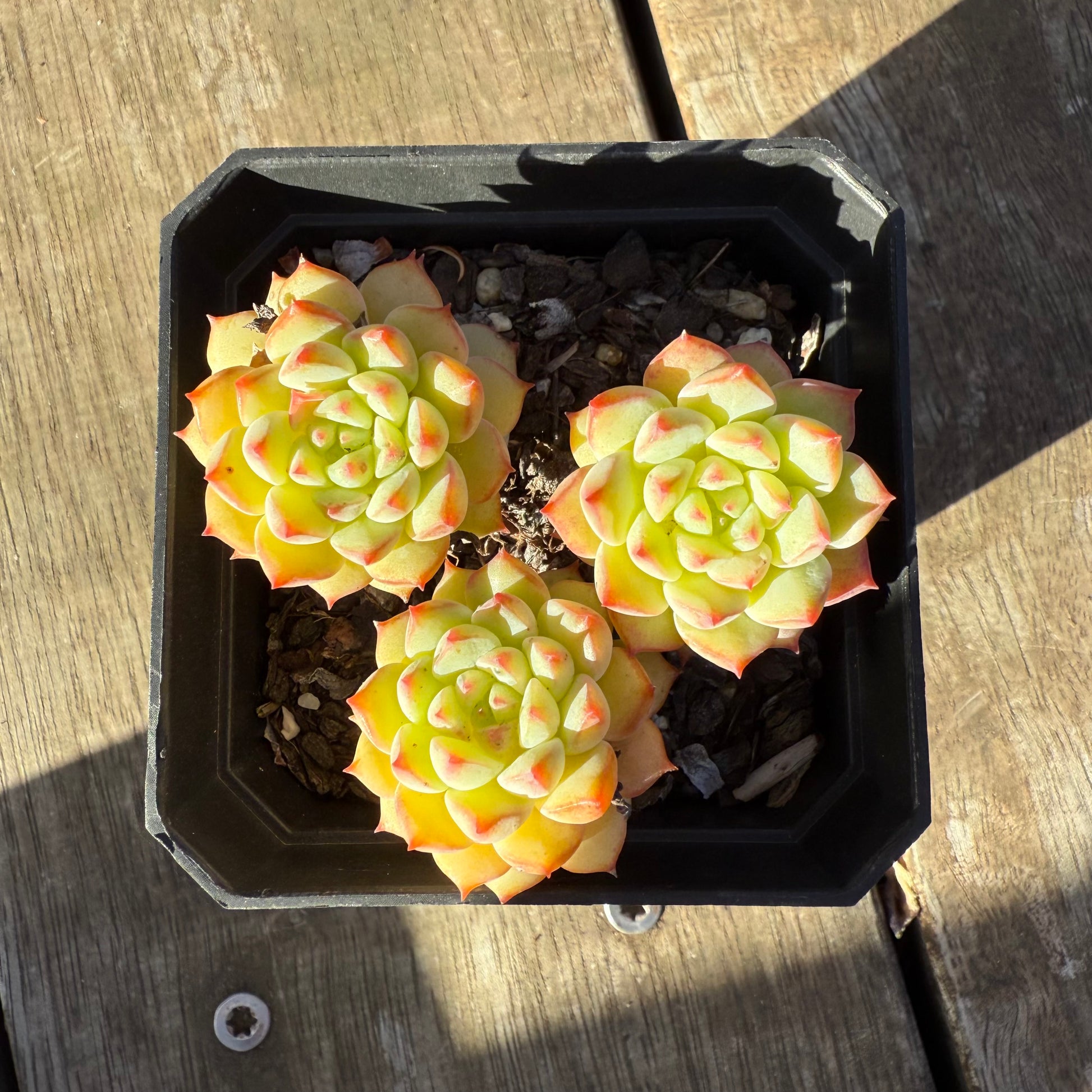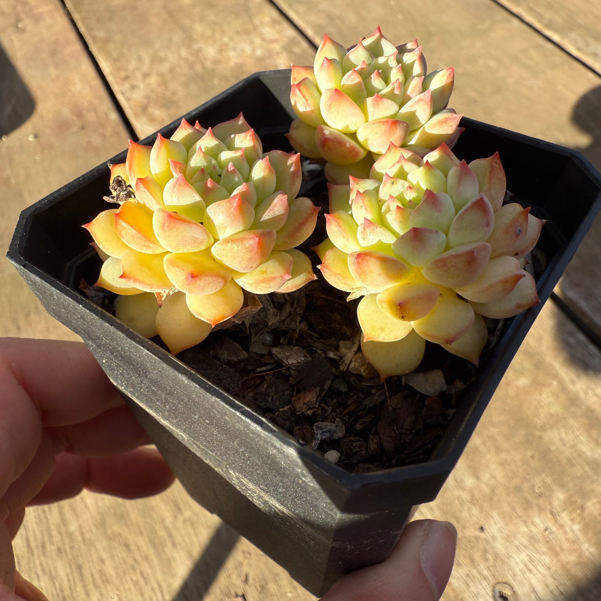 Echeveria Panda Face is a lovely miniature derenbergii hybrid with compact rosettes. Its tips become red when grown in full sun. When fully grown it only measures to 4-5 cm per head. Easy to offset. Prefers full/partial sun.