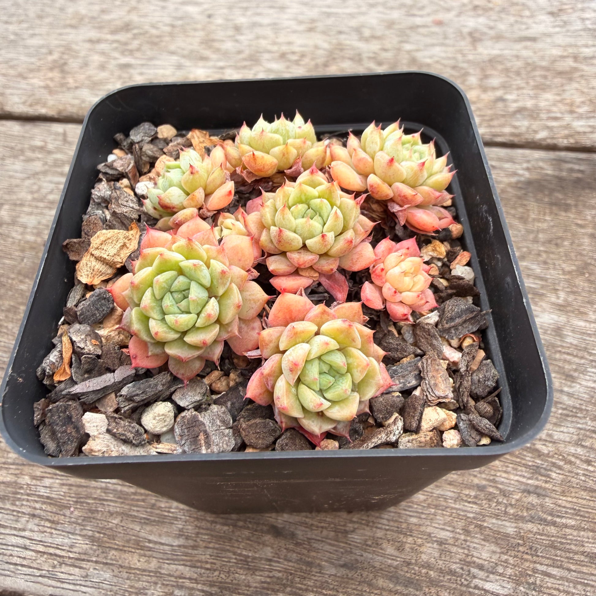 Echeveria Marshmellow forms dainty compact rosette. Forms clump easily. Prefers full sun.