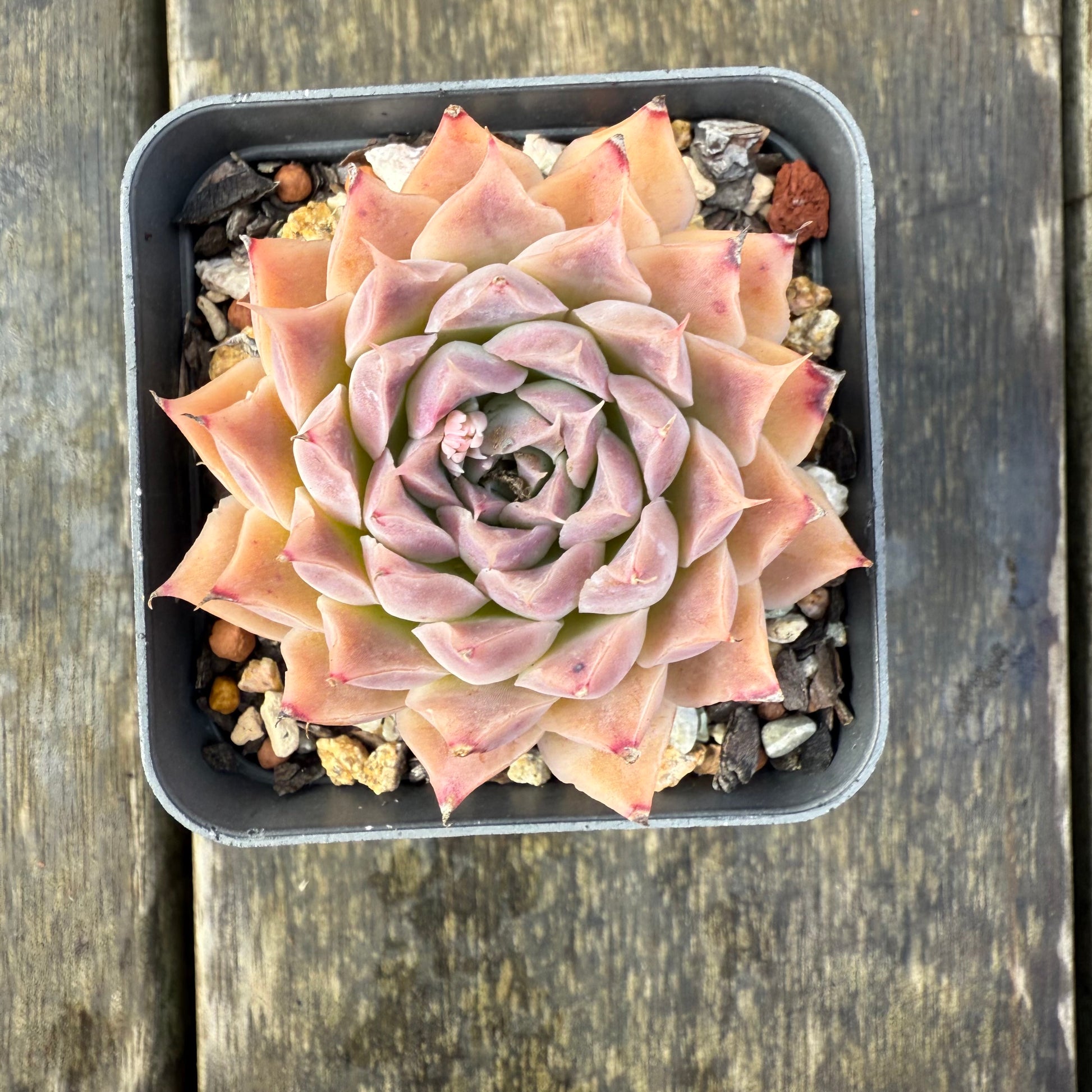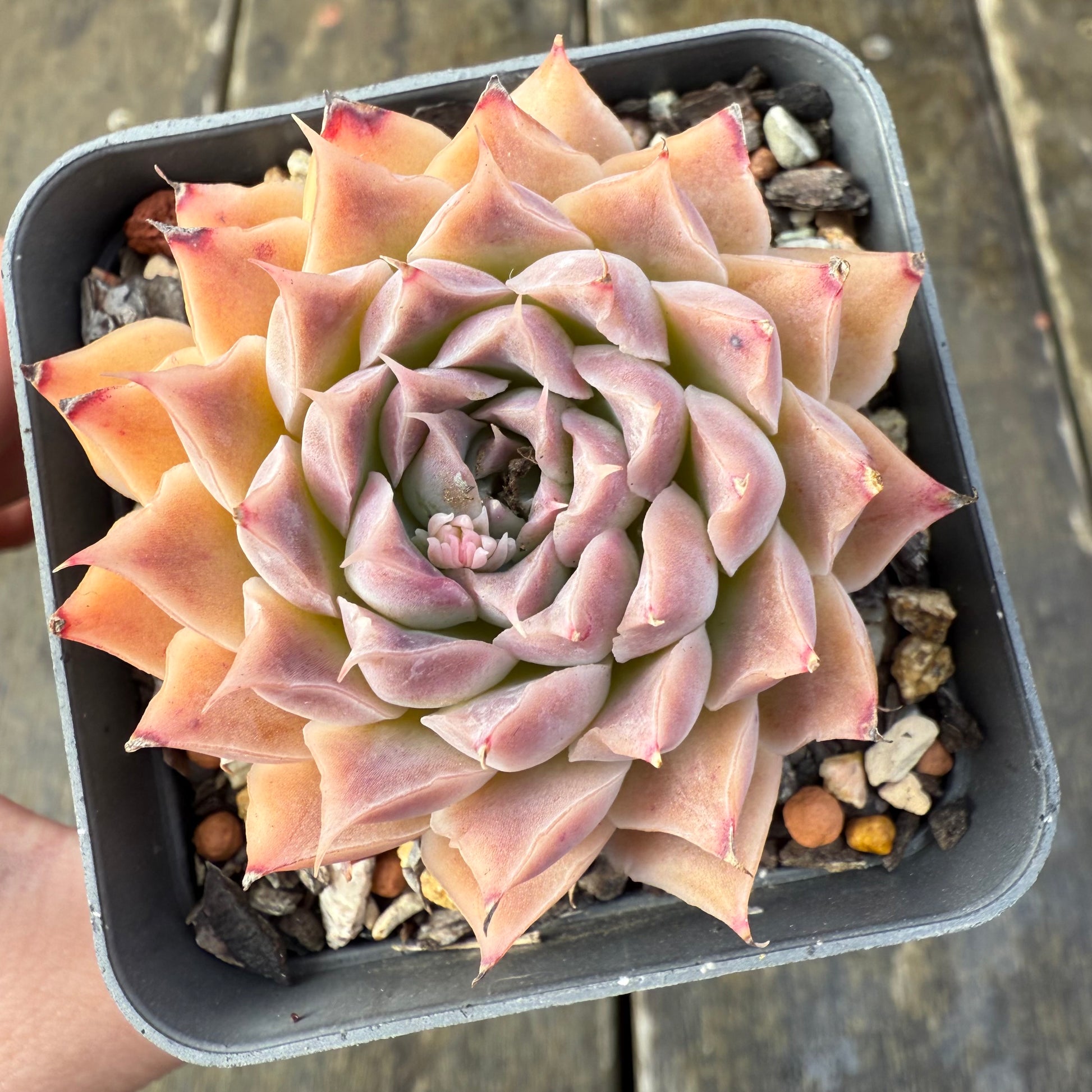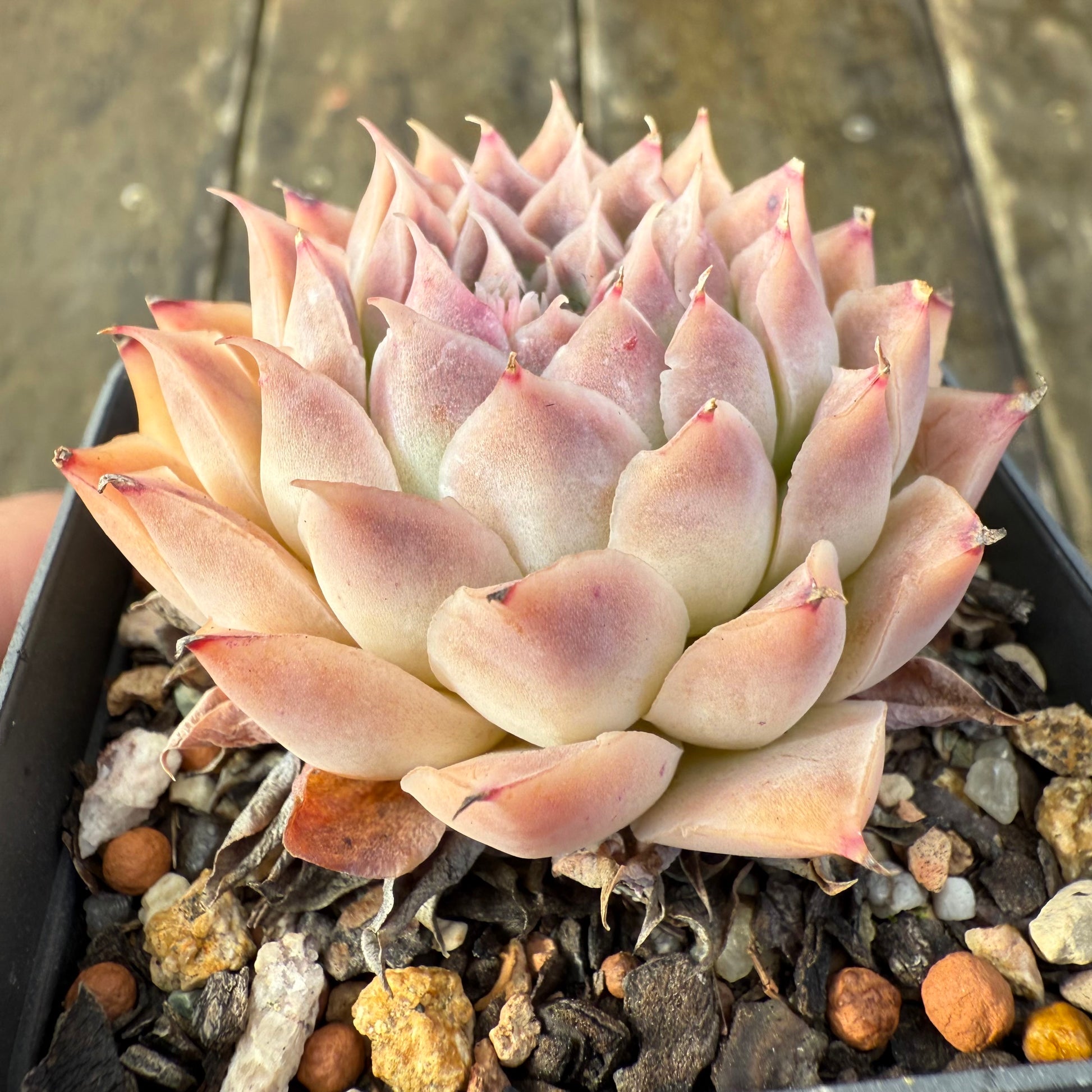 Echeveria 'Ferris Wheel' is one of our new hybrid. Stress to orange. Prefers full sun.