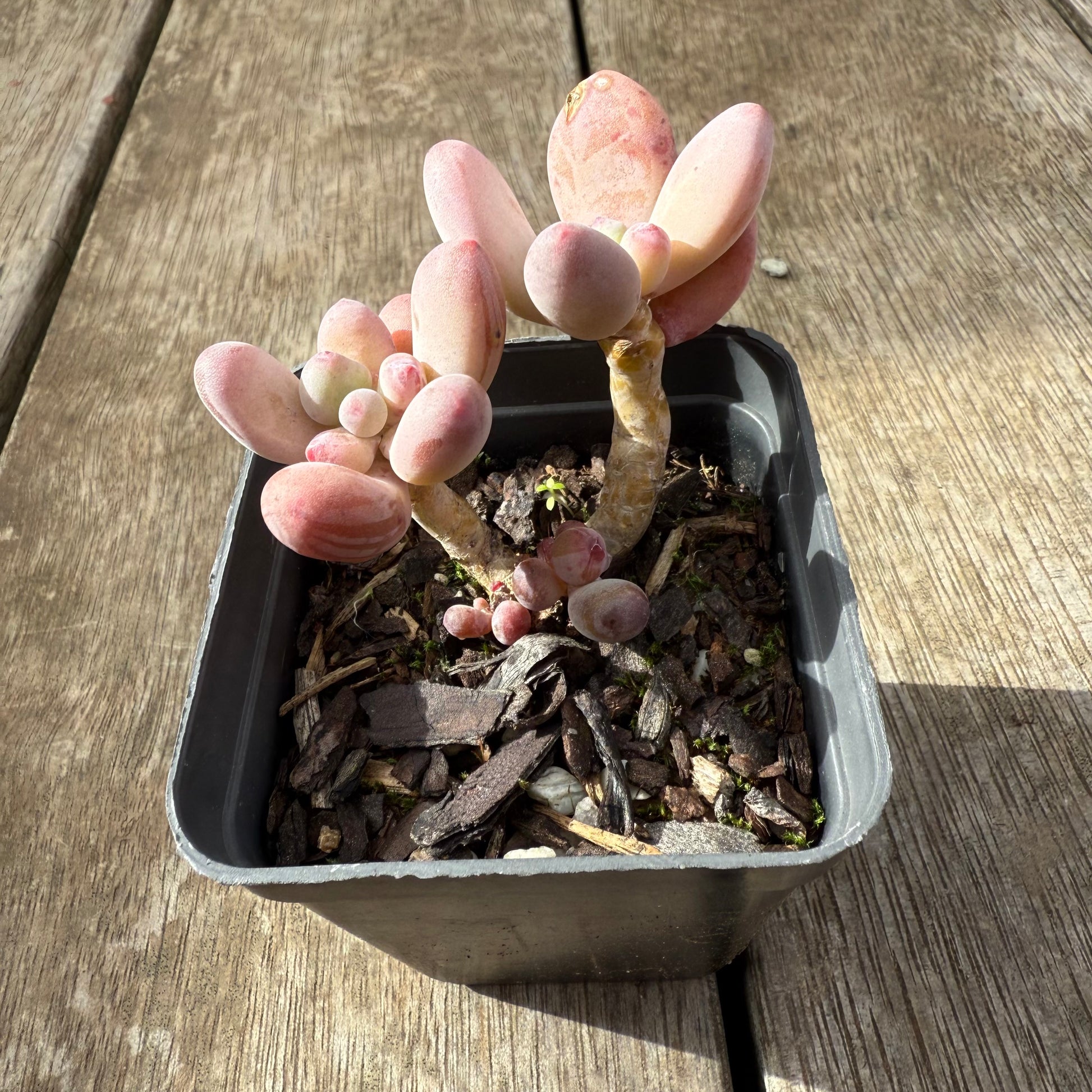 Pachyphytum Garcie has pink tips, stress to orange. Prefers full sun.