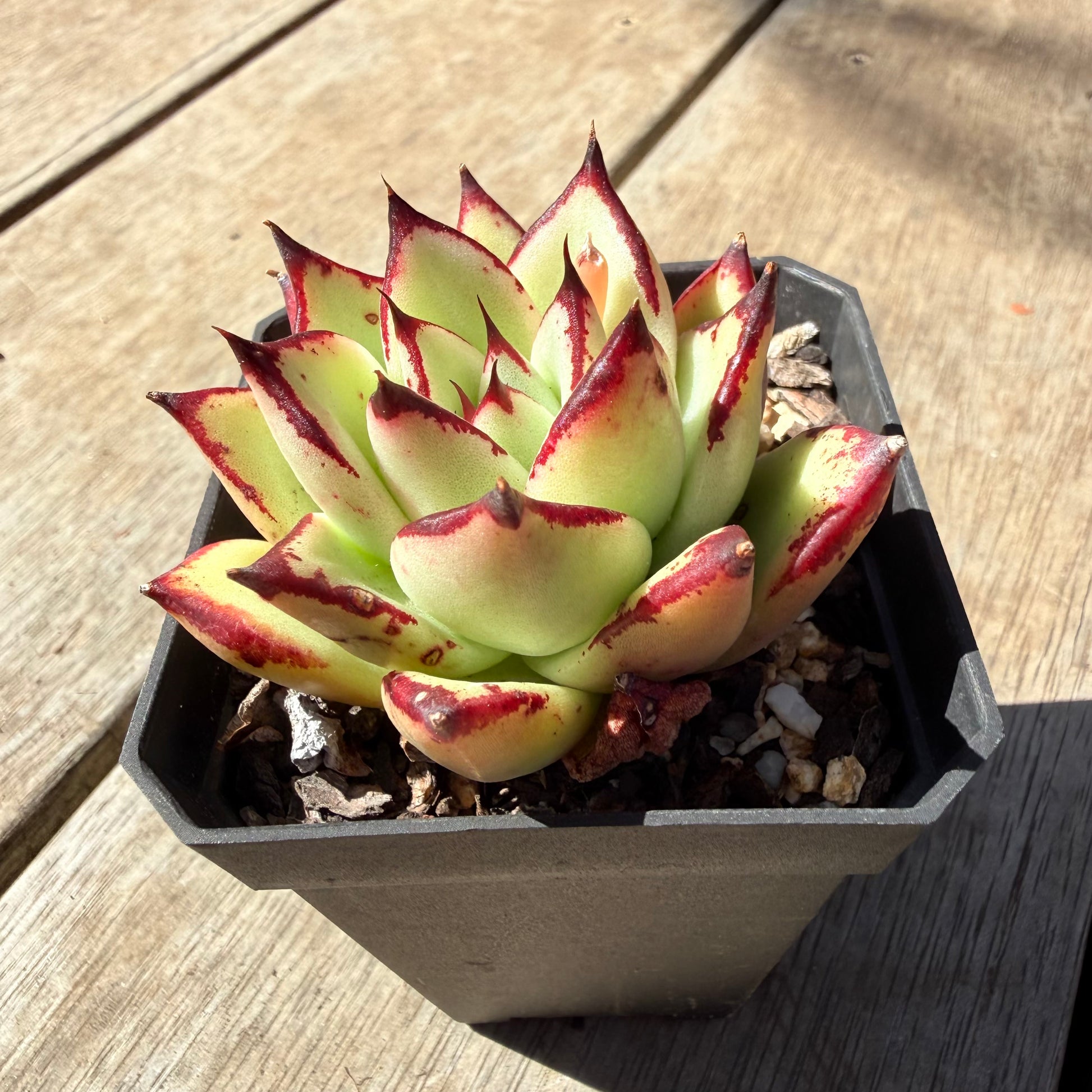 Echeveria Agavoides Ebony with dark margin. Prefer full sun.