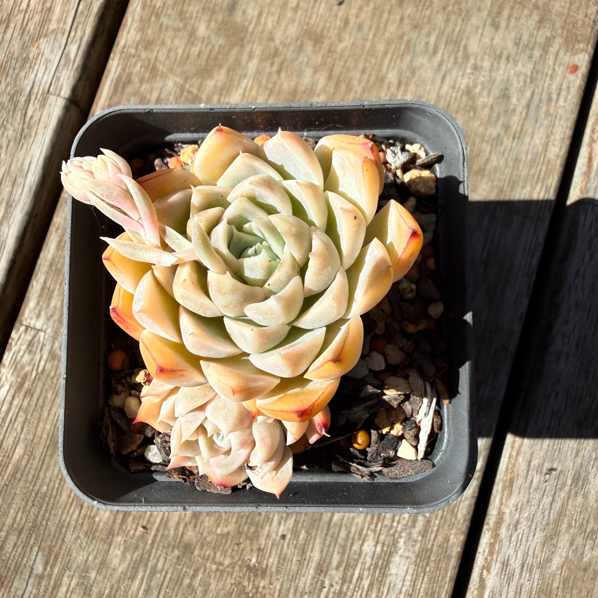 Echeveria Elegans 'Salted Caramel' outer leaves stress to orange. Prefers full sun.