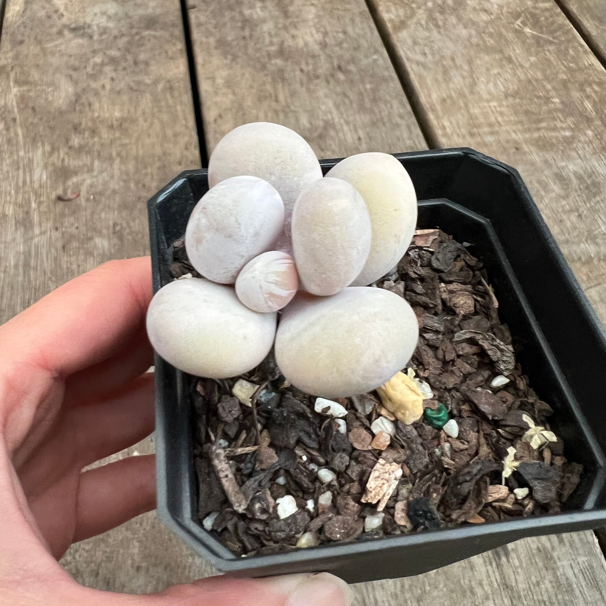 Pachyphytum Oviferum can become very rounded and chubby when grown hard. The trick is to space out water intervals and grow in full sun.