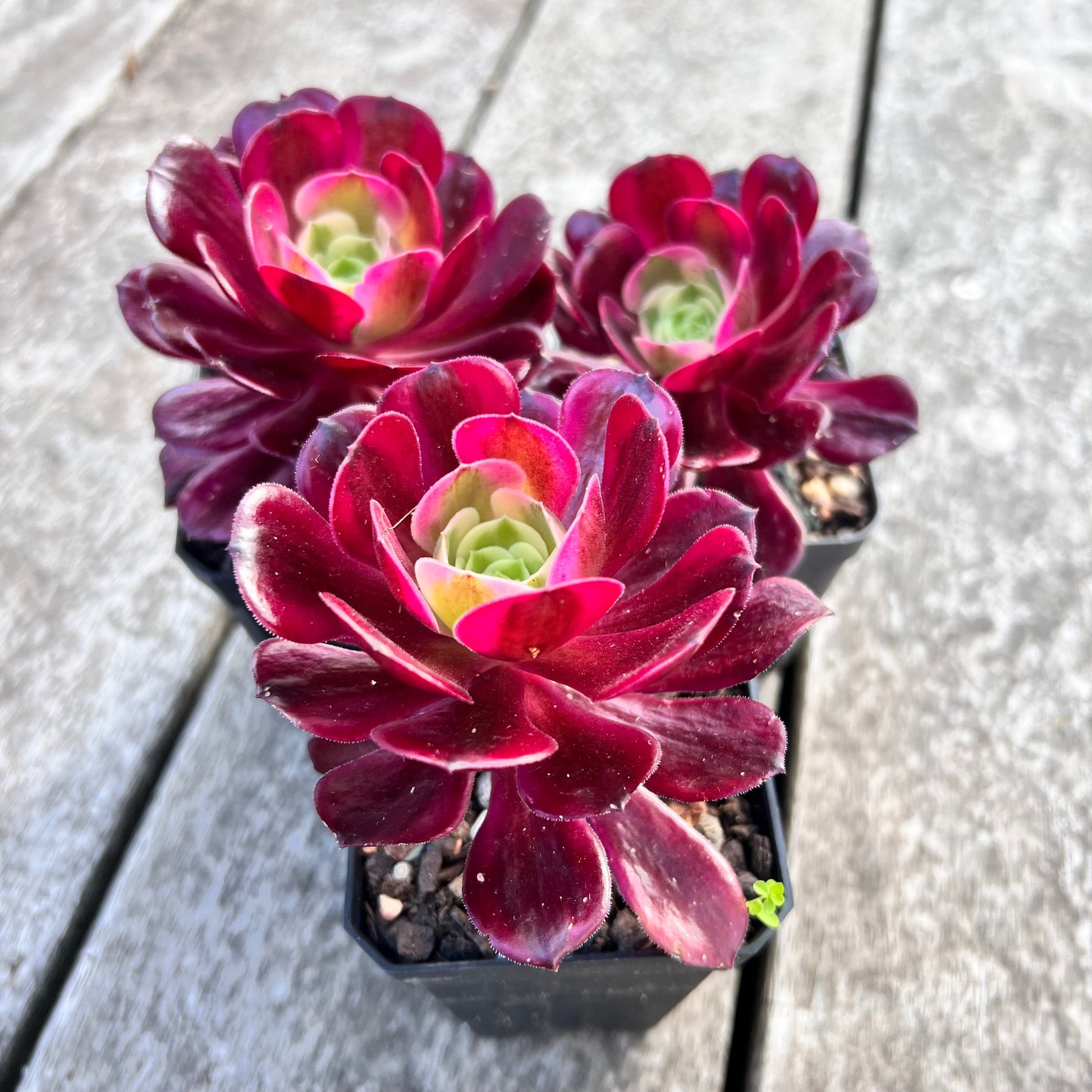 Aeonium Medusa has dark center and red variegation on its side of leaves.