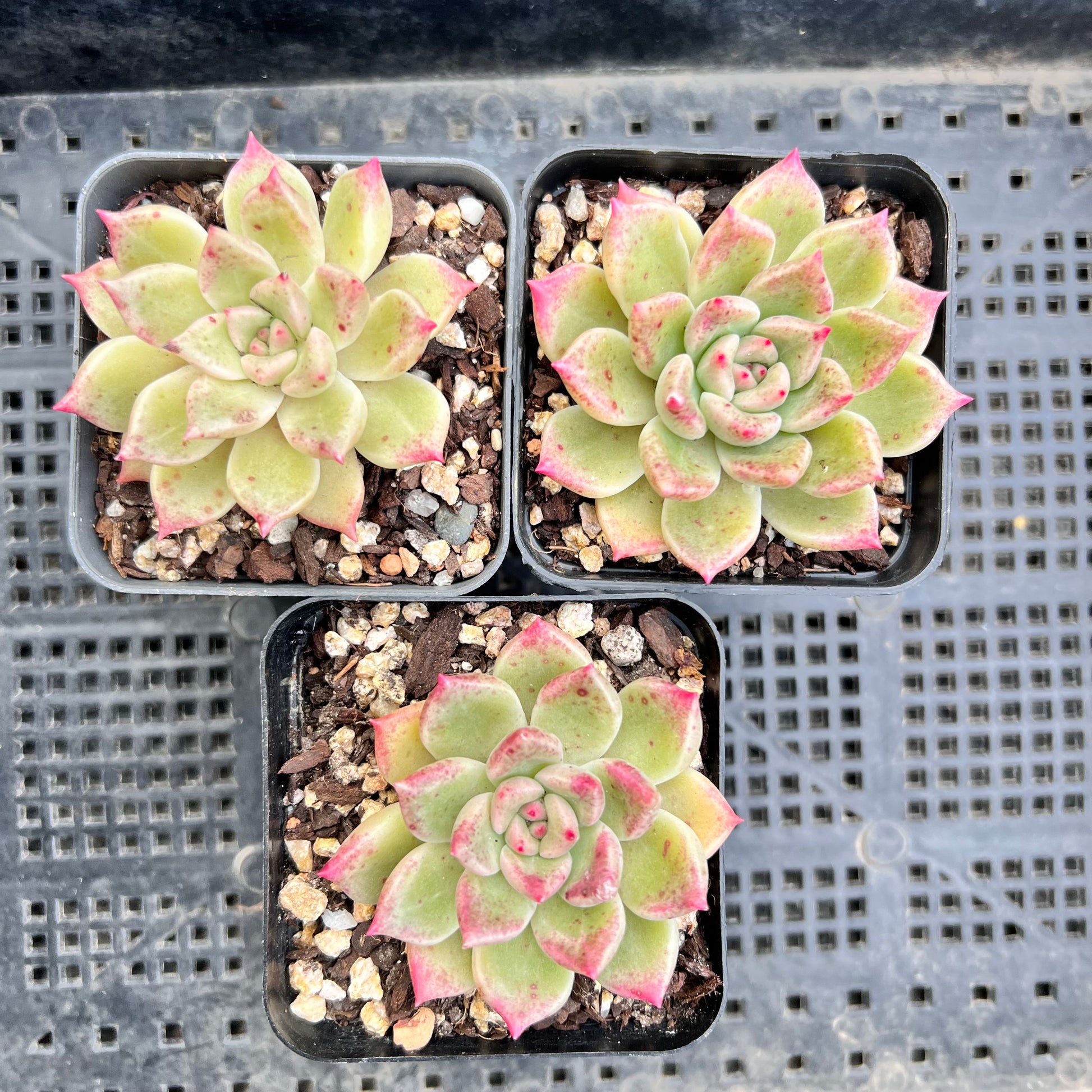 Echeveria Arzee is a unique and captivating succulent known for its striking rosette shape and vibrant color. It has distinctive pointed leaves and a beautiful blend of green and pink hues when stressed. Tips go red/pink when grown in full sun. Pink speckles appear when grown well. Prefer full sun.