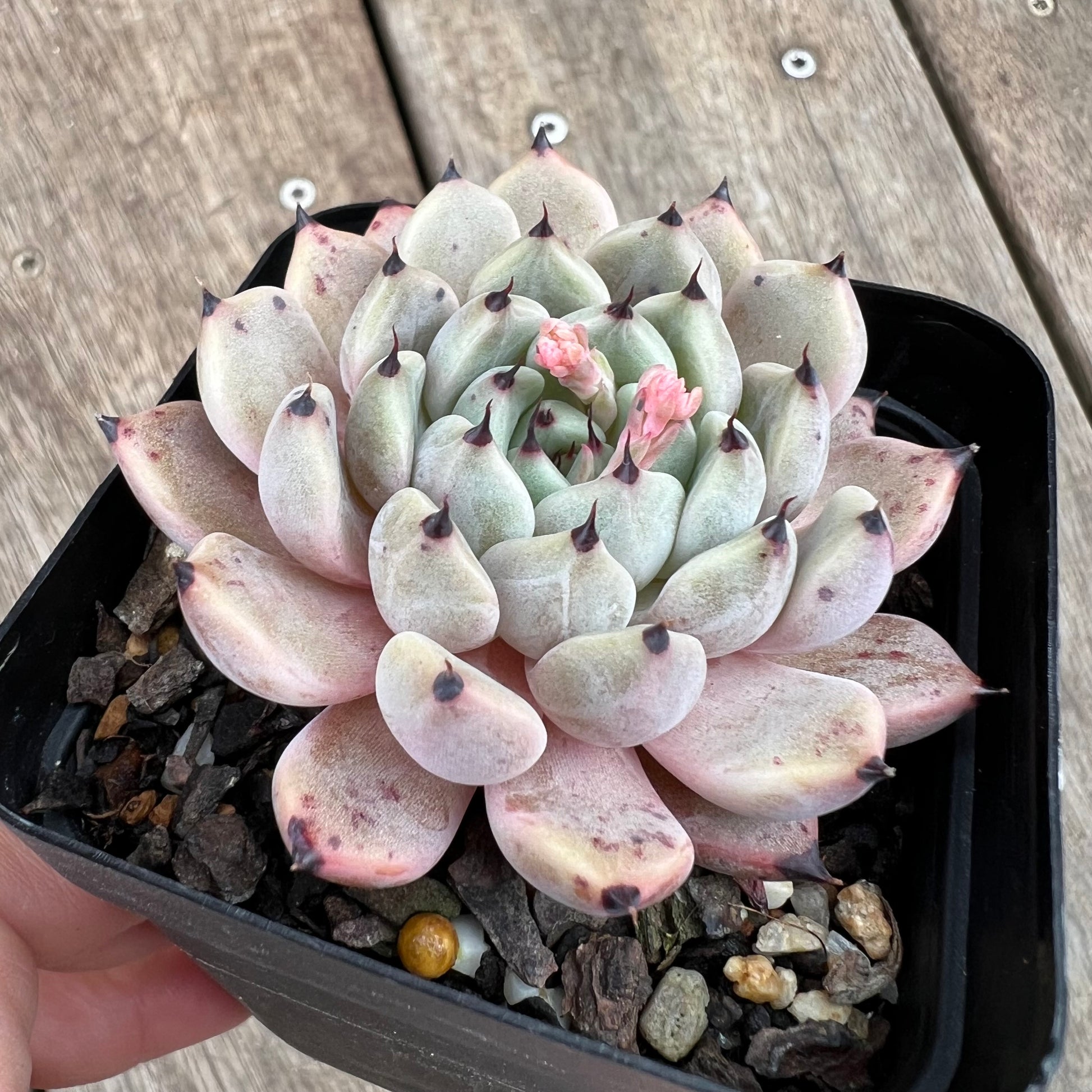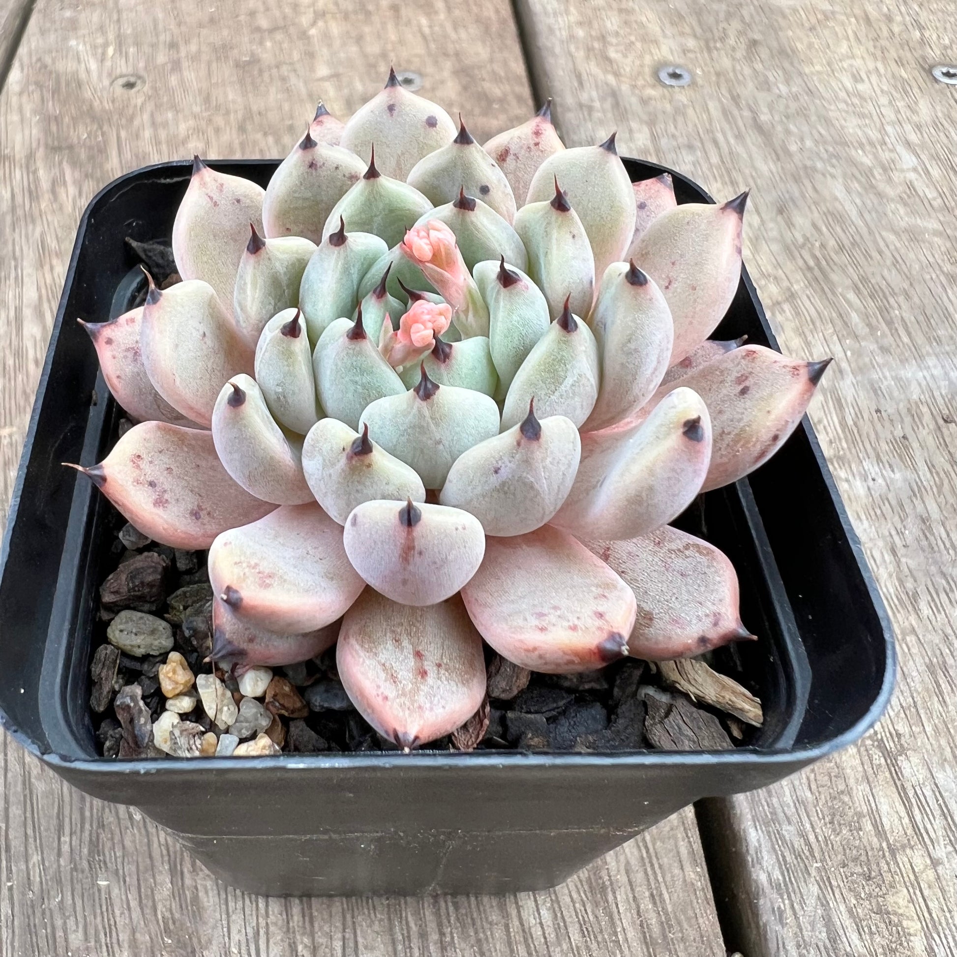 This variety has powdery leaves and distinct dark tips, forms a compact rosette. Prefers full sun.