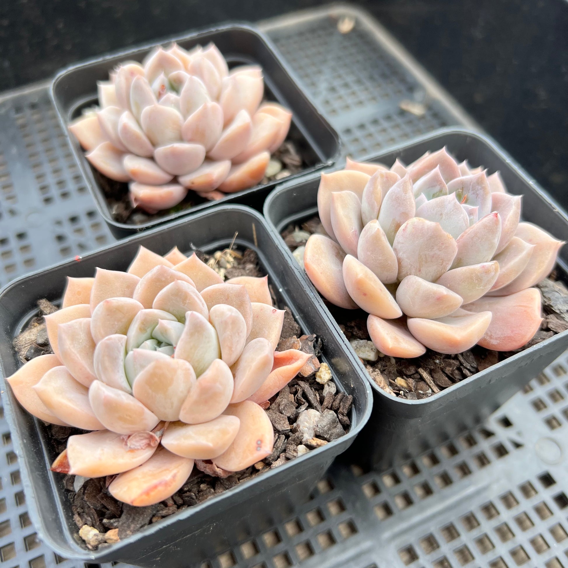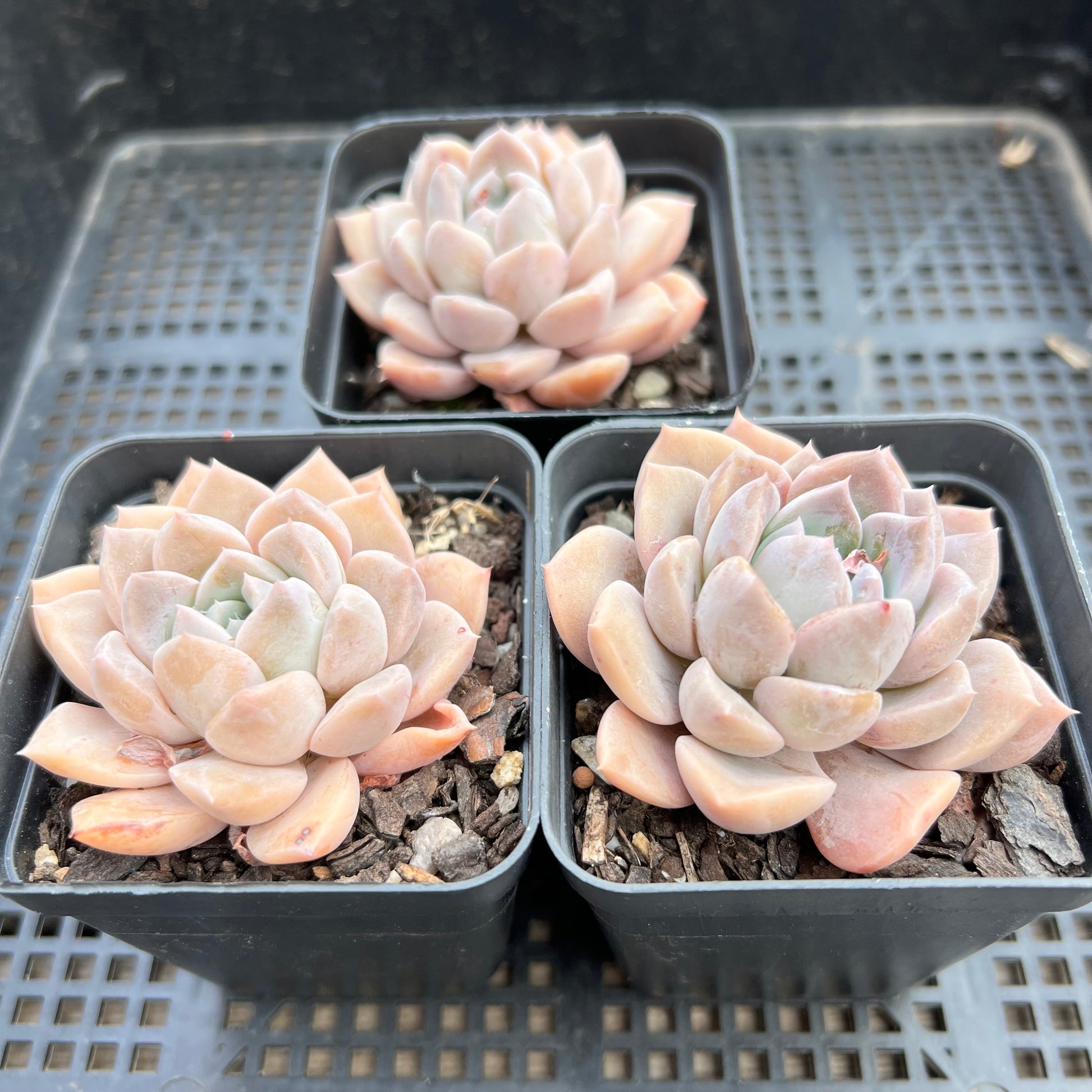 Echeveria Pink Rose has slightly powdered leaves that will stress to pink-orange. Prefers full sun.