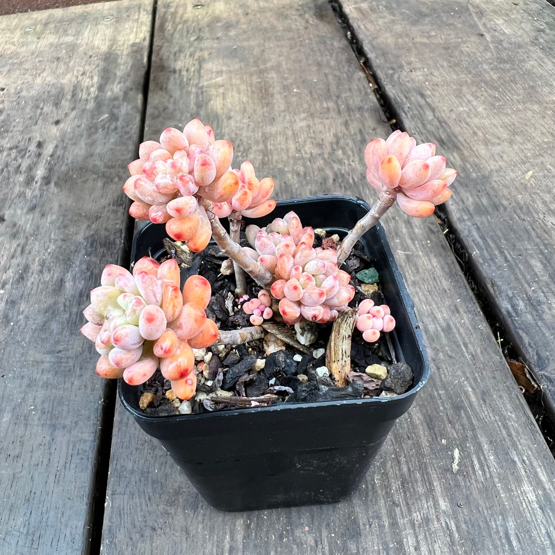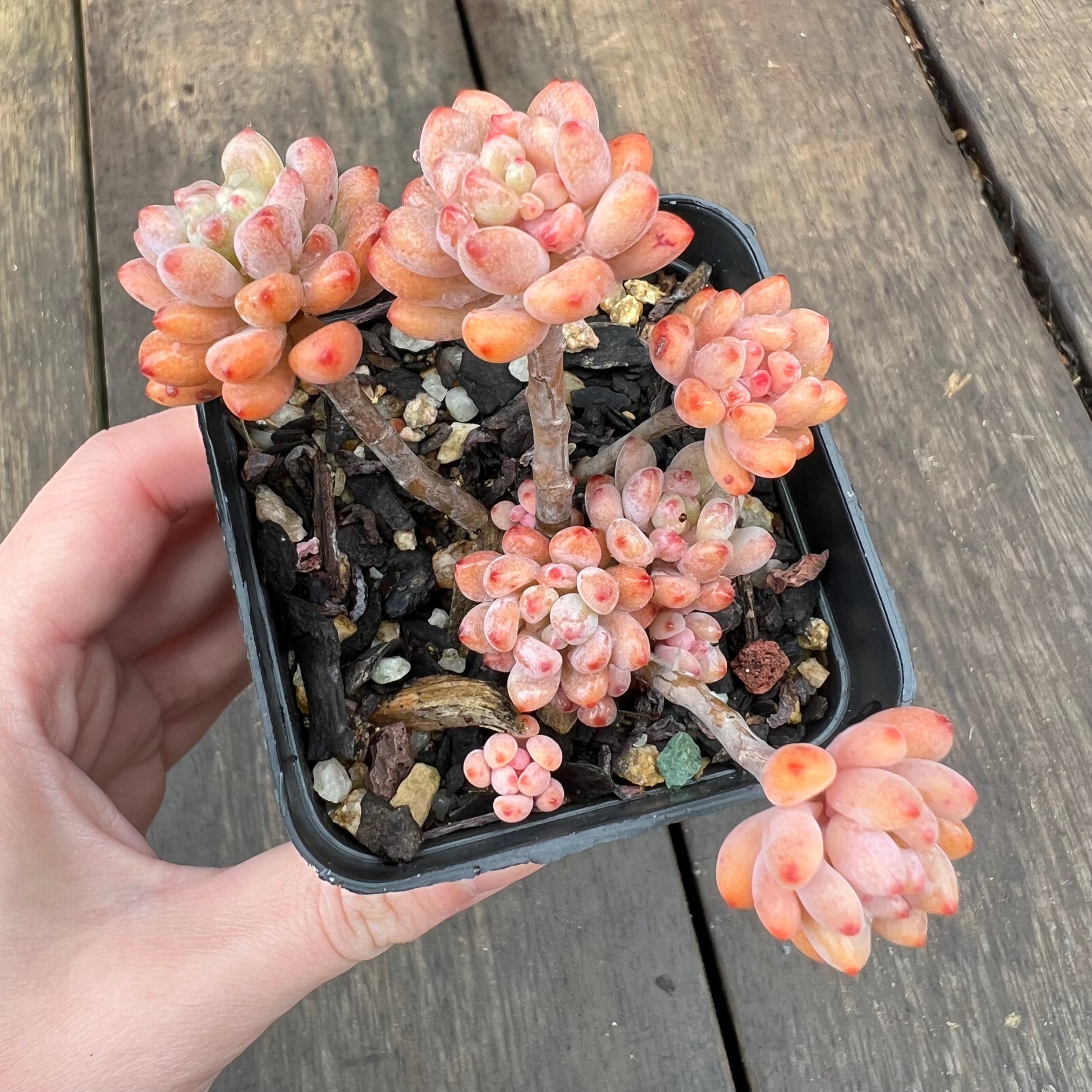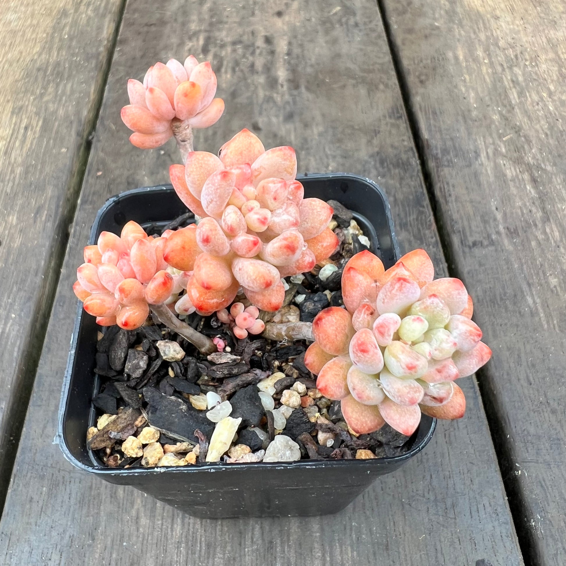 绿豆/粉豆有小型浅绿色叶子,尖端为浅粉色/橙色。她爱爆头、长侧芽,出状态时变为橙色。喜欢全日照/半日照。